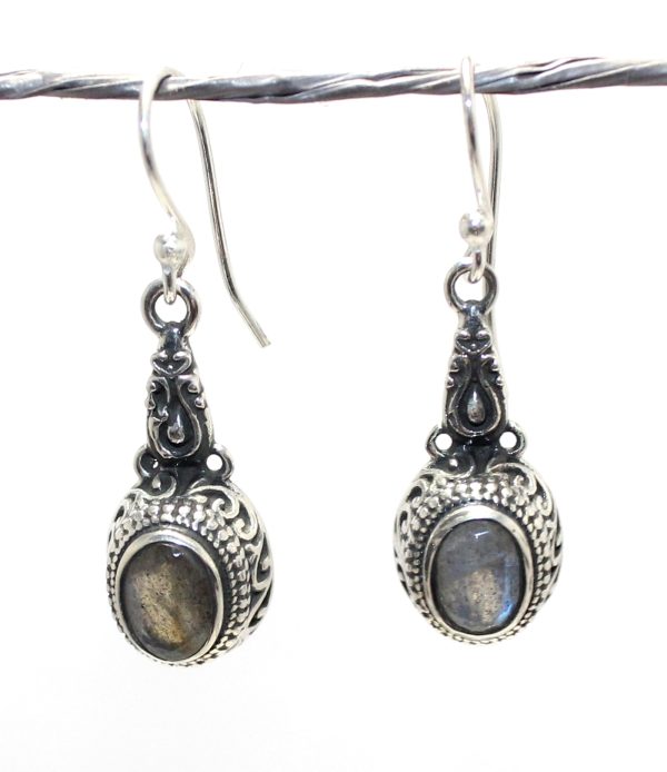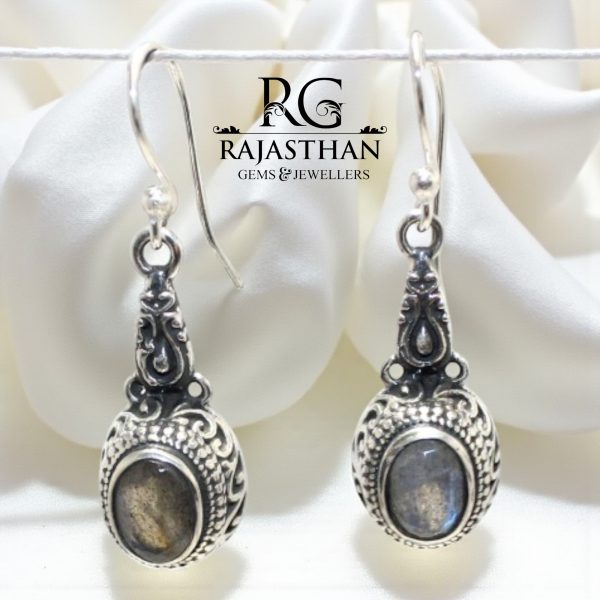 Rajasthan Gems Dangle Earrings 925 Sterling Silver Natural Labradorite Gem Stone Handmade Traditional Women Gift G857