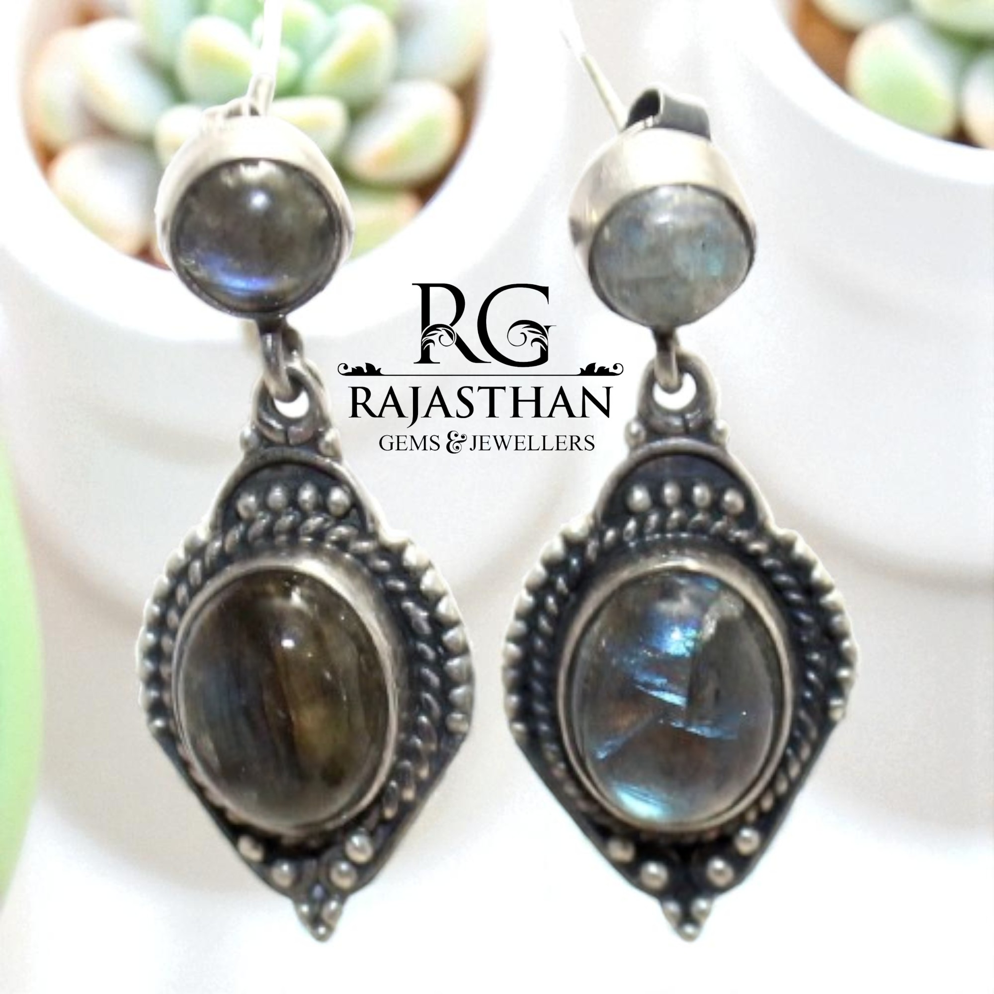 Home » Shop » Rajasthan Gems Dangle Earrings 925 Sterling Silver Natural Labradorite Gem Stone Handmade Traditional Women Gift G878