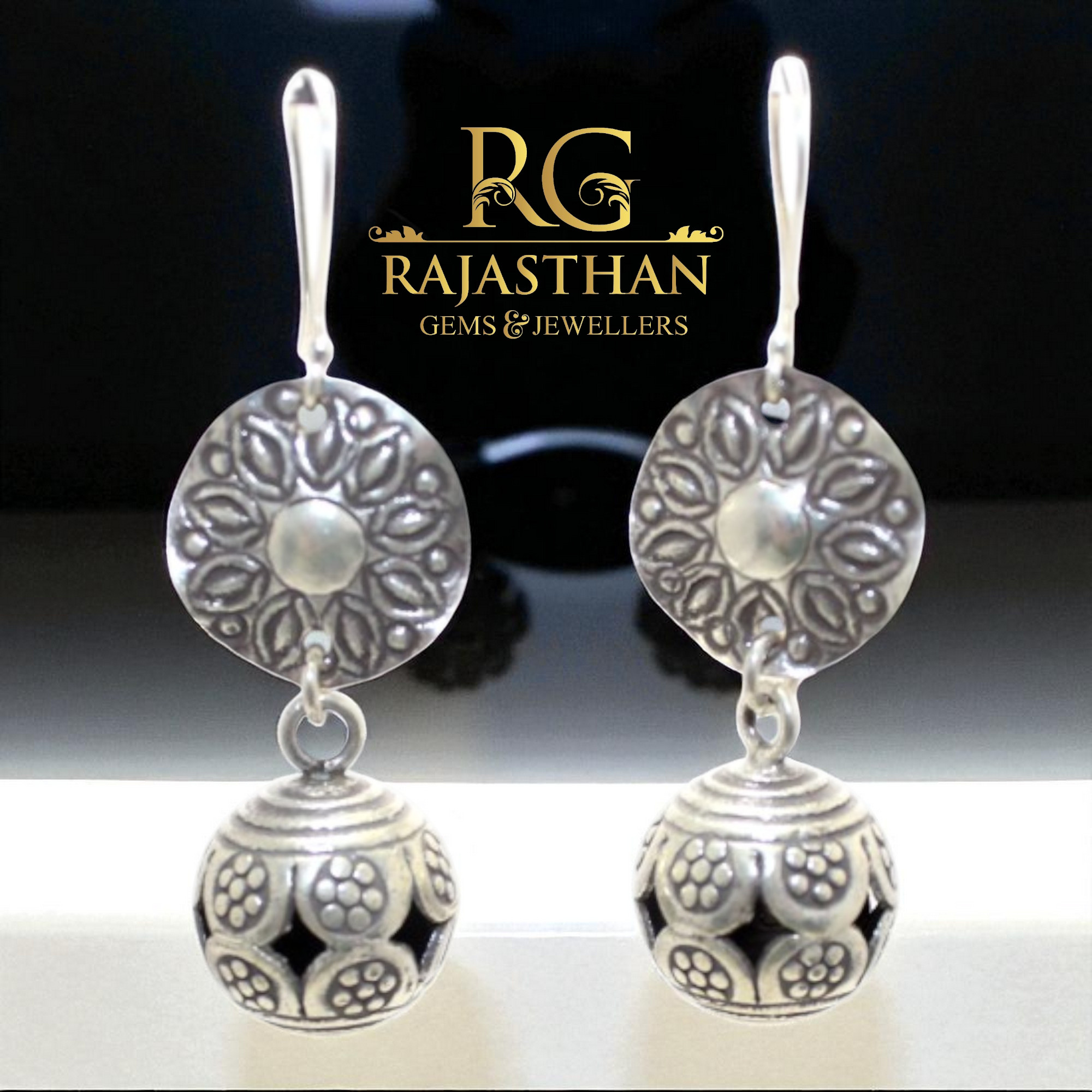 Rajasthan Gems Dangle Earrings 925 Sterling Silver Traditional Tribal Handmade Women Gift G451