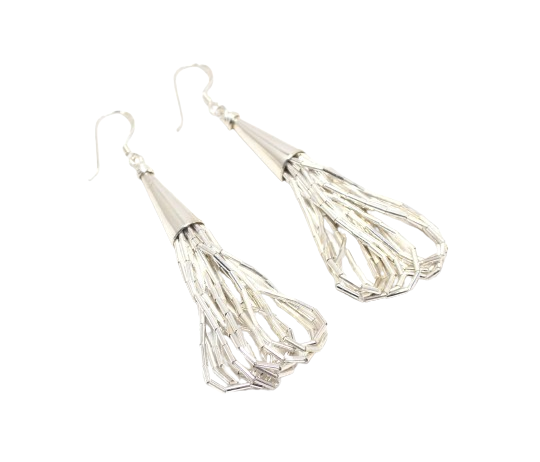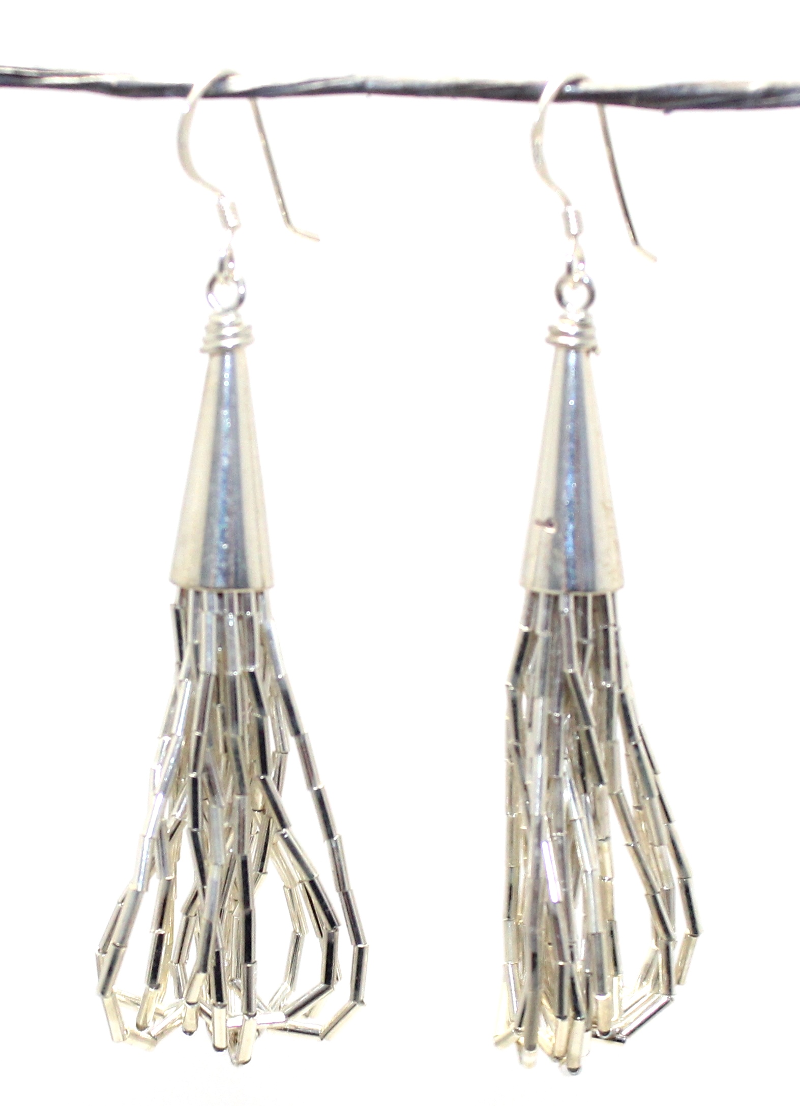 Rajasthan Gems Dangle Earrings Chain Chains Bunch Stackable Tangled 925 Sterling Silver Women Handmade Gift H593