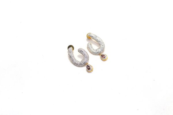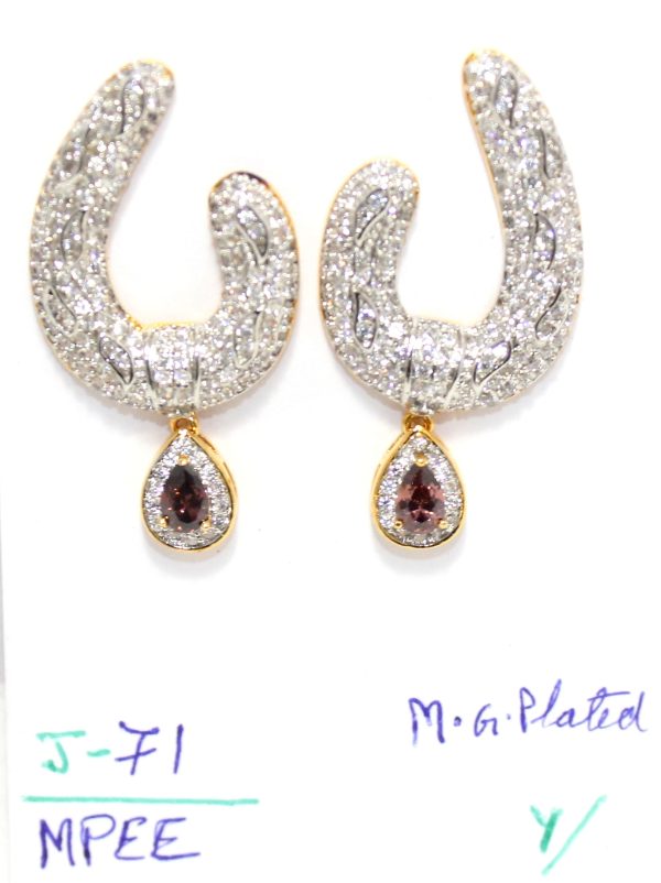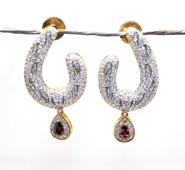 Rajasthan Gems Dangle Earrings Gold Rhodium Alloy Steel Cubic Zirconia CZ Stone Women Handmade Designer Gift H079