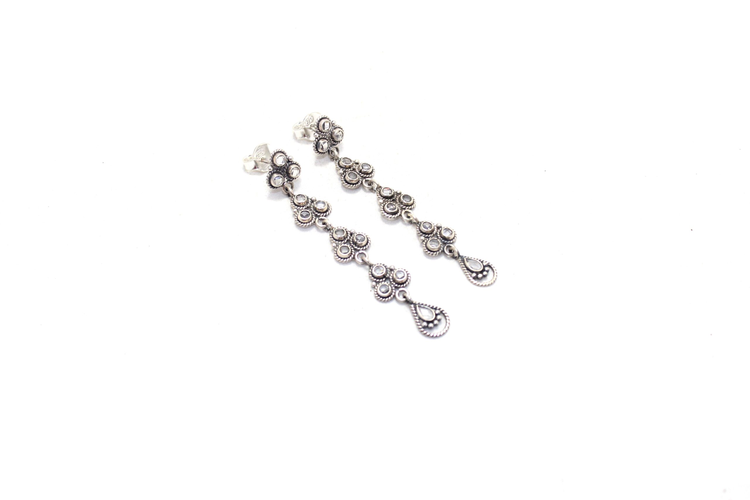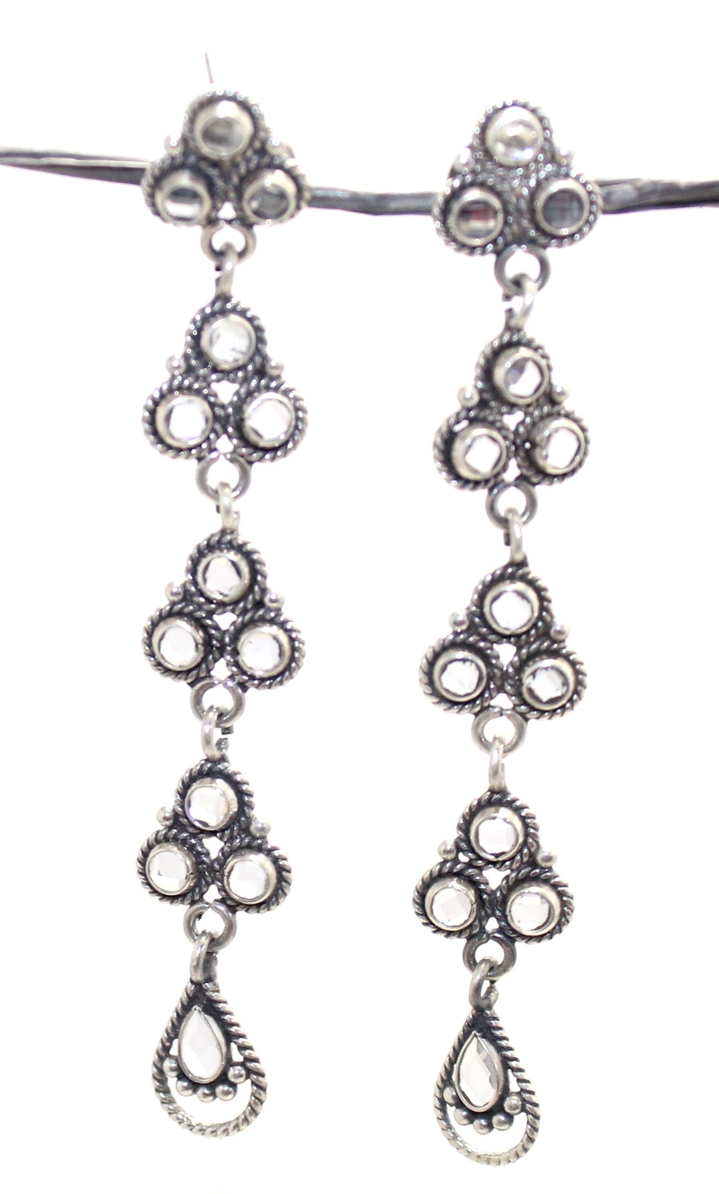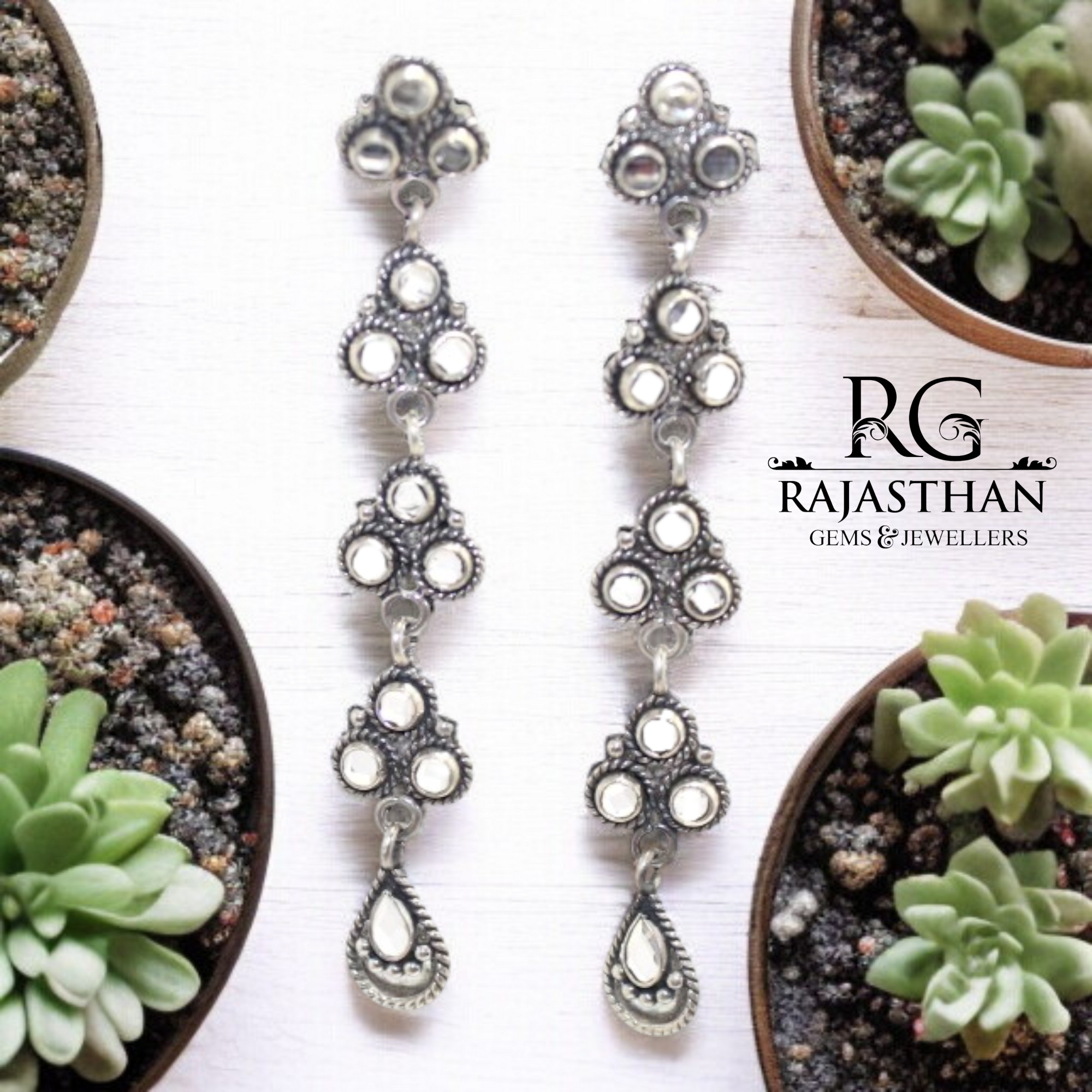 Rajasthan Gems Dangle Earrings Silver 925 Sterling Traditional Tribal Cubic Zirconia CZ Stone Handmade Gift Women G624