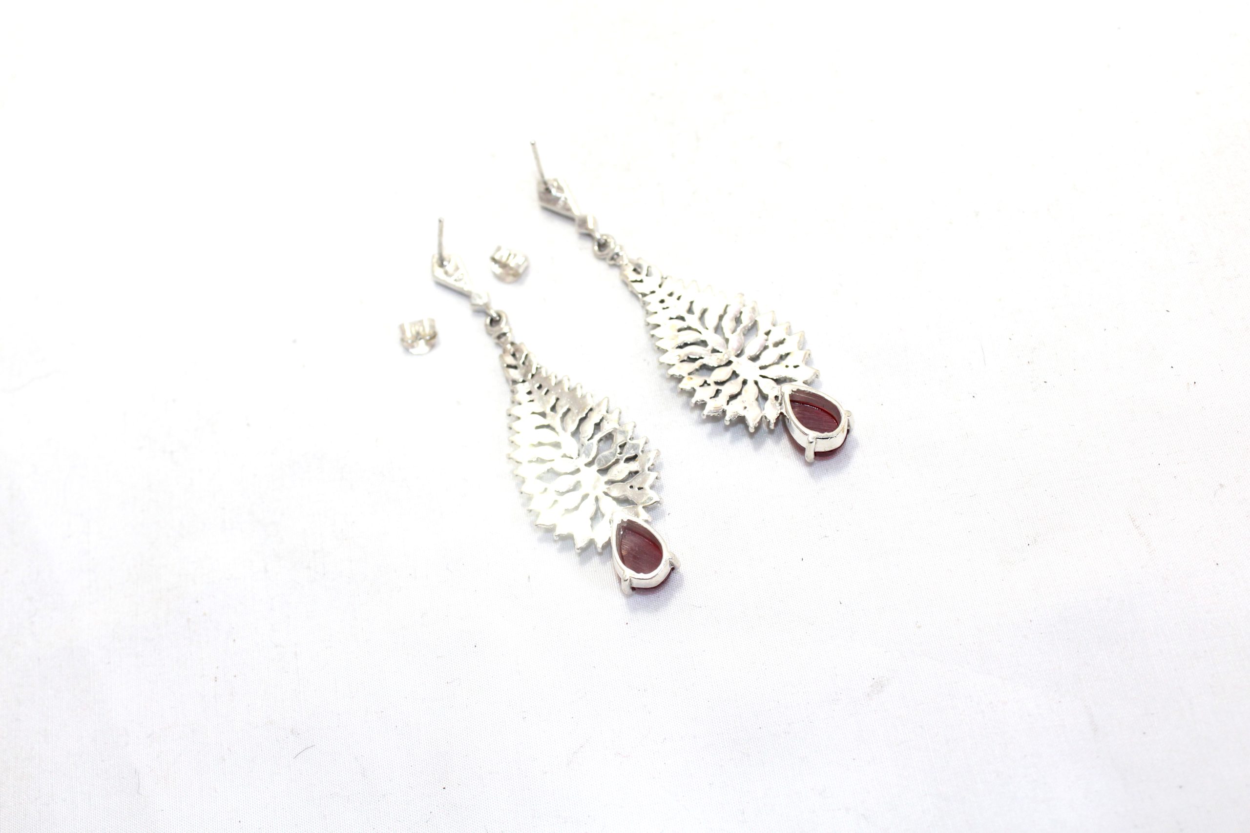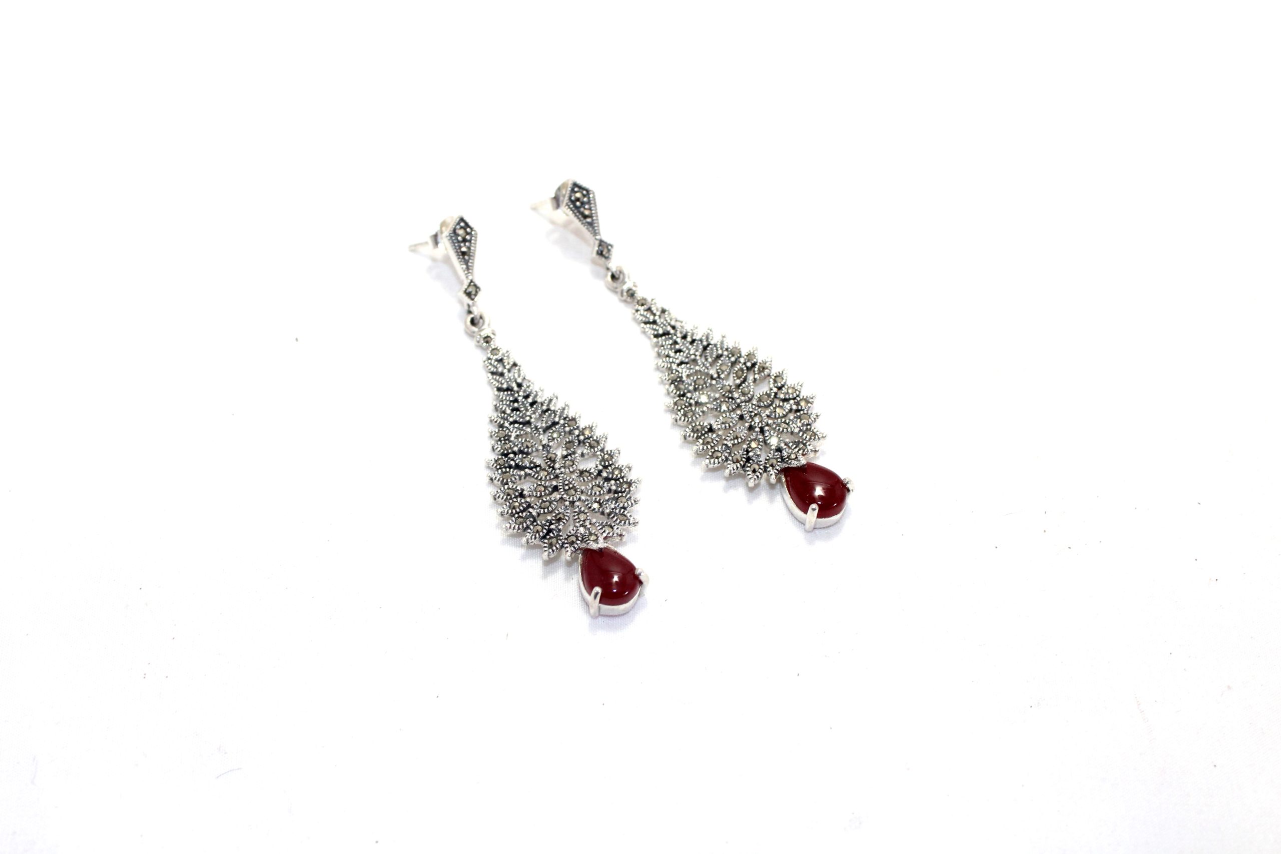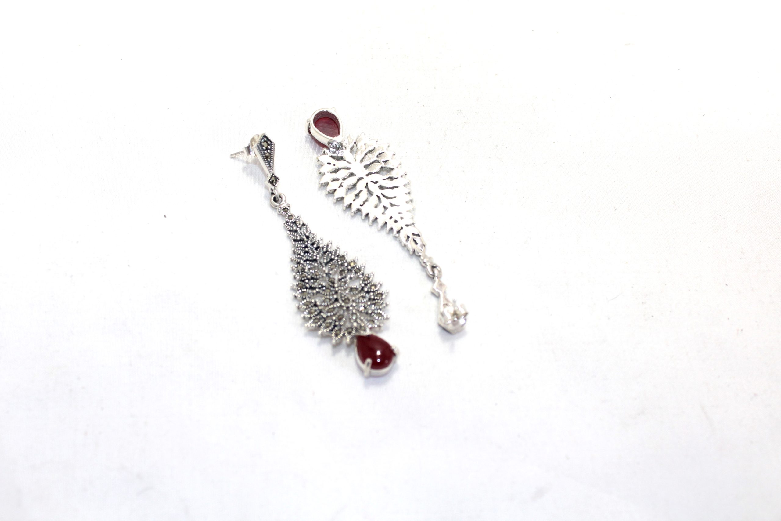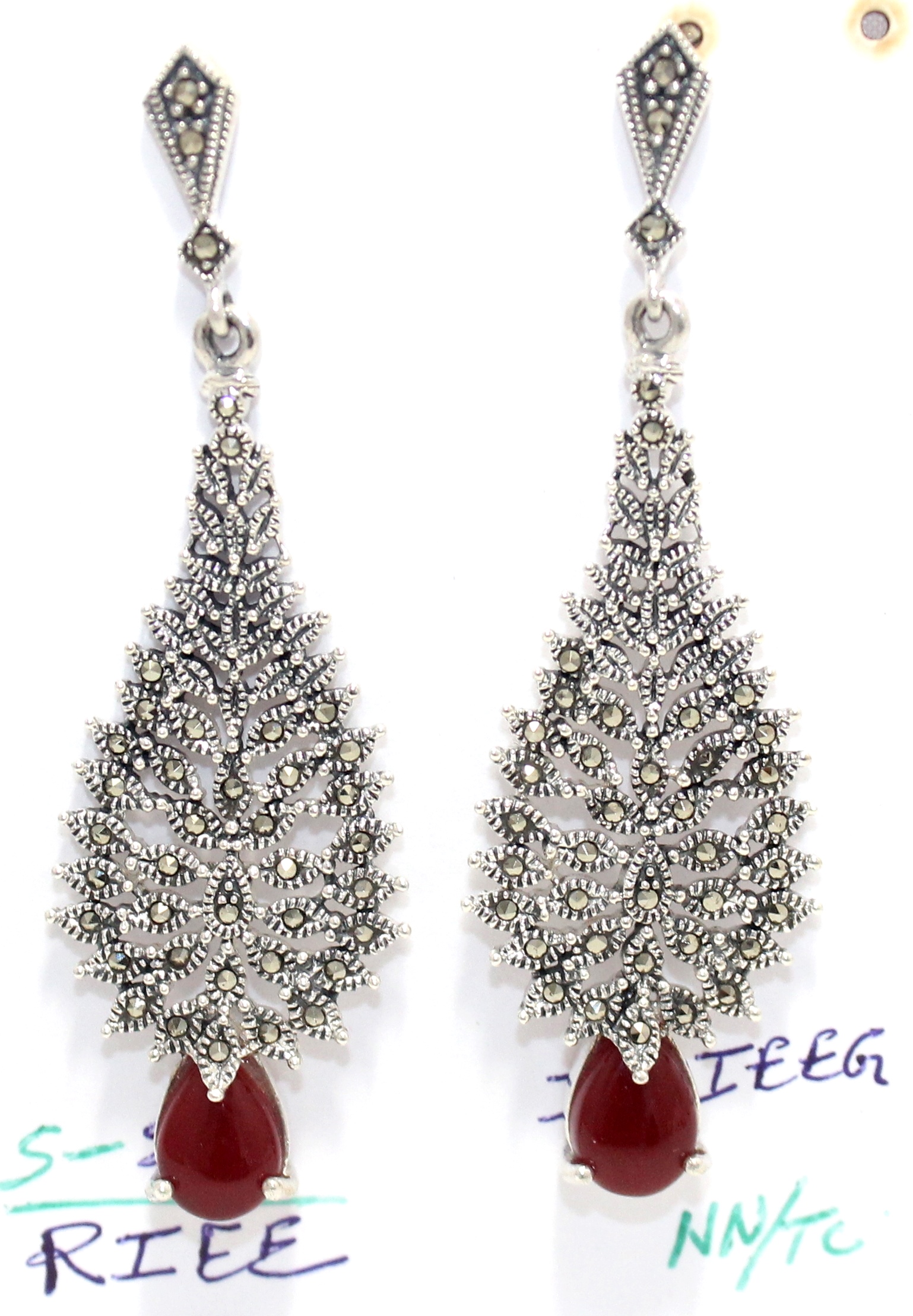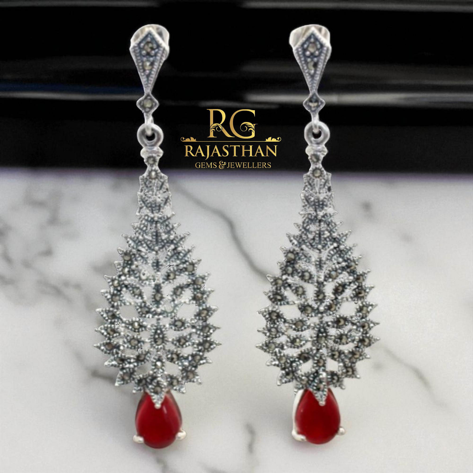 Home » Shop » Rajasthan Gems Dangle Long Earrings Silver 925 Sterling Marcasite & Carnelian Gem Stone Handmade Women Gift Designer G294