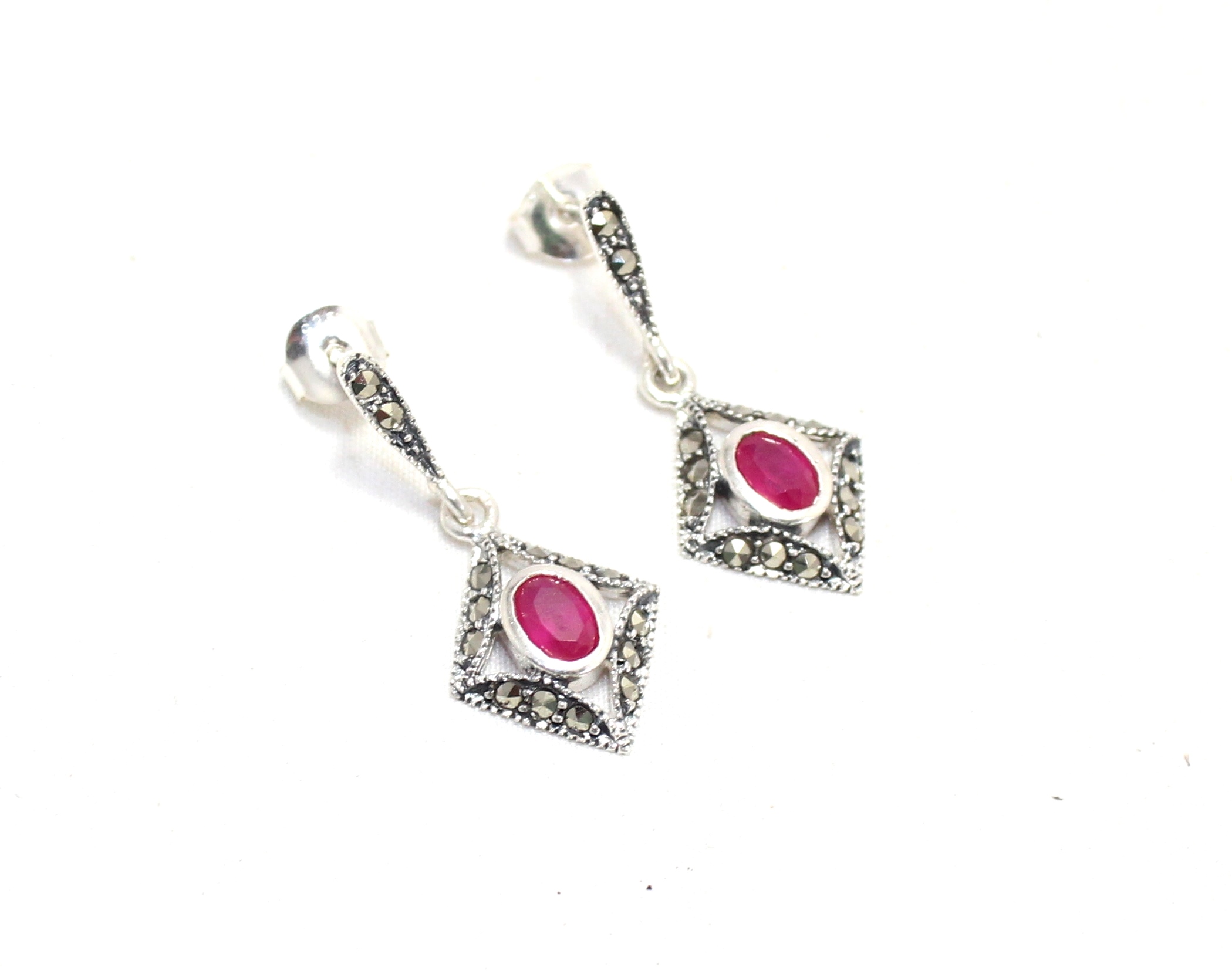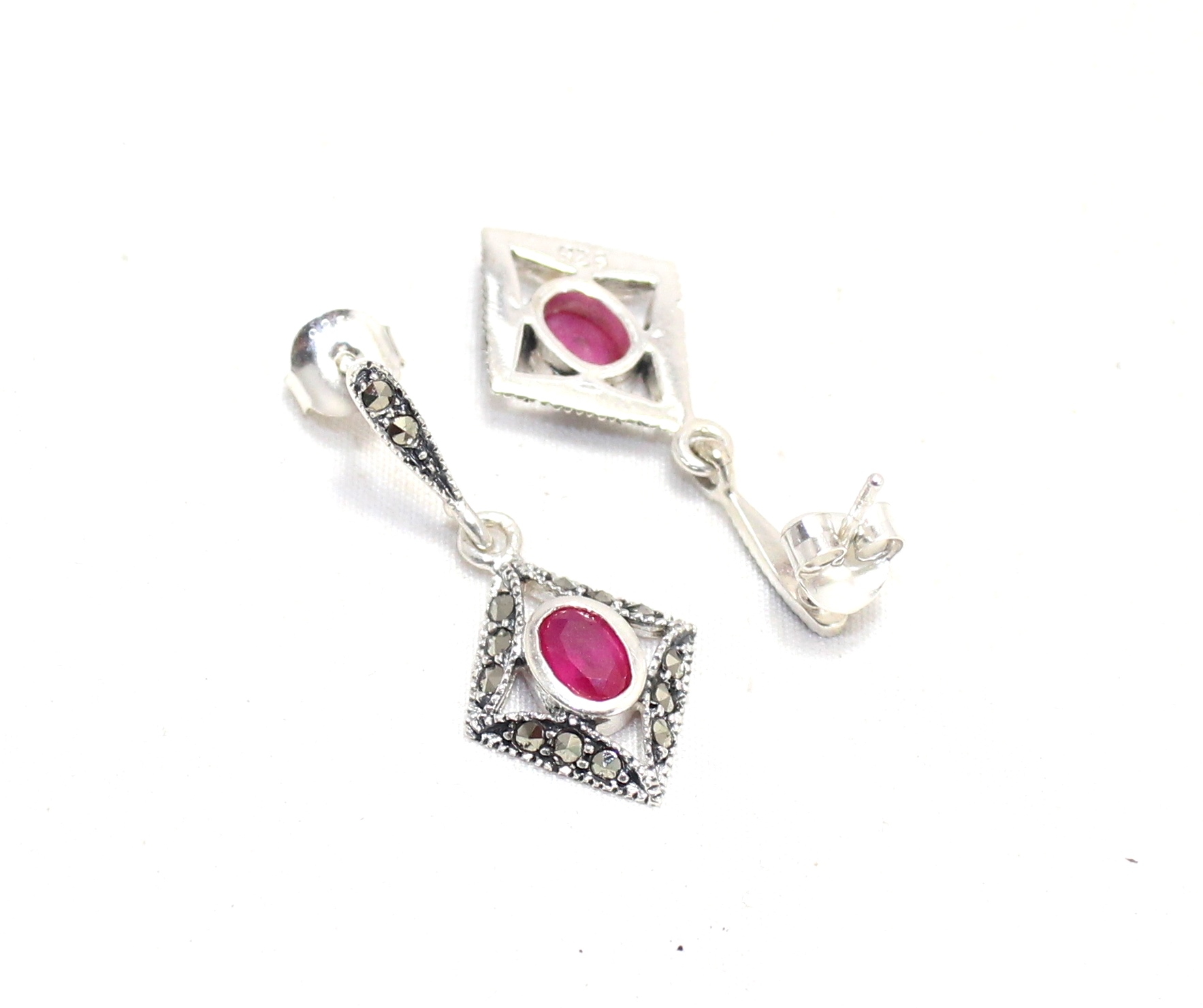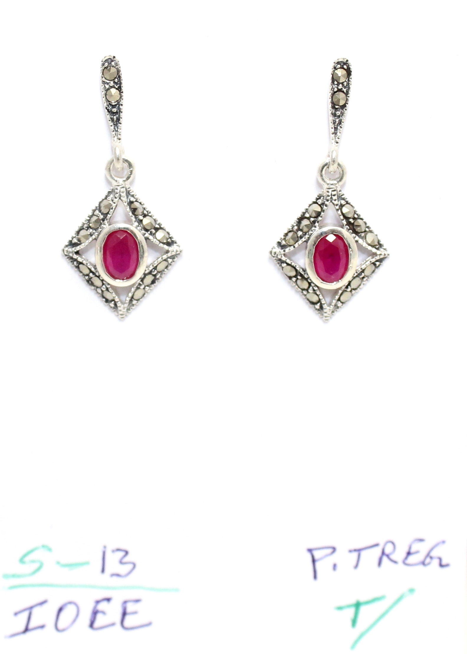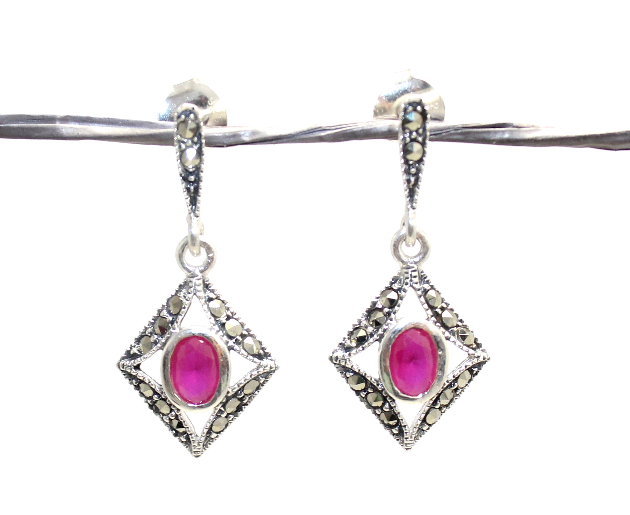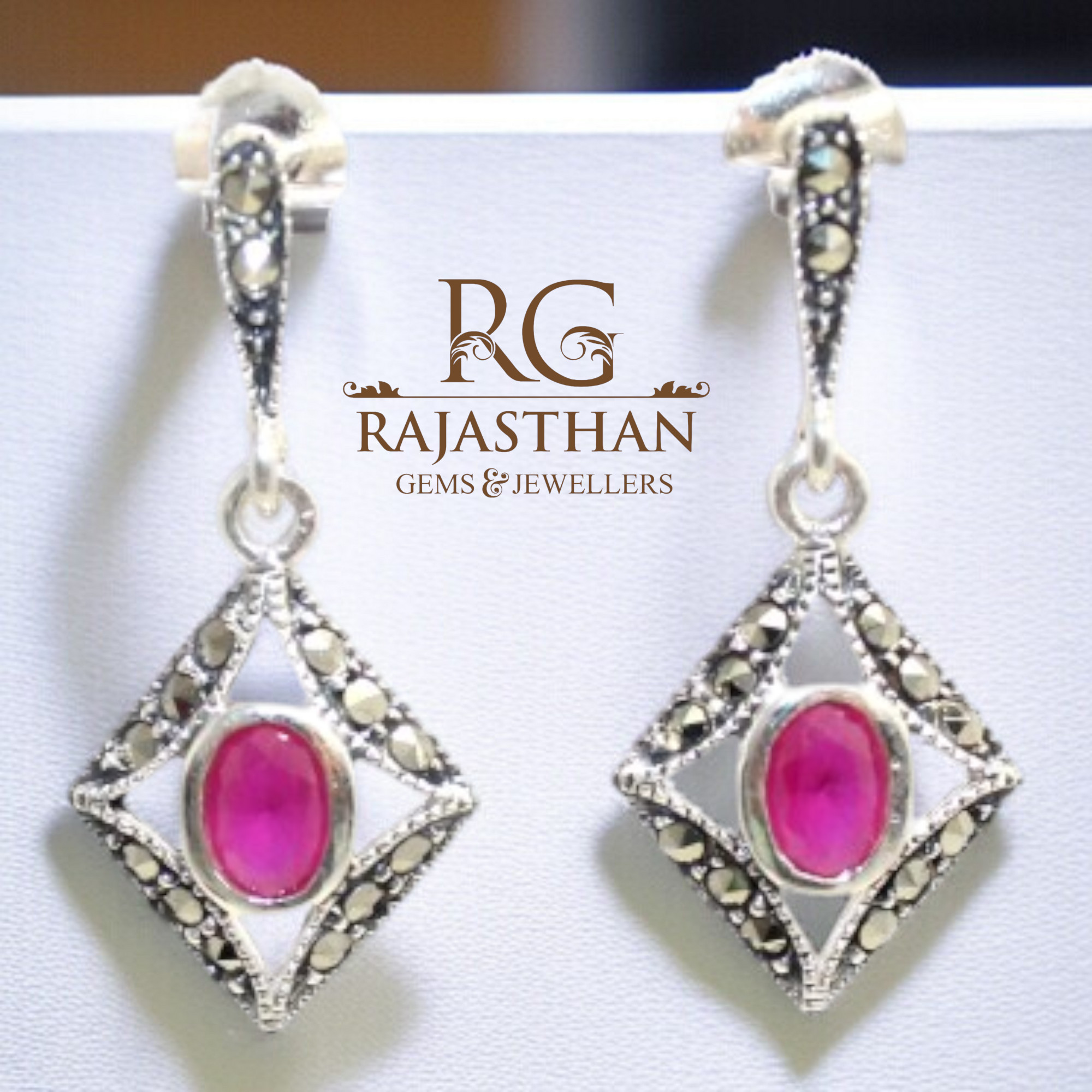 Rajasthan Gems Designer Earrings 925 Sterling Silver Marcasite & Onyx Gem Stone Handmade Women Gift G559
