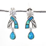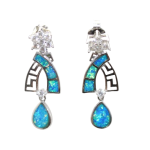 Rajasthan Gems Designer Earrings 925 Sterling Silver Synthetic Opal Stone & Cubic Zirconia CZ Handmade Women Gift H480