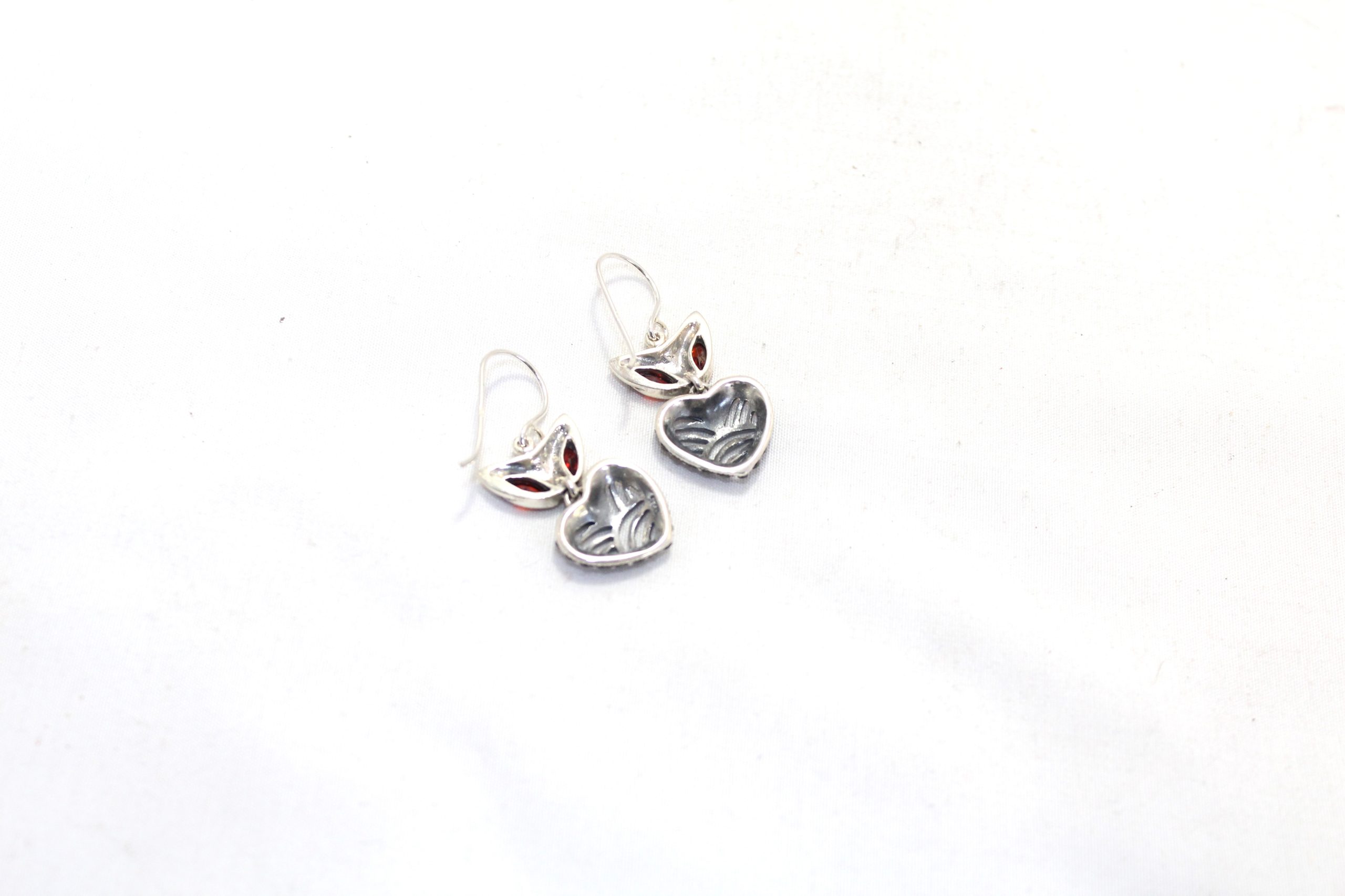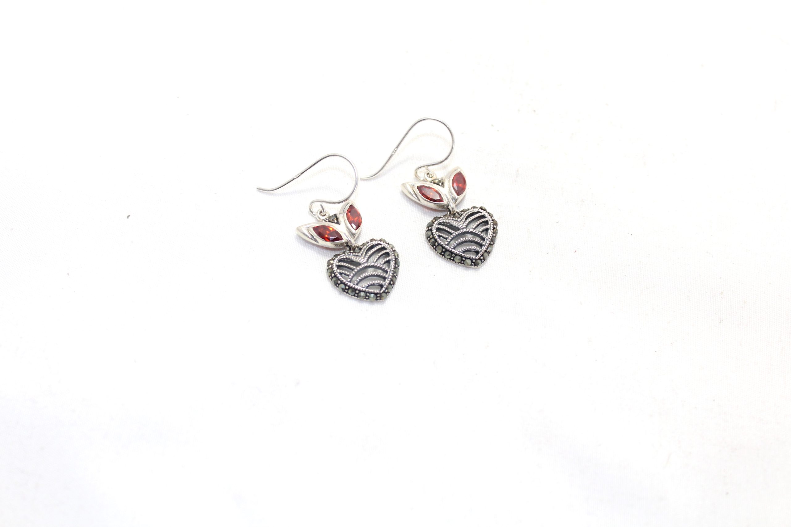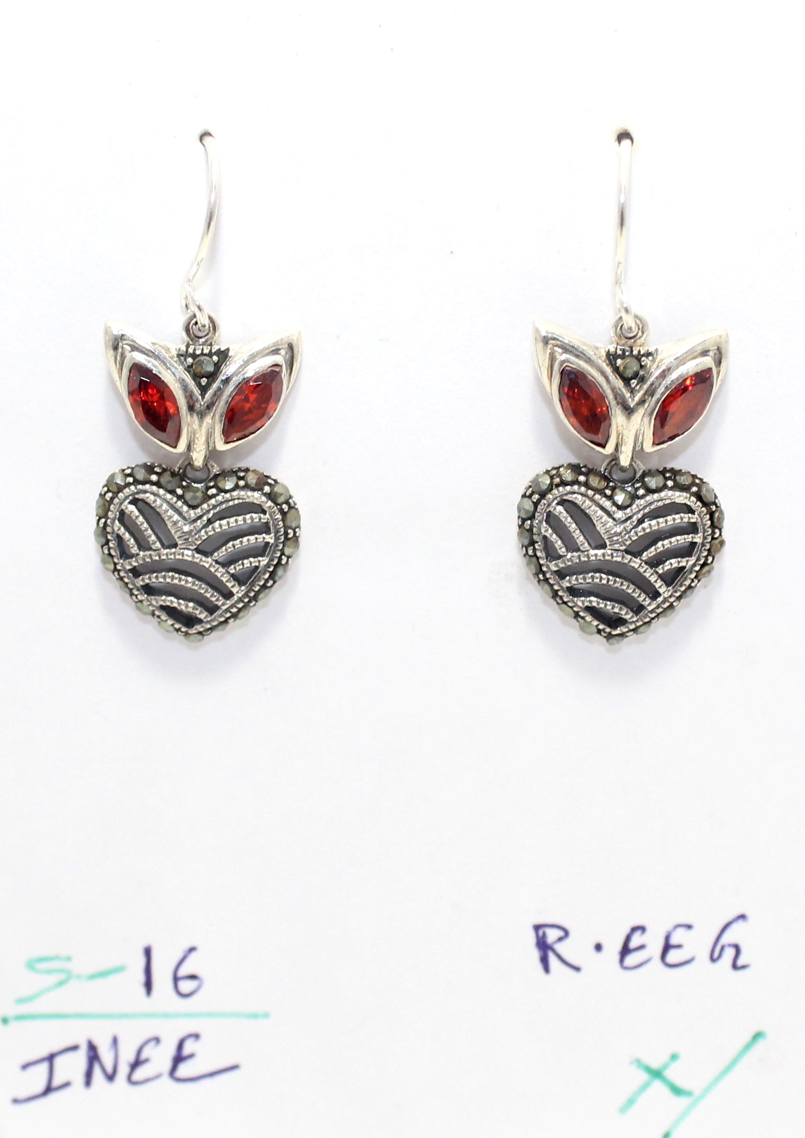 Rajasthan Gems Designer Heart Earrings 925 Sterling Silver Marcasite & Cubic Zirconia CZ Stone Handmade Women Gift G286