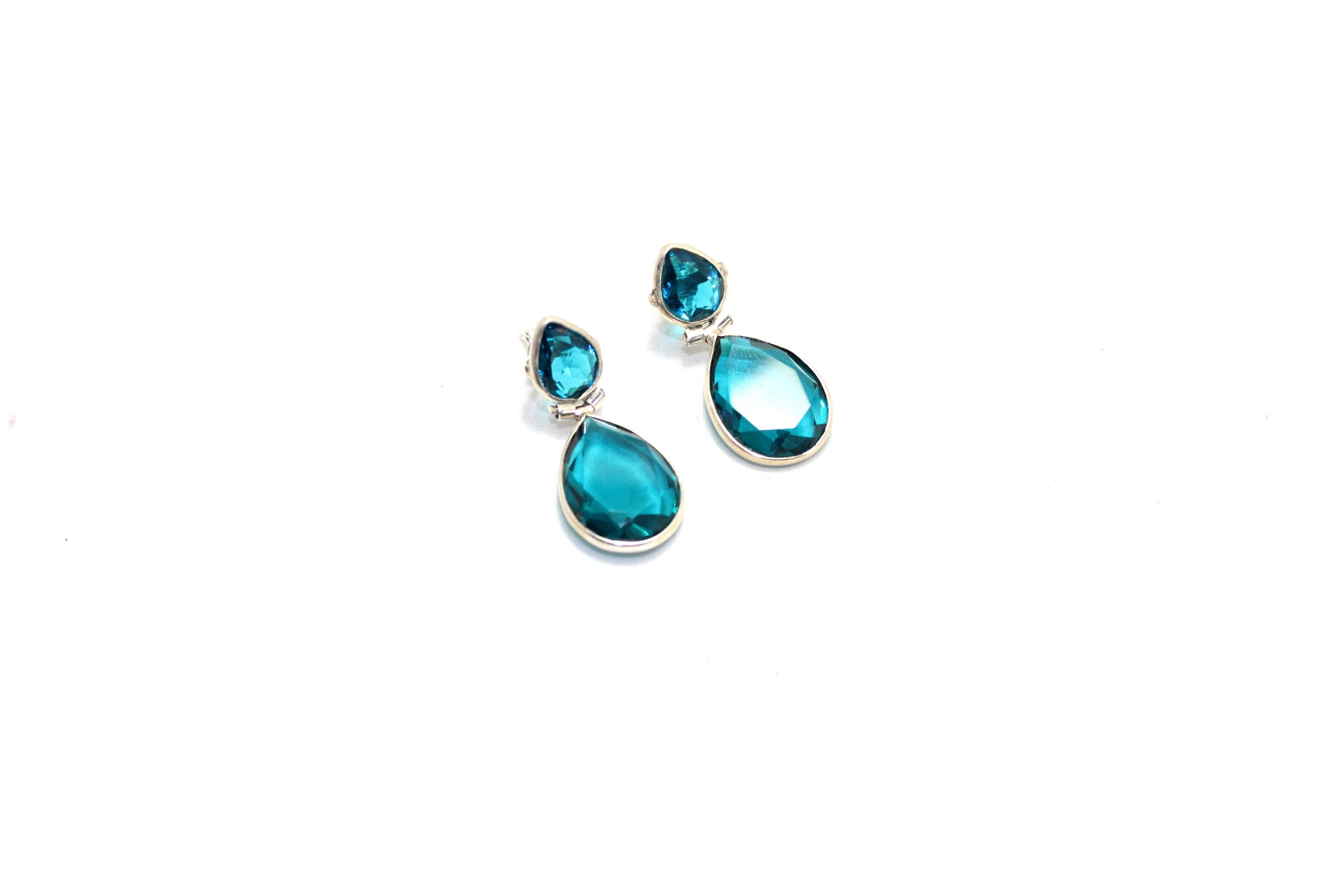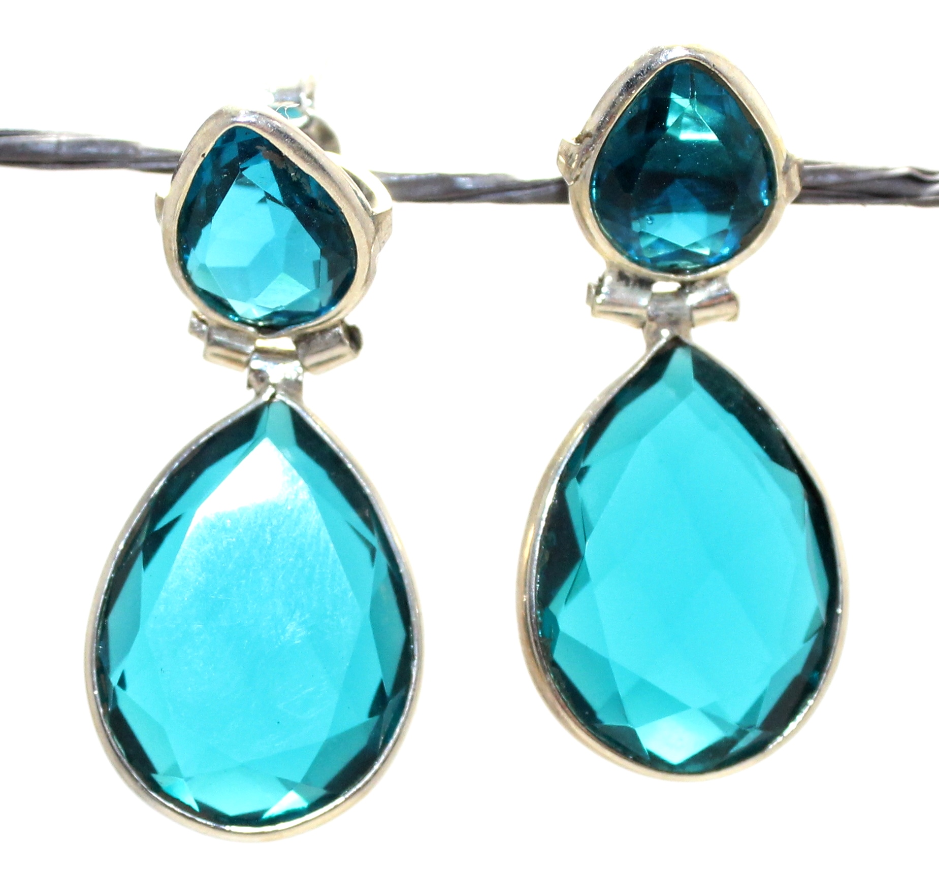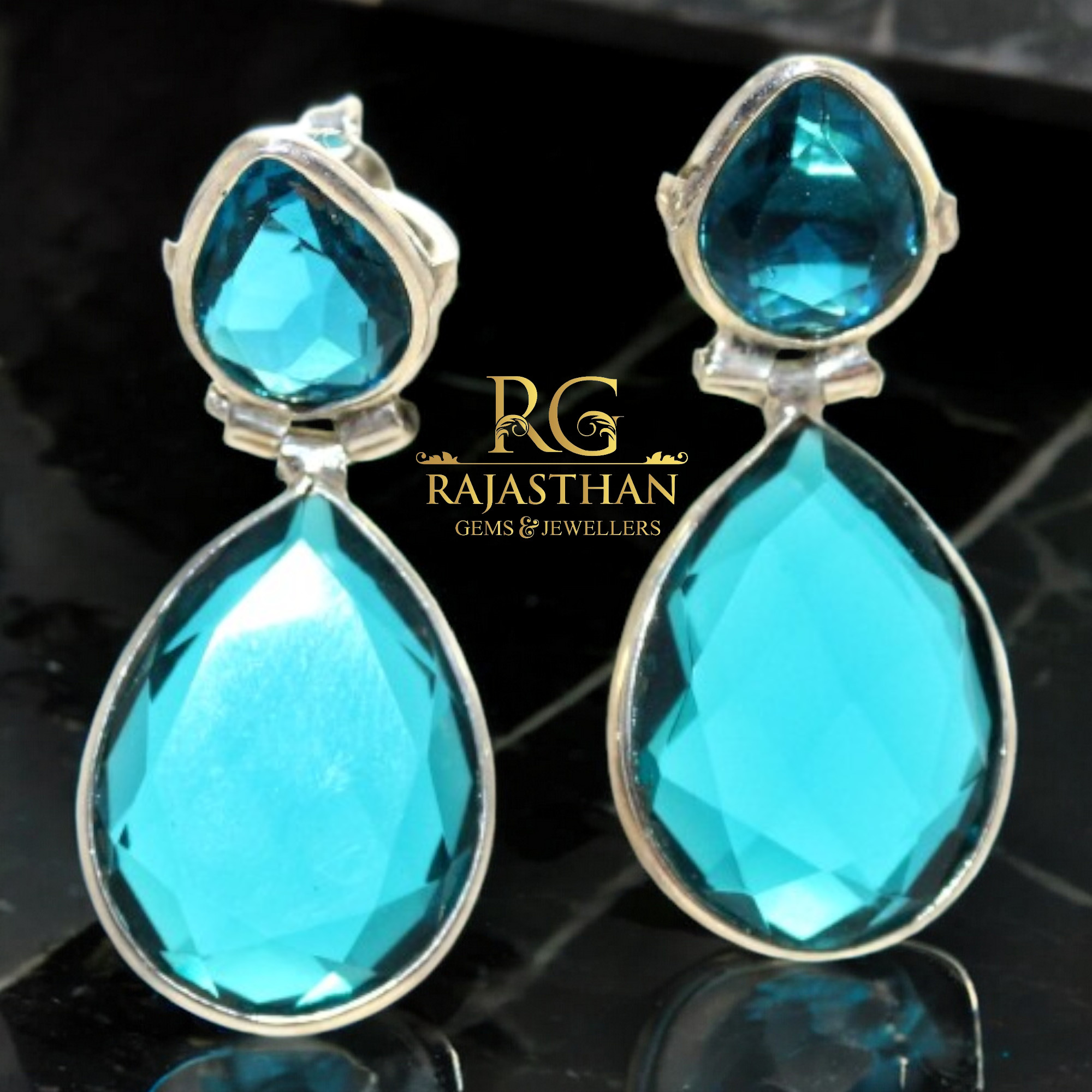 Rajasthan Gems Earrings 925 Sterling Silver Blue Cubic Zirconia CZ Zircon Stone Handmade Women Gift G437