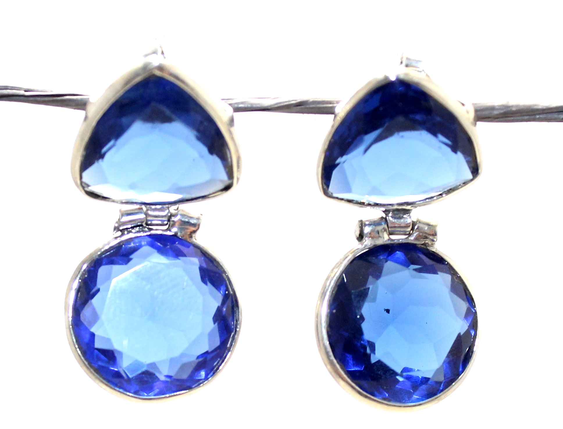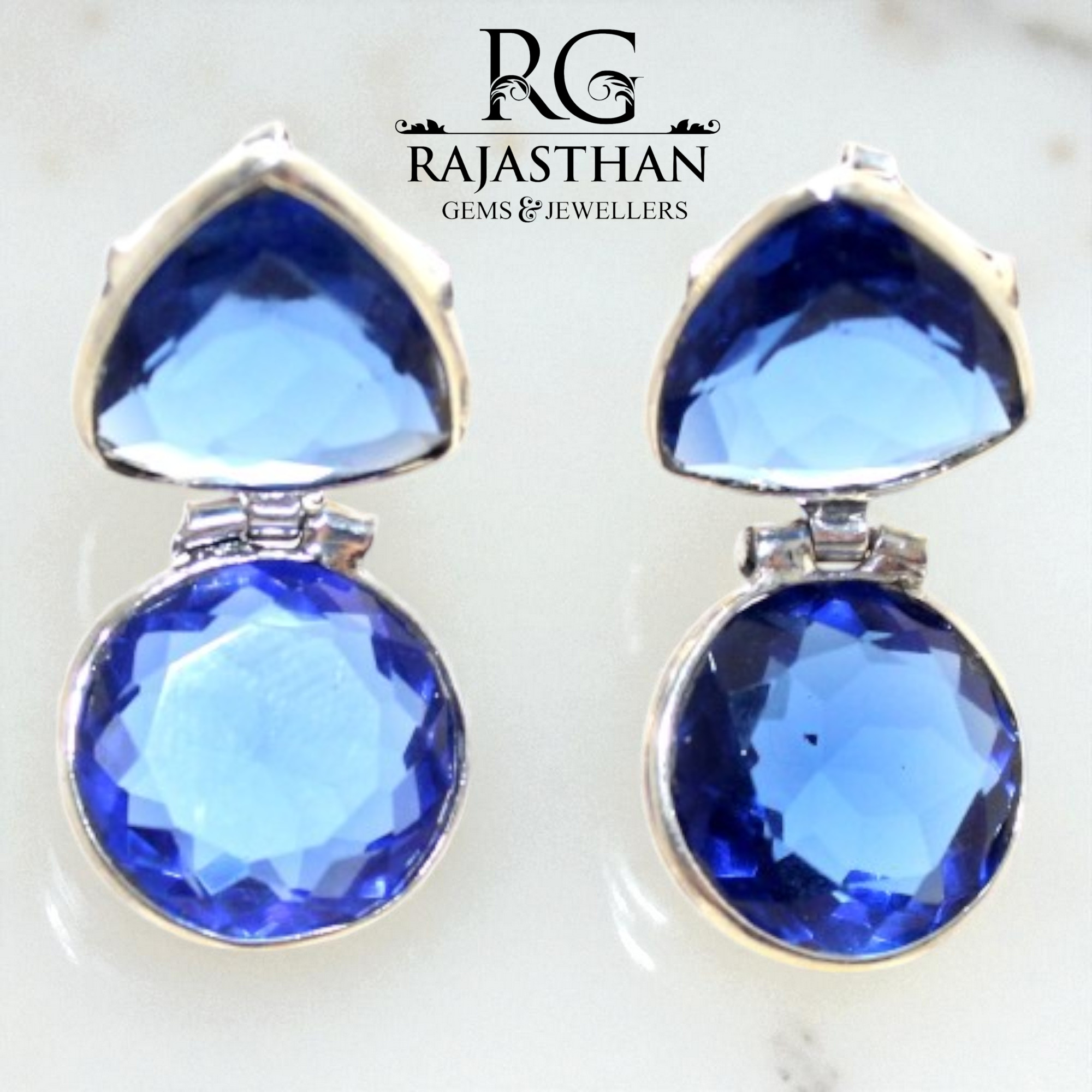 Rajasthan Gems Earrings 925 Sterling Silver Blue Cubic Zirconia Zircon Stone Handmade Women Gift G436