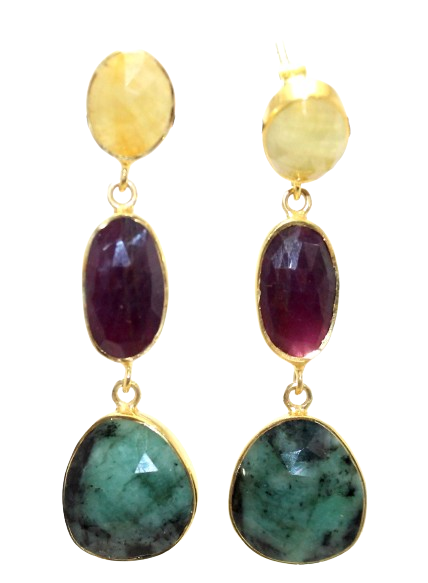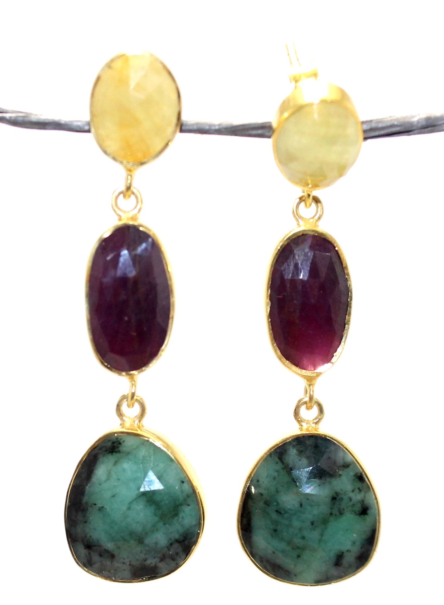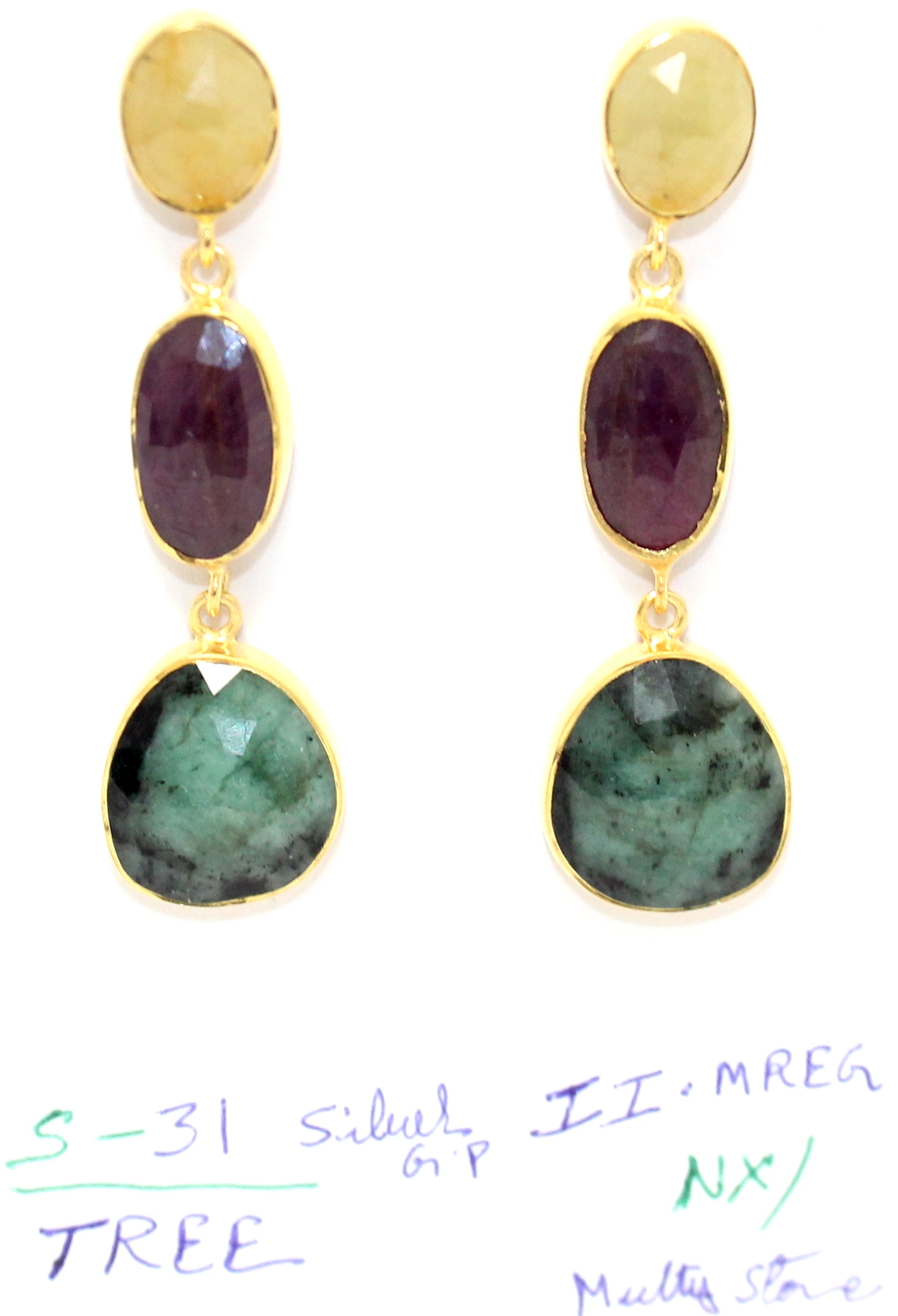 Home » Shop » Rajasthan Gems Earrings 925 Sterling Silver Gold Rhodium Designer Natural Multi Sapphire Gem Stone Gemstone Handmade Gift Women H748