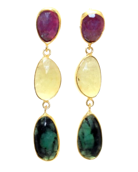 Home » Shop » Rajasthan Gems Earrings 925 Sterling Silver Gold Rhodium Designer Natural Multi Sapphire Gem Stone Gemstone Handmade Gift Women H752