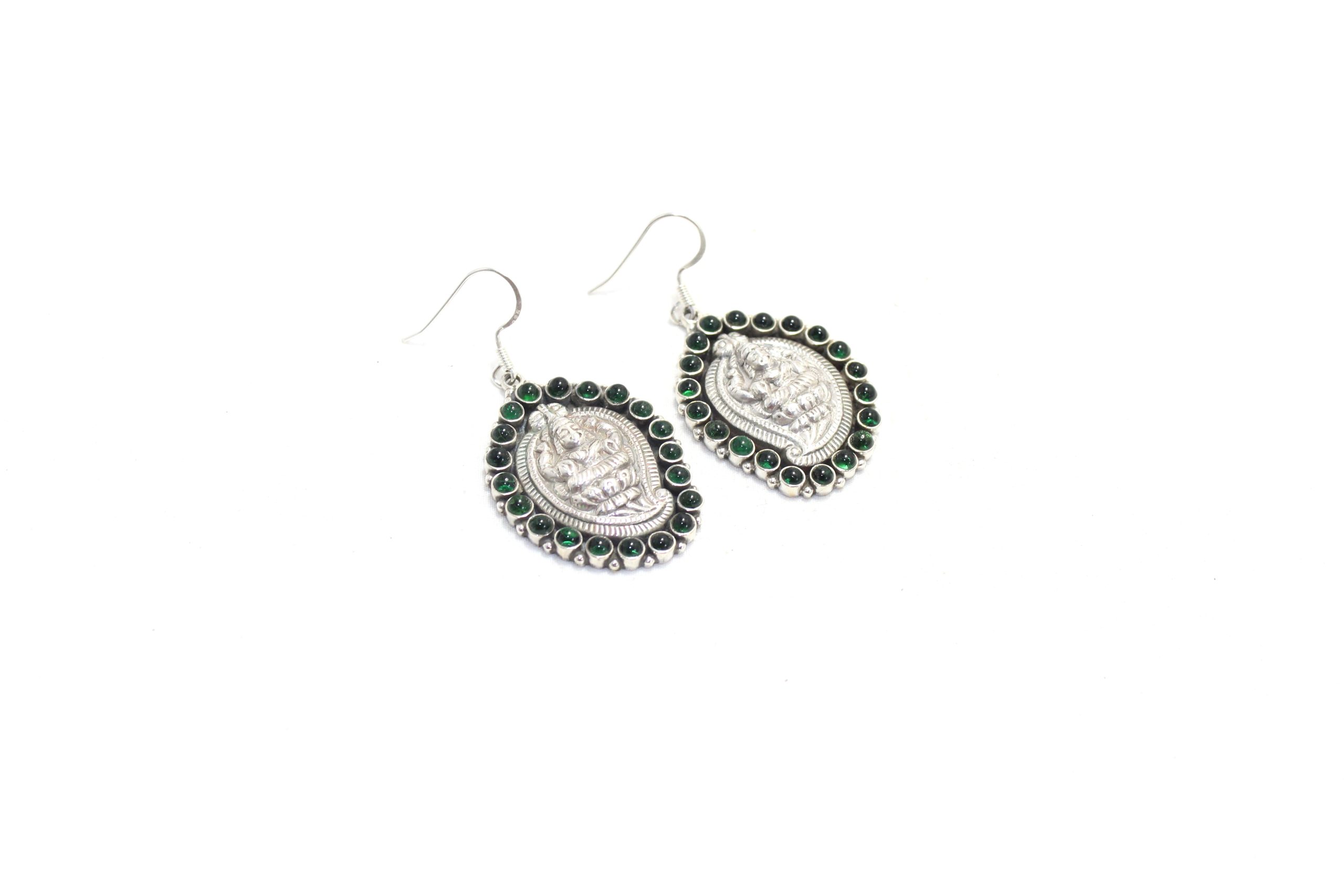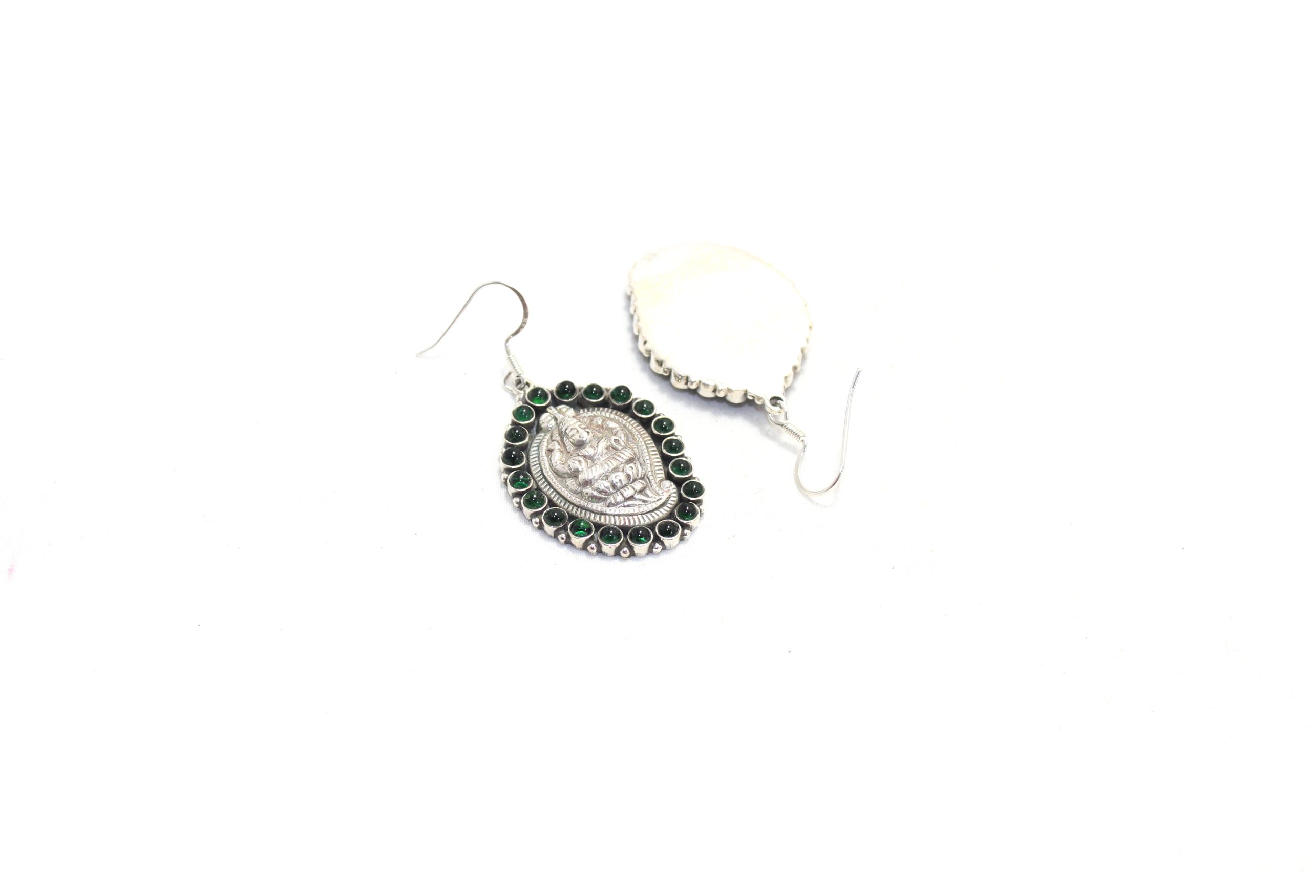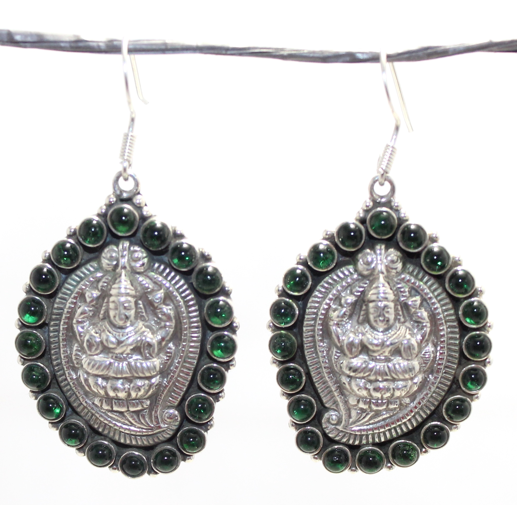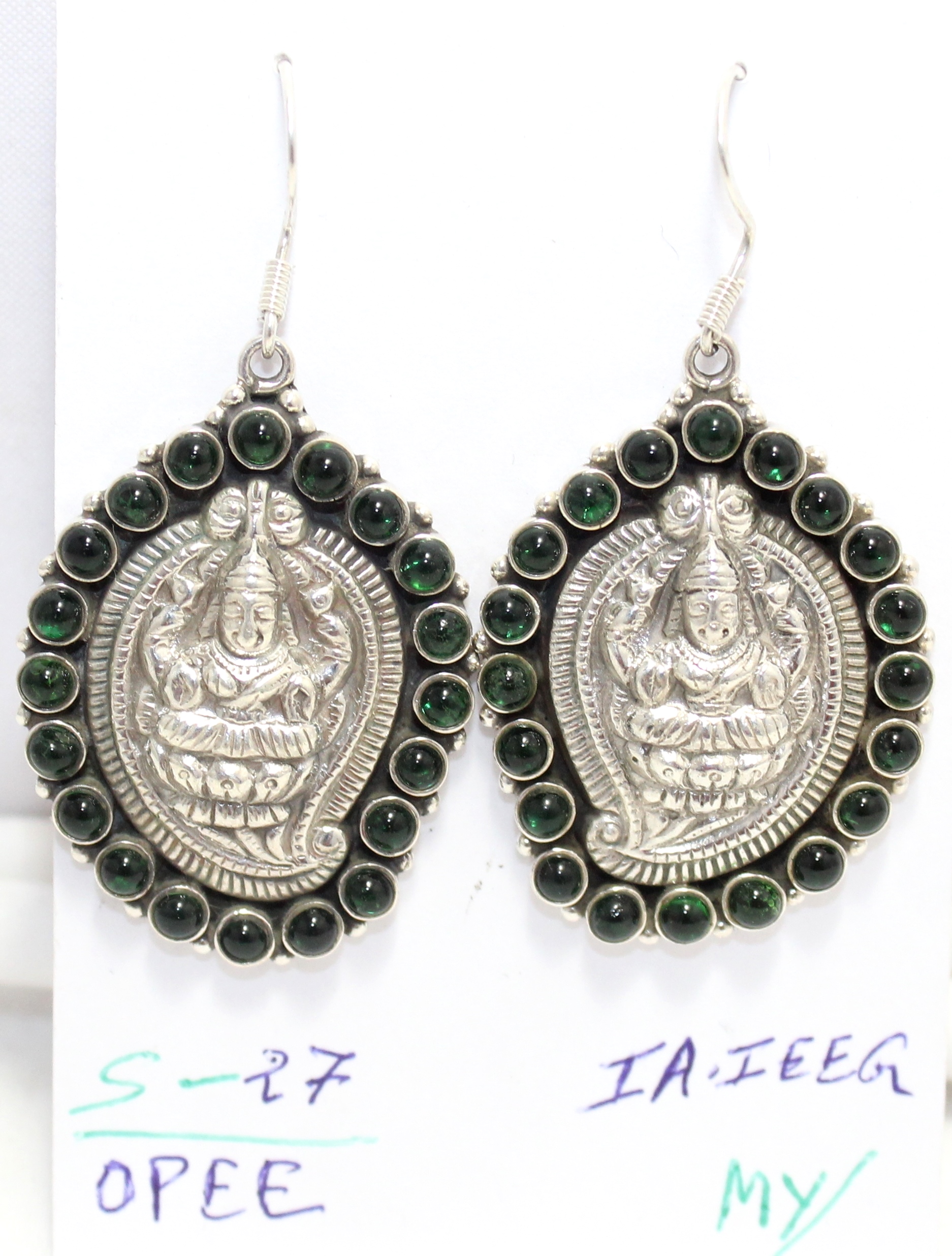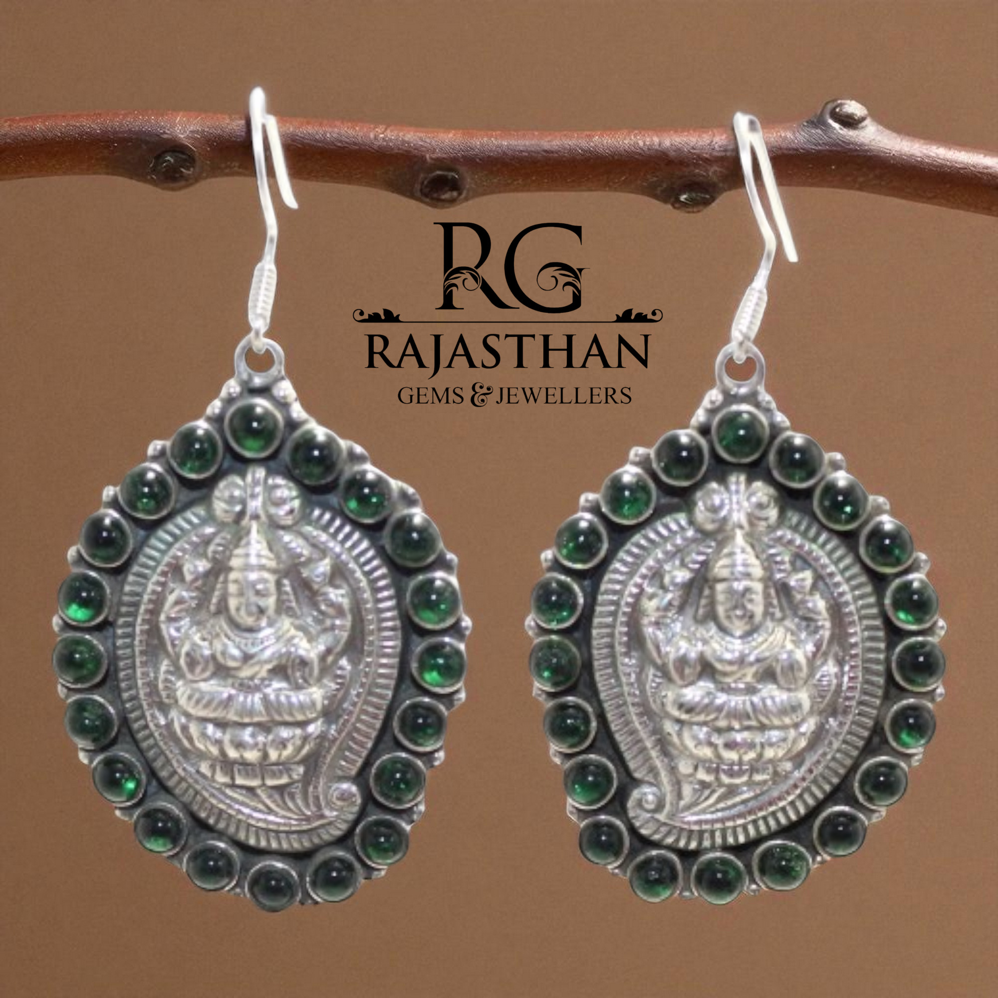 Rajasthan Gems Earrings Dangle Traditional Temple 925 Sterling Silver Laxmi Lakshmi Hand Engraved Handmade Women Gift G622