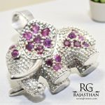 Rajasthan Gems Elephant Charm Pendant Solid 925 Sterling Silver Natural Ruby Blue Sapphire Neelam Manik Gem Stone Women Men Unisex Handmade Gift H393
