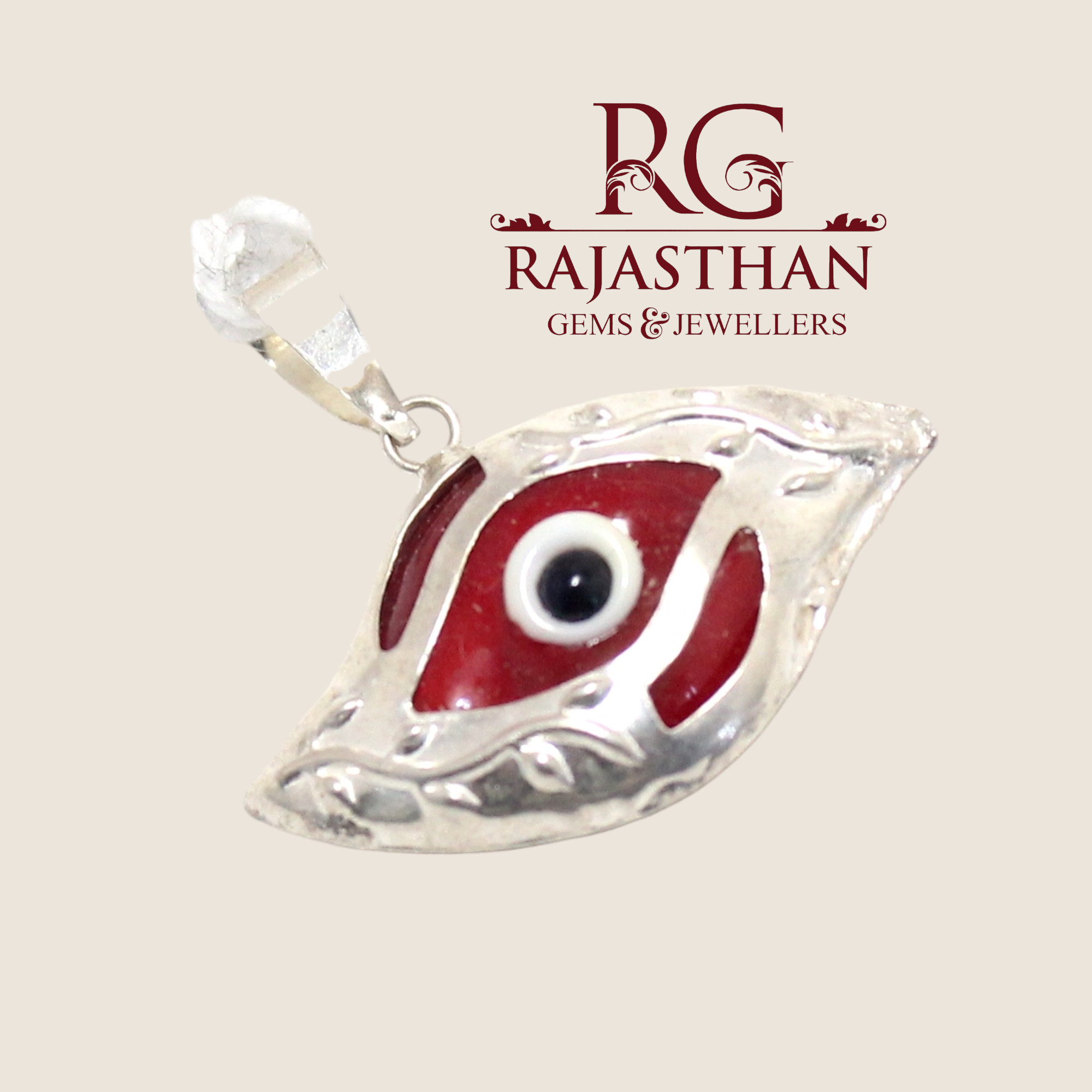 Rajasthan Gems Evil Eye Charm Pendant Nazariya 925 Sterling Silver Men Women Unisex Handmade Gift F466