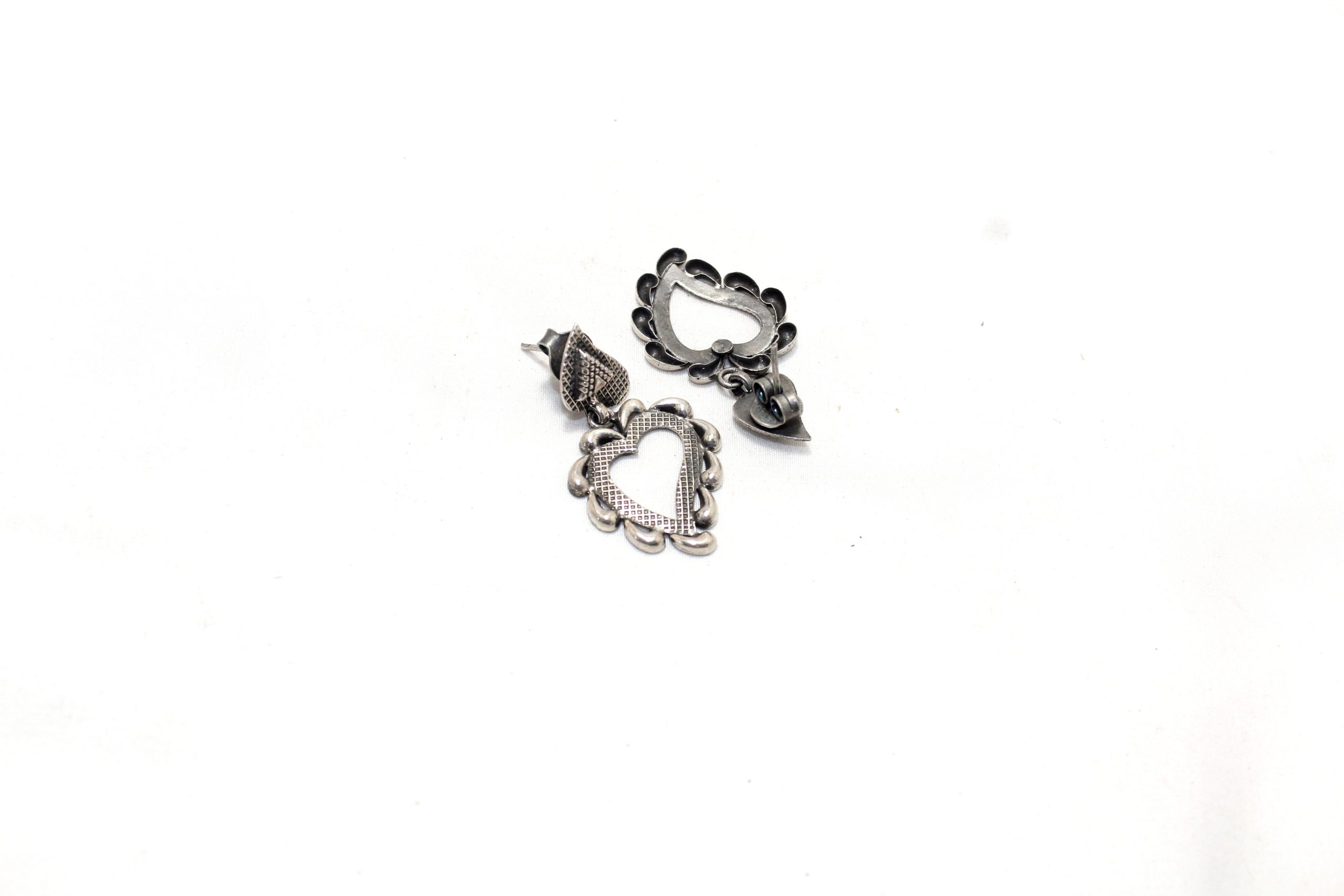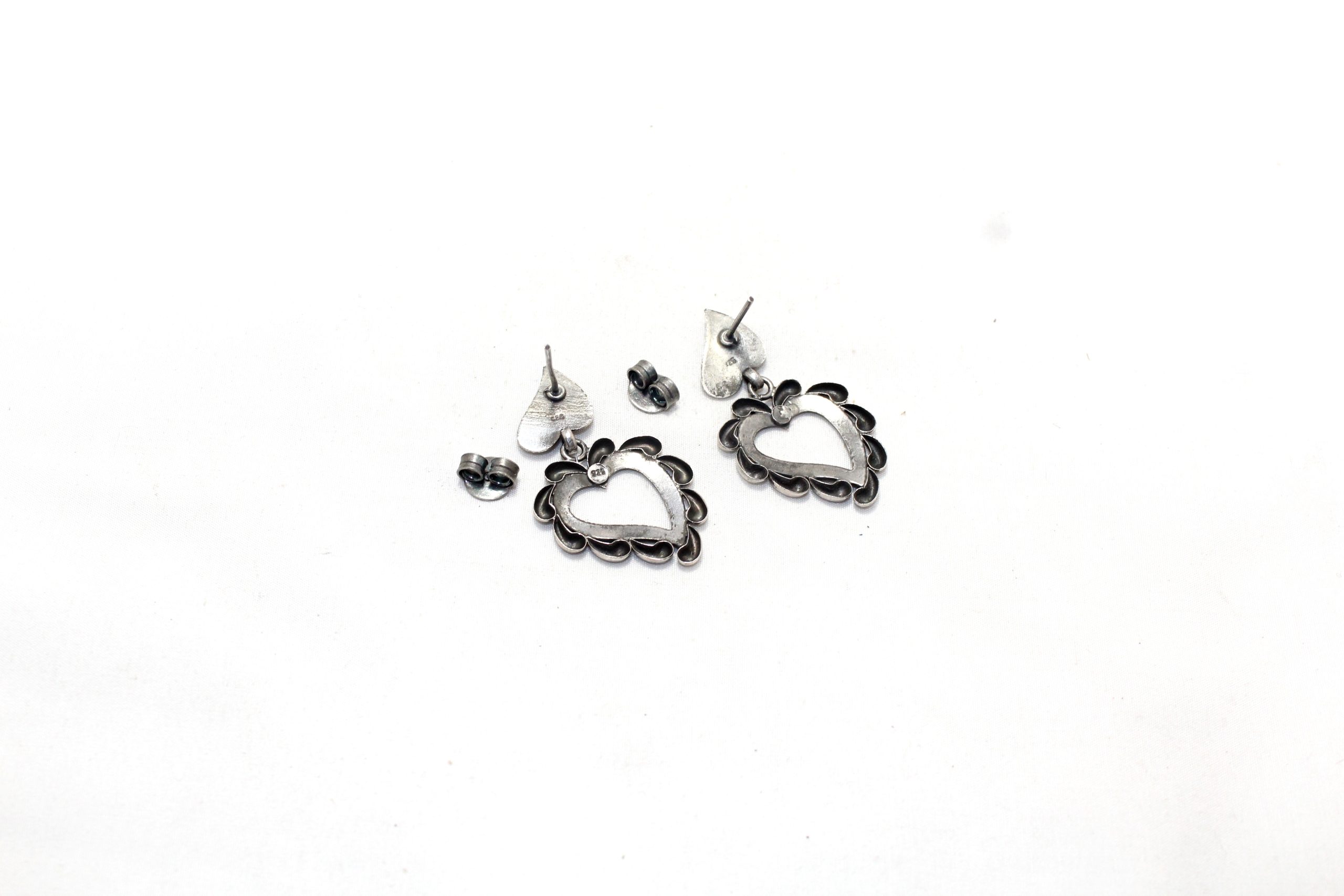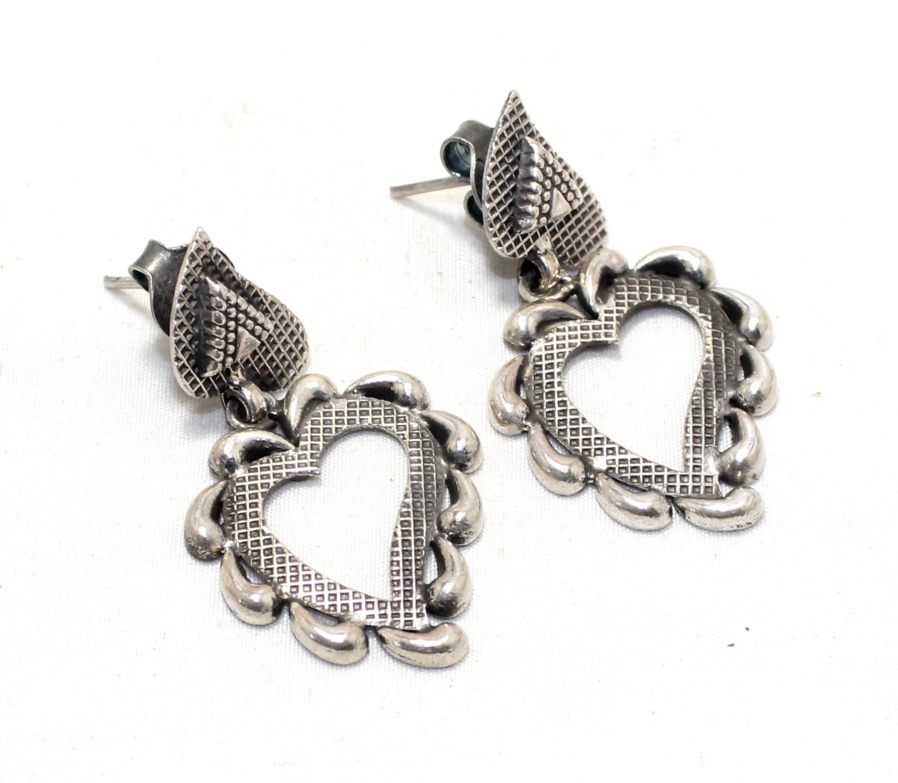 Rajasthan Gems Heart Earrings 925 Sterling Silver Handmade Women Gift Traditional H703