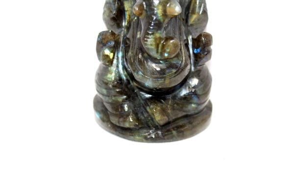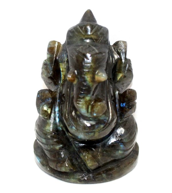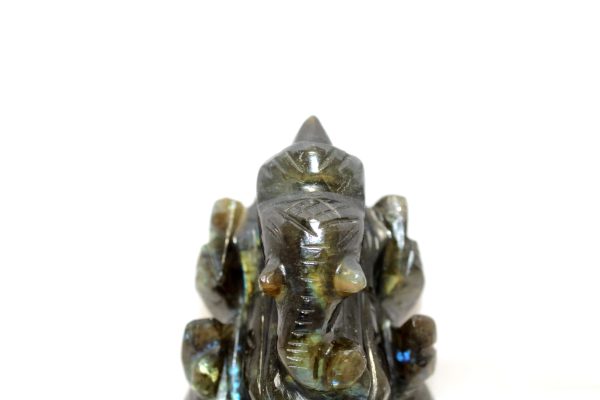 Rajasthan Gems Idol Statue Ganesha Ganesh Figurine Figure Natural Labradorite Gem Stone God Hindu Religious Hand Gemstone Gift Handmade Home Decor G945