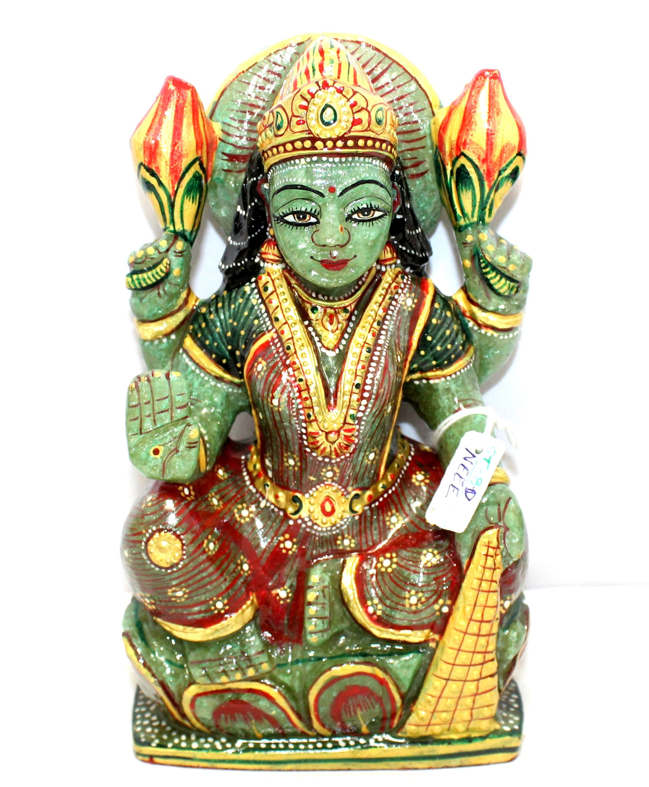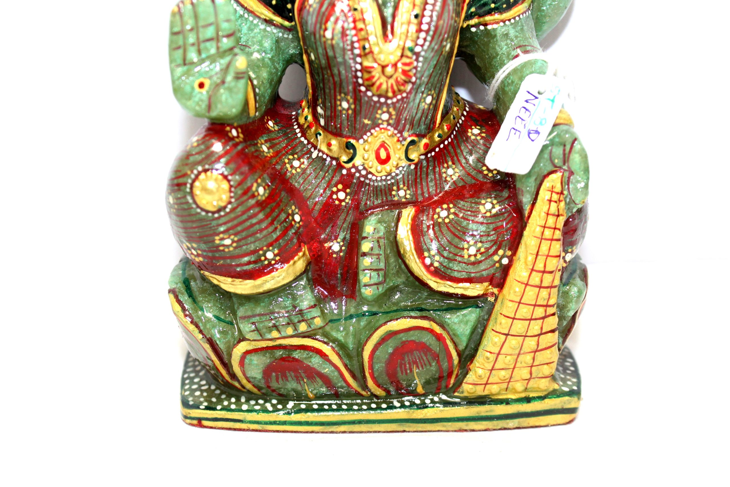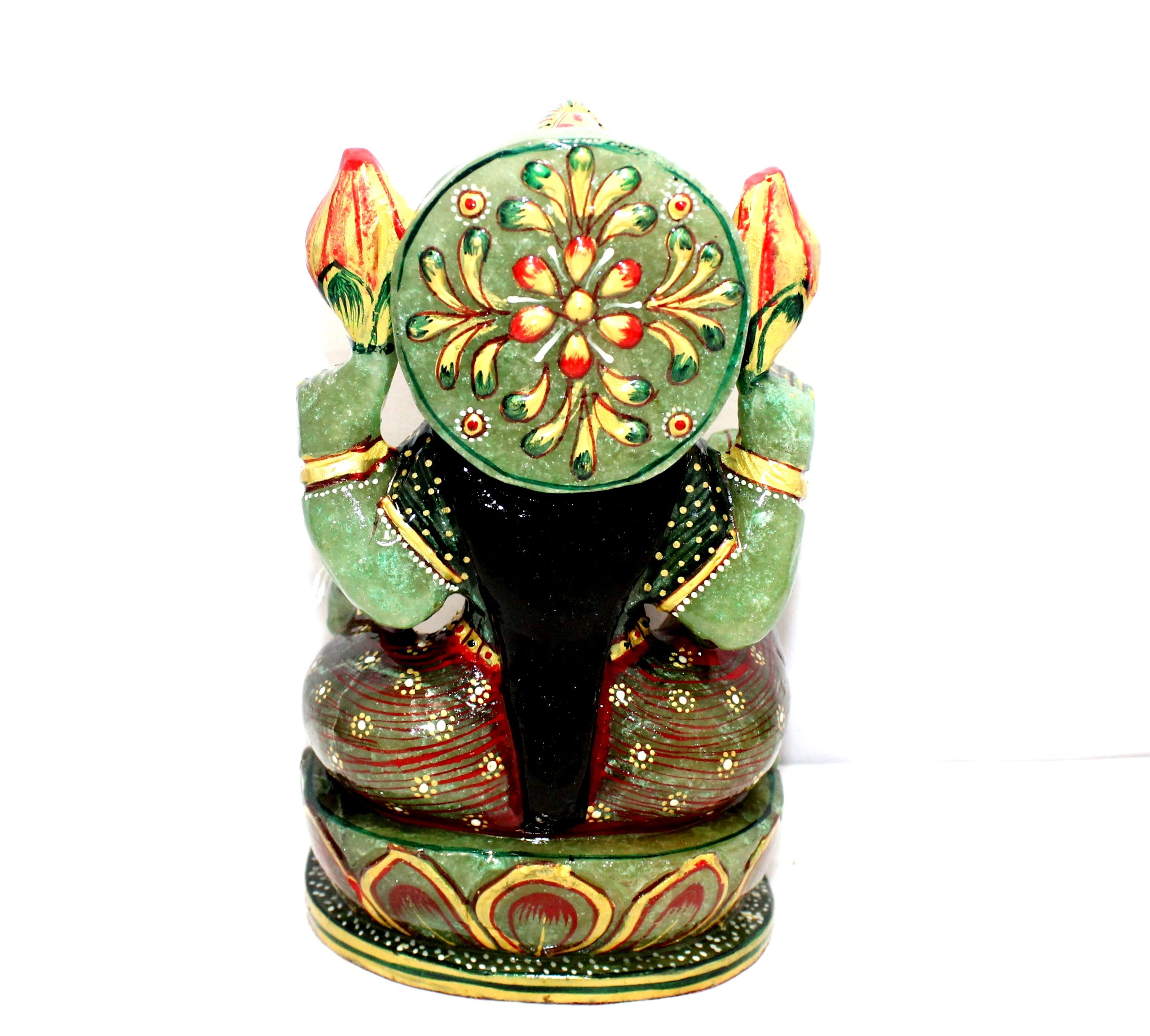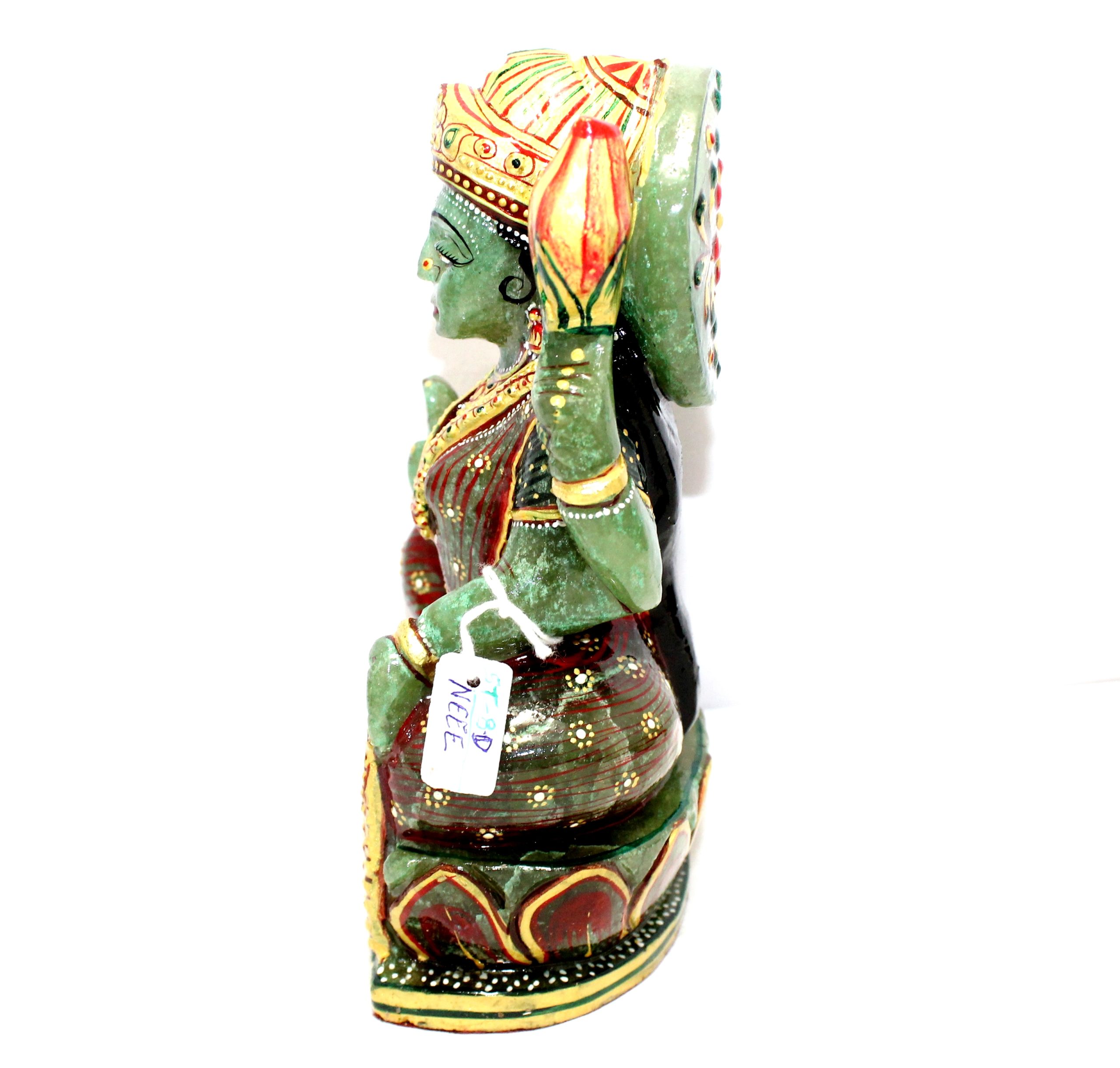 Rajasthan Gems Idol Statue Goddess Laxmi Lakshmi Figurine Figure Natural Green Aventurine Jade Gem Stone Hindu Religious Temple Puja Murti Hand Paint Painted Gemstone Gift Handmade Home Decor G943