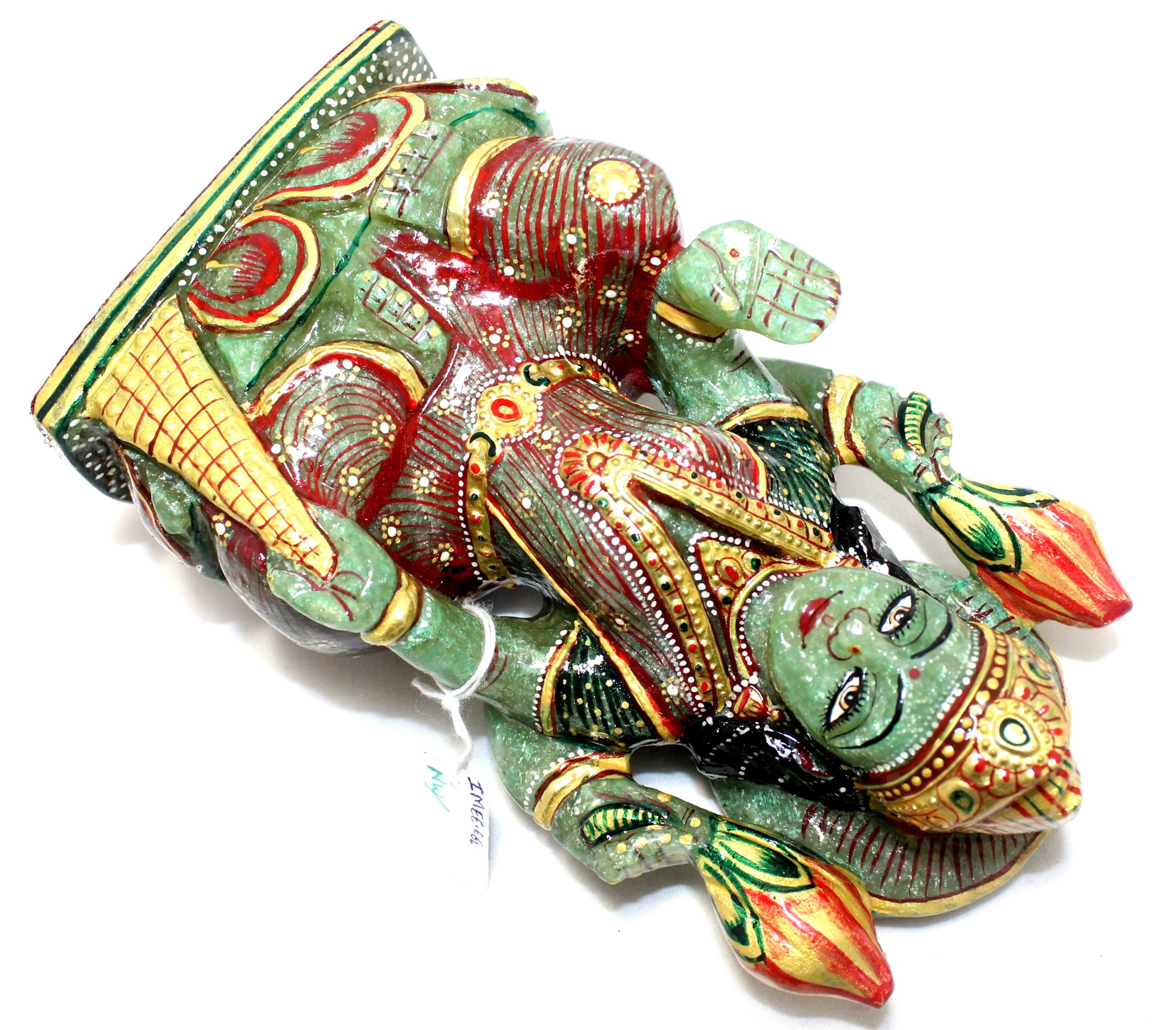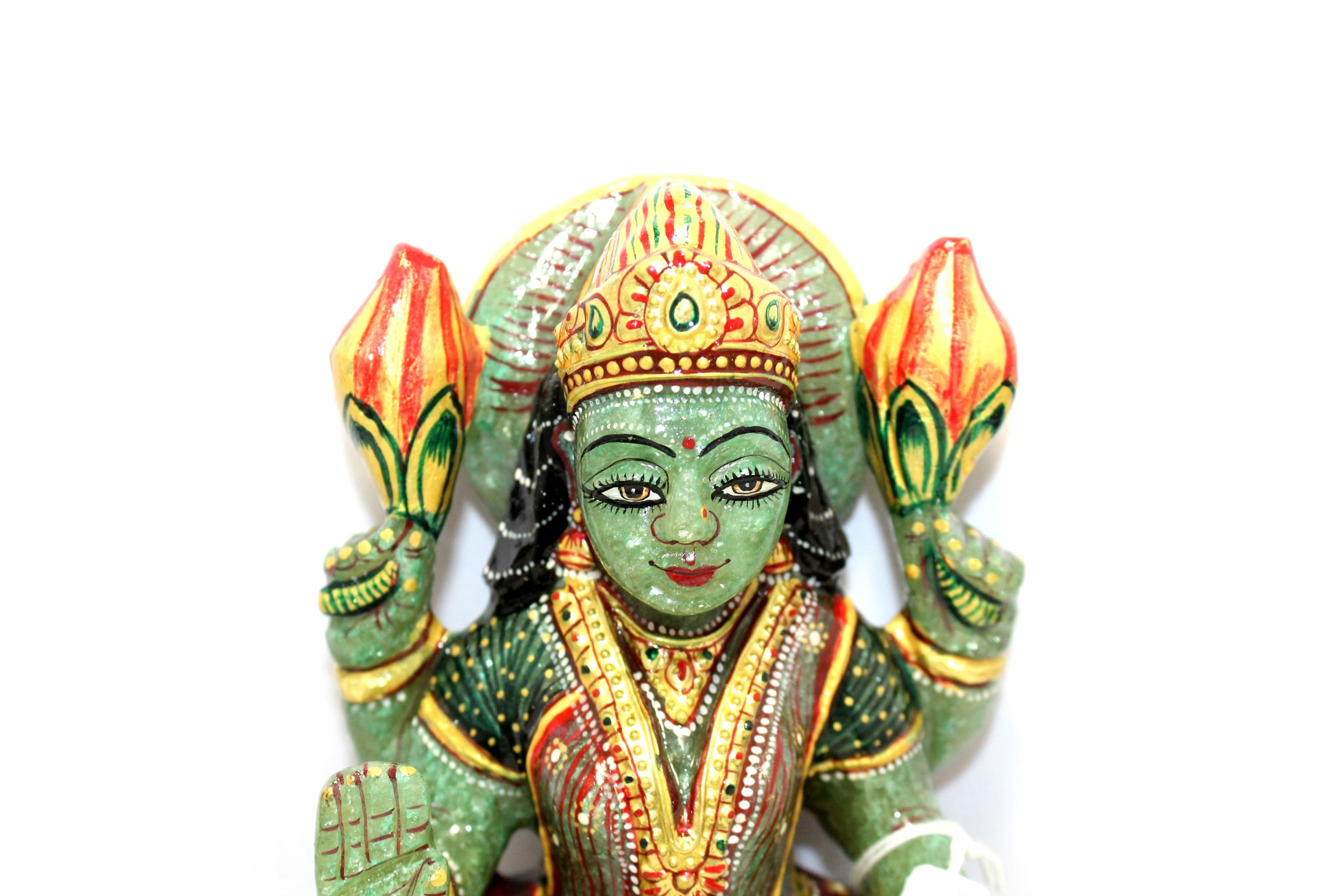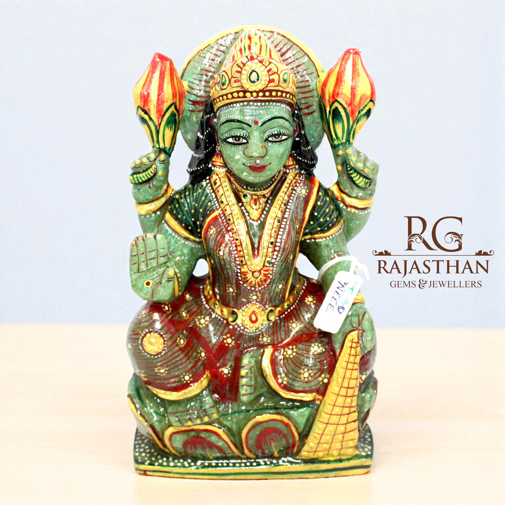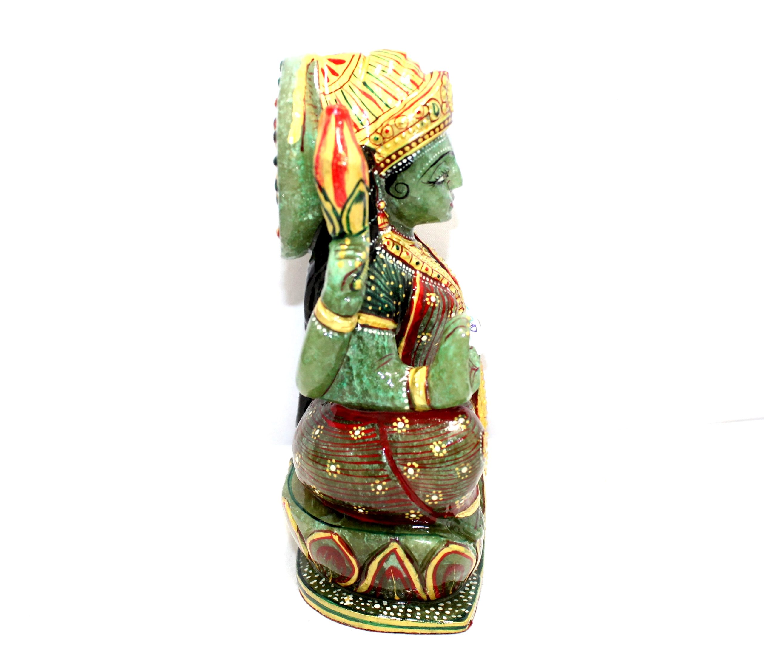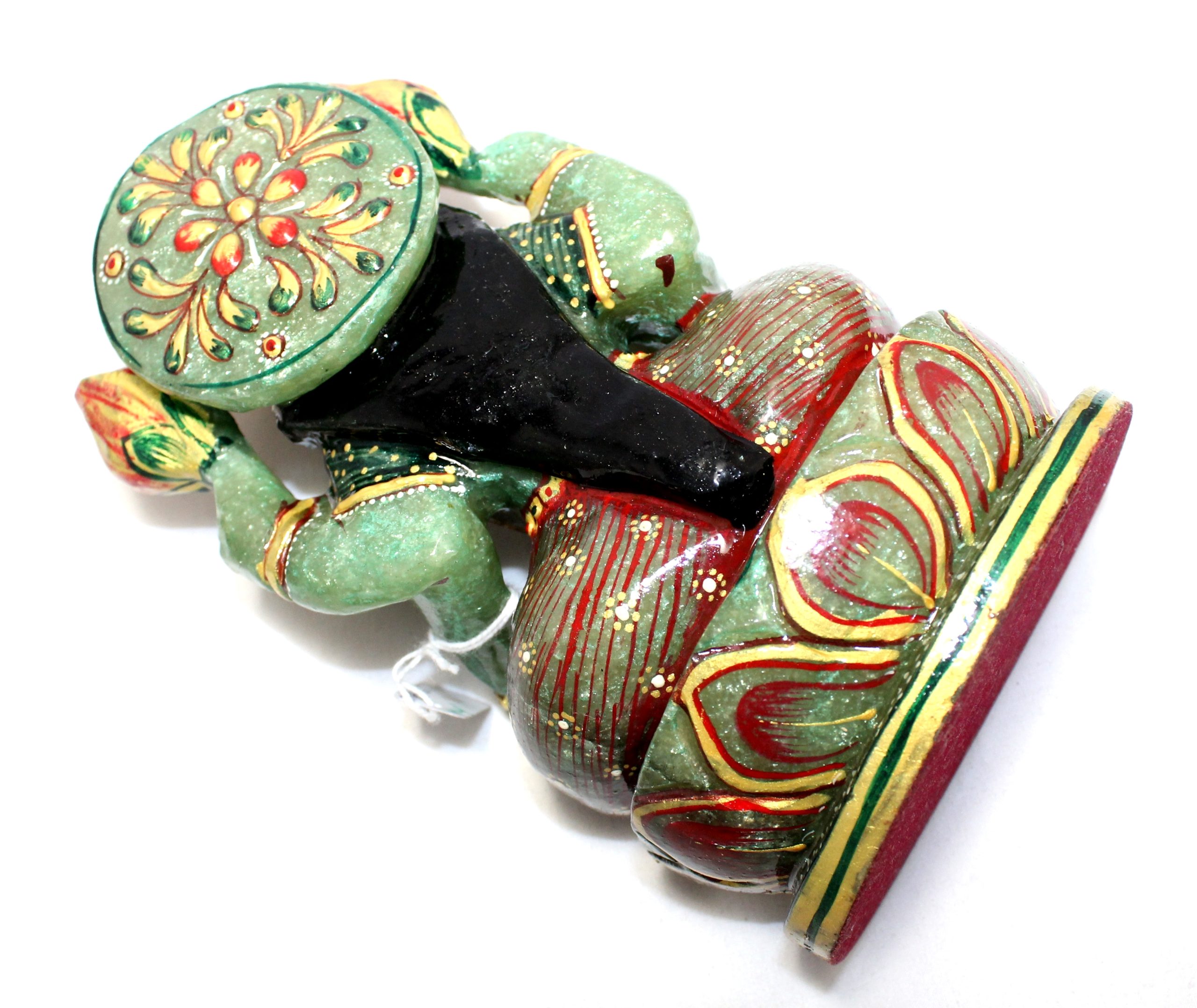 Rajasthan Gems Idol Statue Goddess Laxmi Lakshmi Figurine Figure Natural Green Aventurine Jade Gem Stone Hindu Religious Temple Puja Murti Hand Paint Painted Gemstone Gift Handmade Home Decor G943