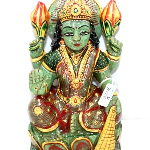 Rajasthan Gems Idol Statue Goddess Laxmi Lakshmi Figurine Figure Natural Green Aventurine Jade Gem Stone Hindu Religious Temple Puja Murti Hand Paint Painted Gemstone Gift Handmade Home Decor G943