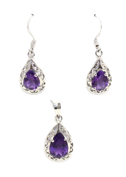 Rajasthan Gems Jewellery Set Pendant Earrings 925 Sterling Silver Natural Amethyst Gem Stone Women Handmade Gift Earring H465