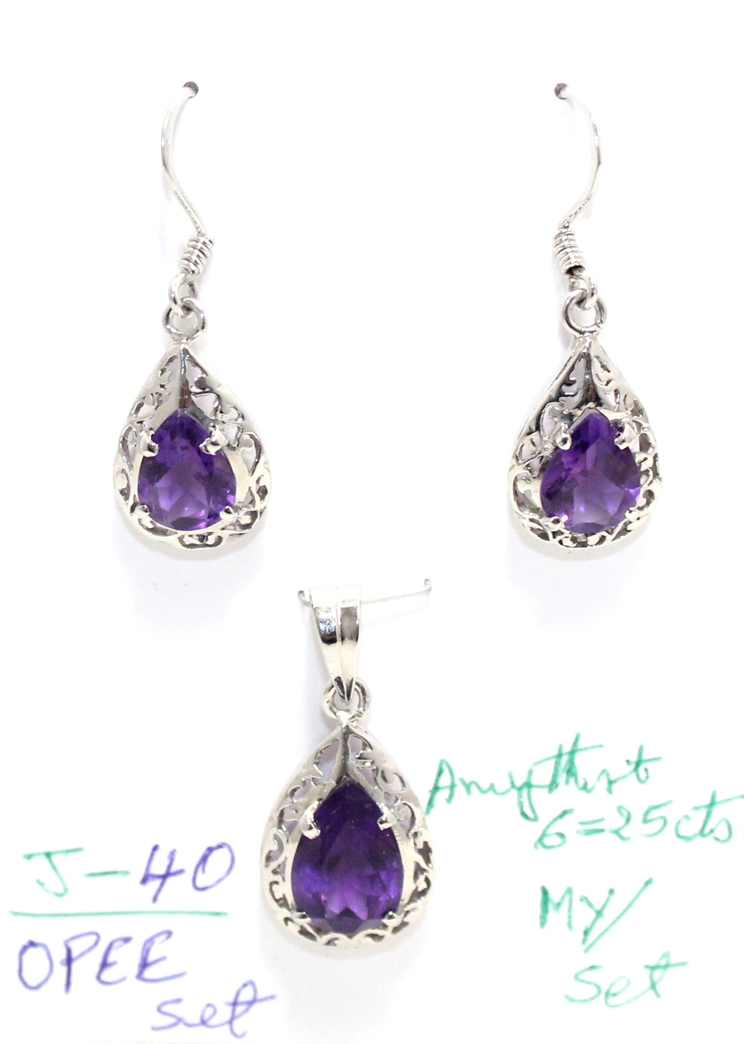 Rajasthan Gems Jewellery Set Pendant Earrings 925 Sterling Silver Natural Amethyst Gem Stone Women Handmade Gift Earring H465