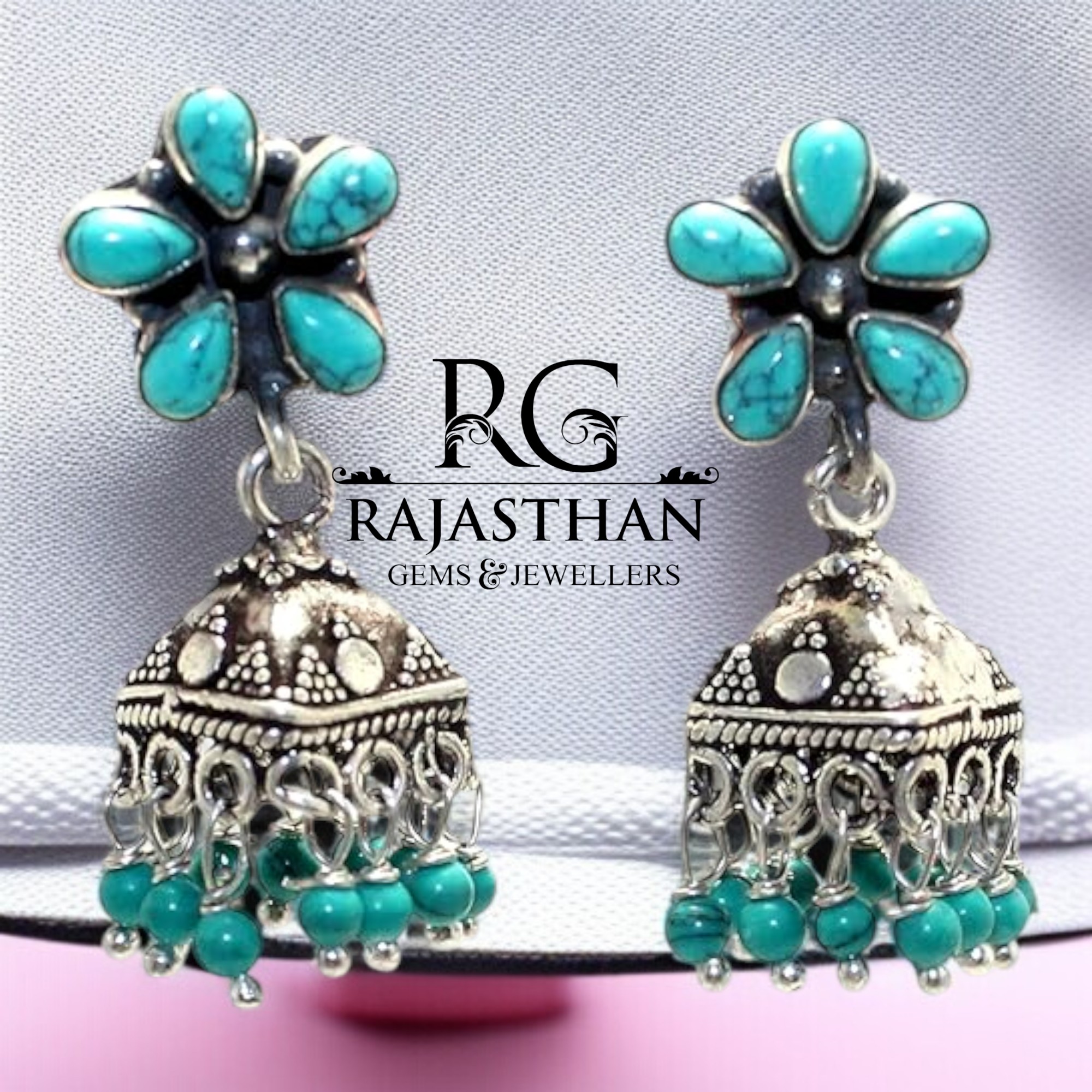 Home » Shop » Rajasthan Gems Jhumki Jhumka Earrings 925 Sterling Silver Traditional Tribal Natural Pearl Gemstone Stone Handmade Gift Women i306