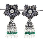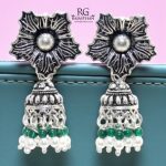 Rajasthan Gems Jhumki Jhumka Earrings Silver 925 Sterling Traditional Tribal Natural Onyx & Pearl Gemstone Stone Handmade Gift Women G872