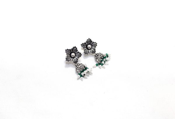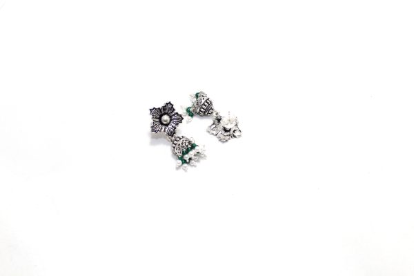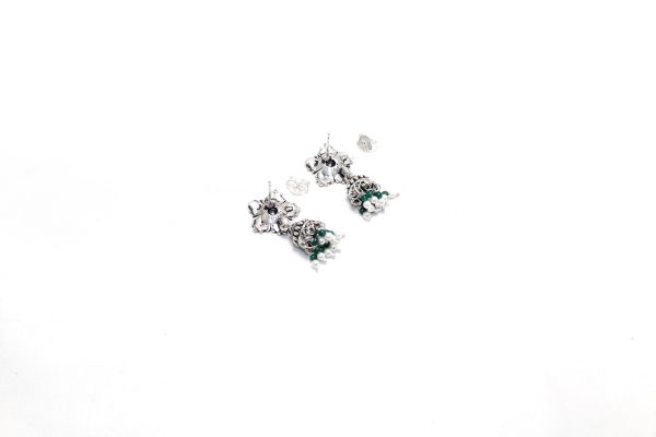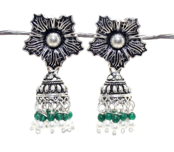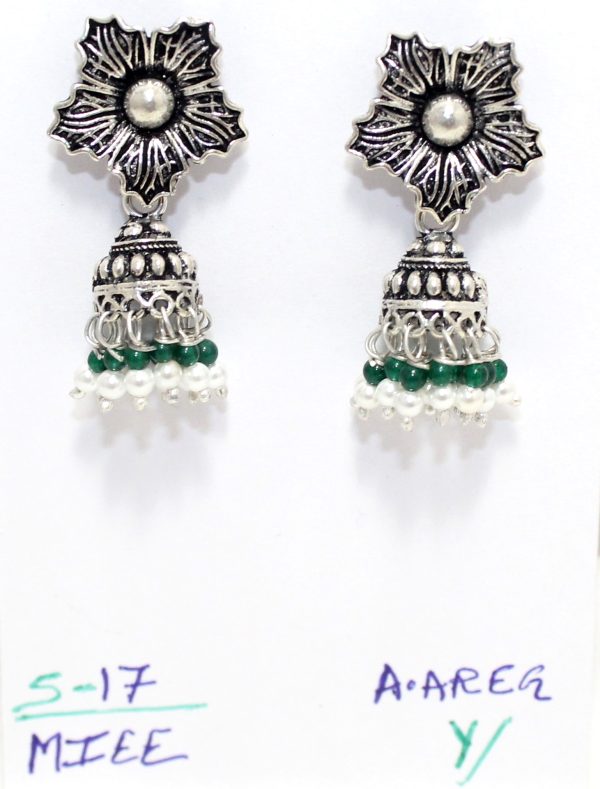 Rajasthan Gems Jhumki Jhumka Earrings Silver 925 Sterling Traditional Tribal Natural Onyx & Pearl Gemstone Stone Handmade Gift Women G872