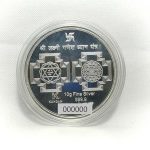 Rajasthan Gems Kundan Silver Fine 999.9 Coin 10 Gram Ganesha Ganesh Laxmi Lakshmi Dhyan Yantra