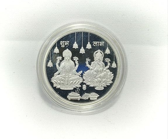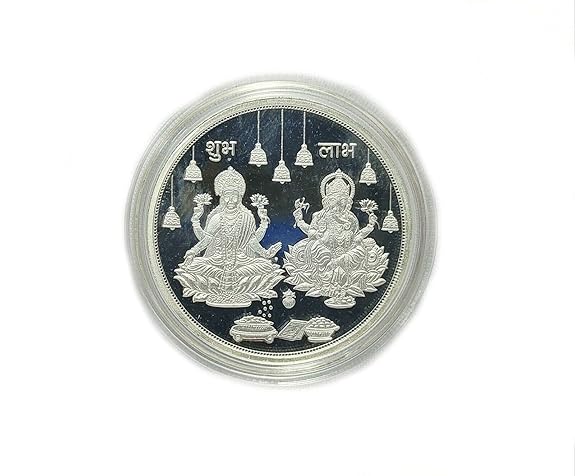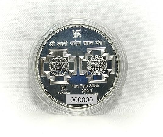 Rajasthan Gems Kundan Silver Fine 999.9 Coin 10 Gram Ganesha Ganesh Laxmi Lakshmi Dhyan Yantra