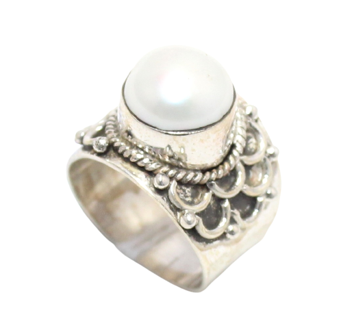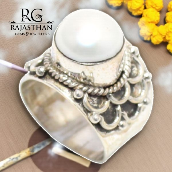 Rajasthan Gems Mens Ring Solid 925 Sterling Silver Men Freshwater Pearl Gem Stone Gemstone Stones Handmade Gift G895