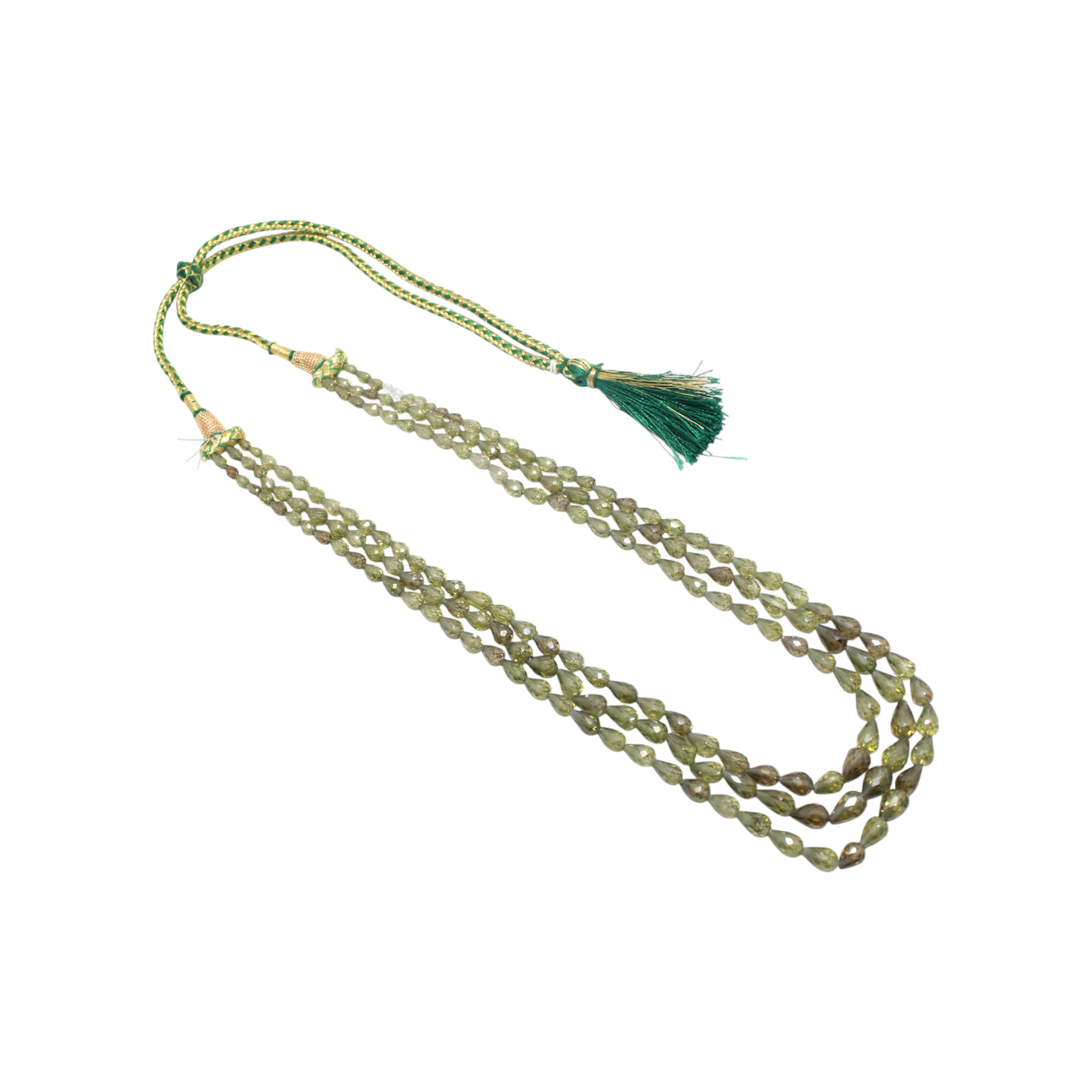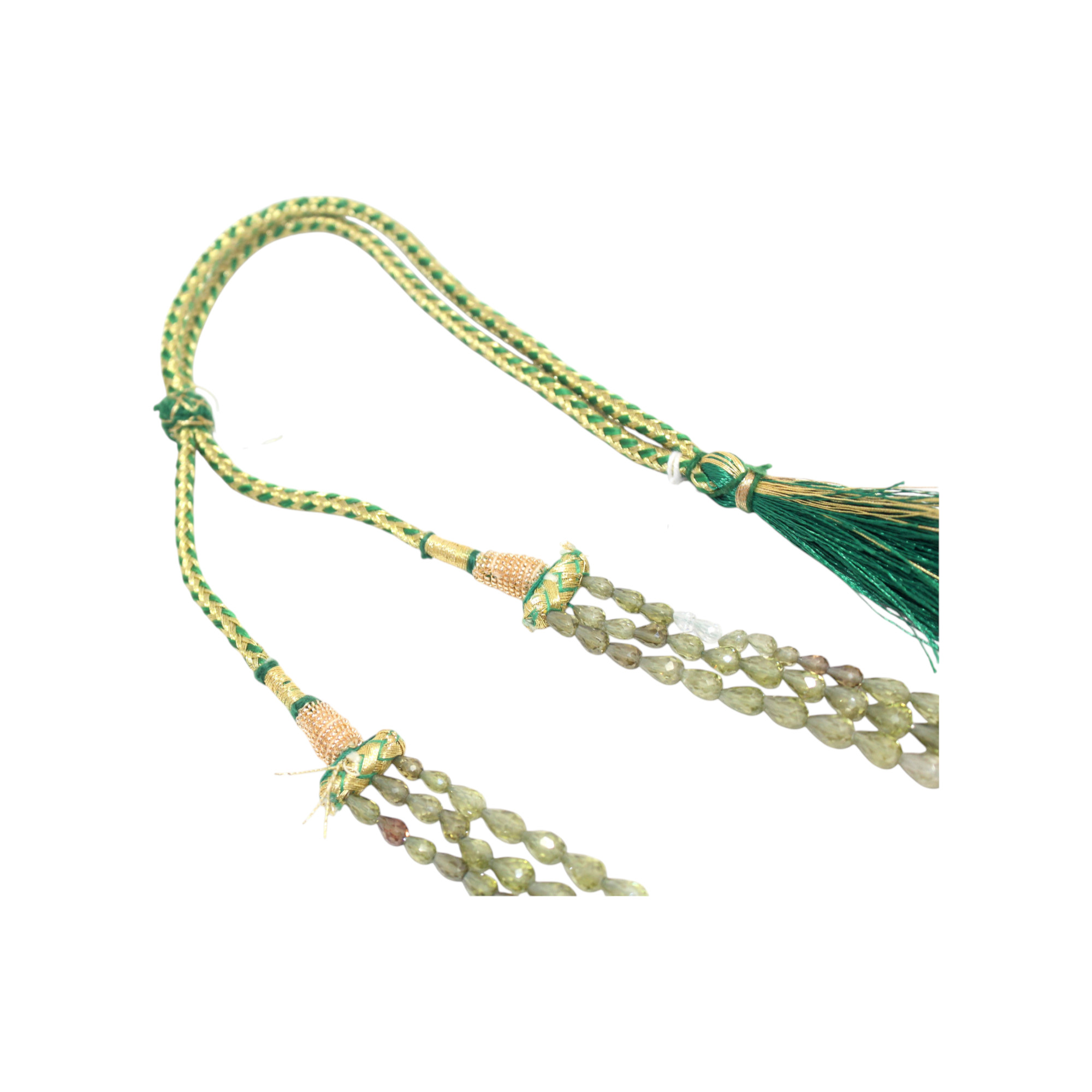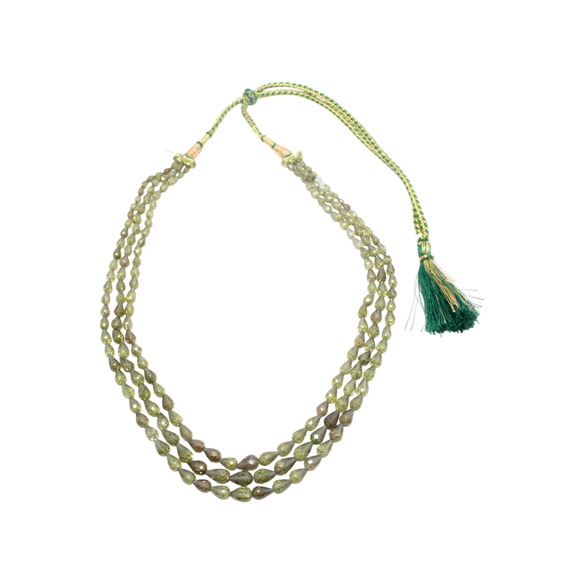 Rajasthan Gems Necklace 3 Line Strand String Beaded Mala Green Briolette Cubic Zirconia Stone Hand Strung F718