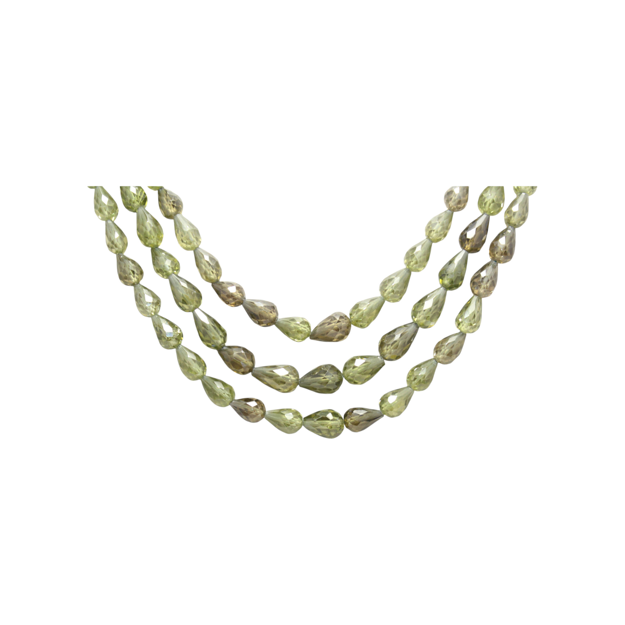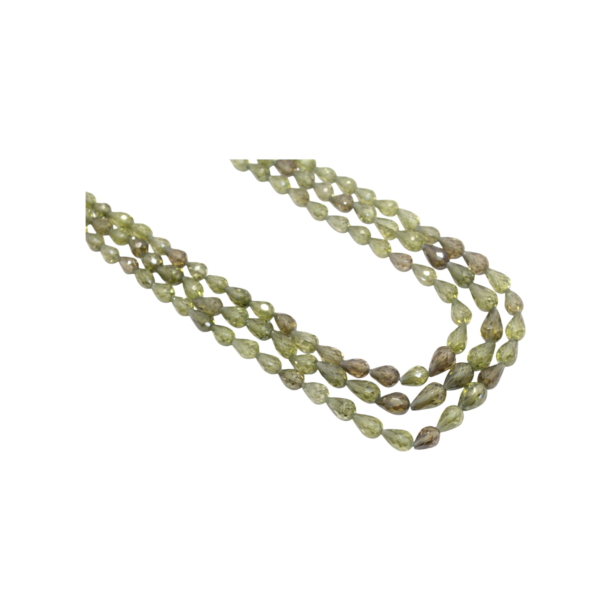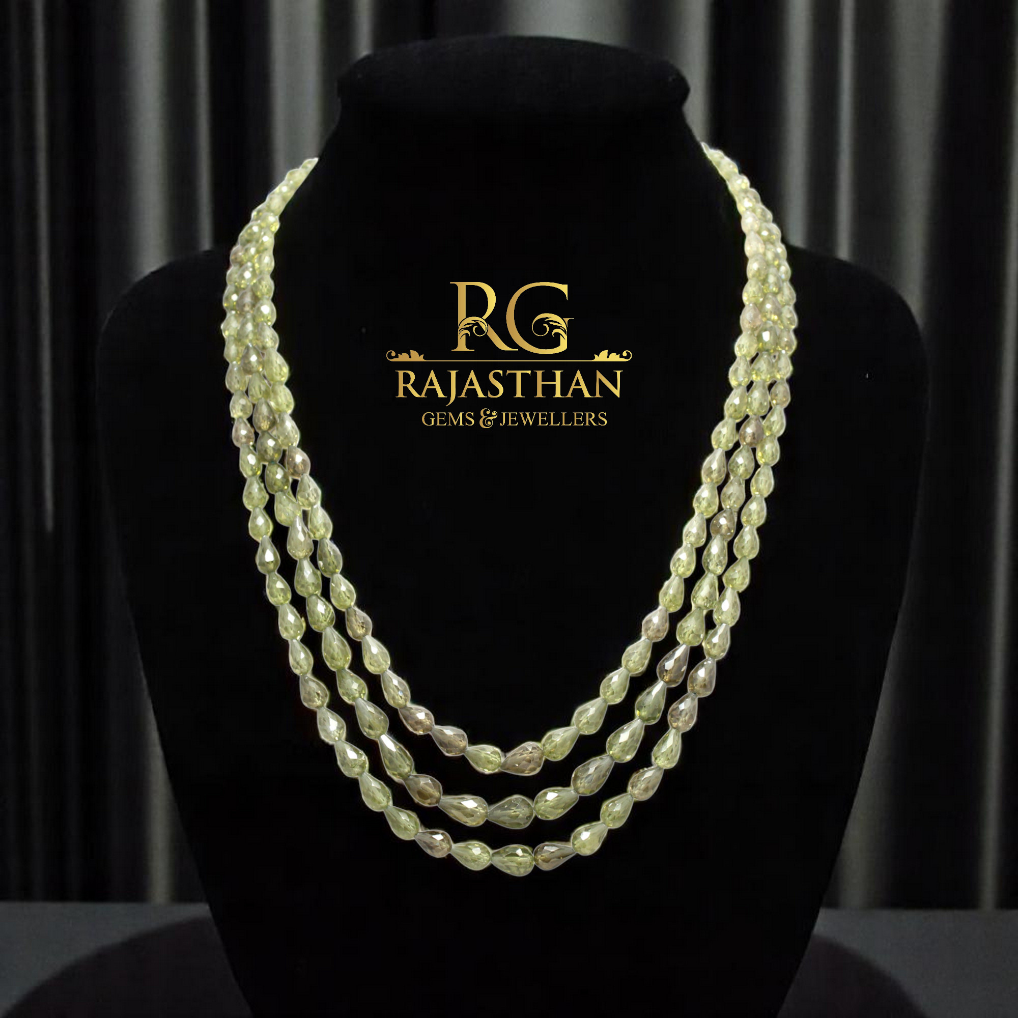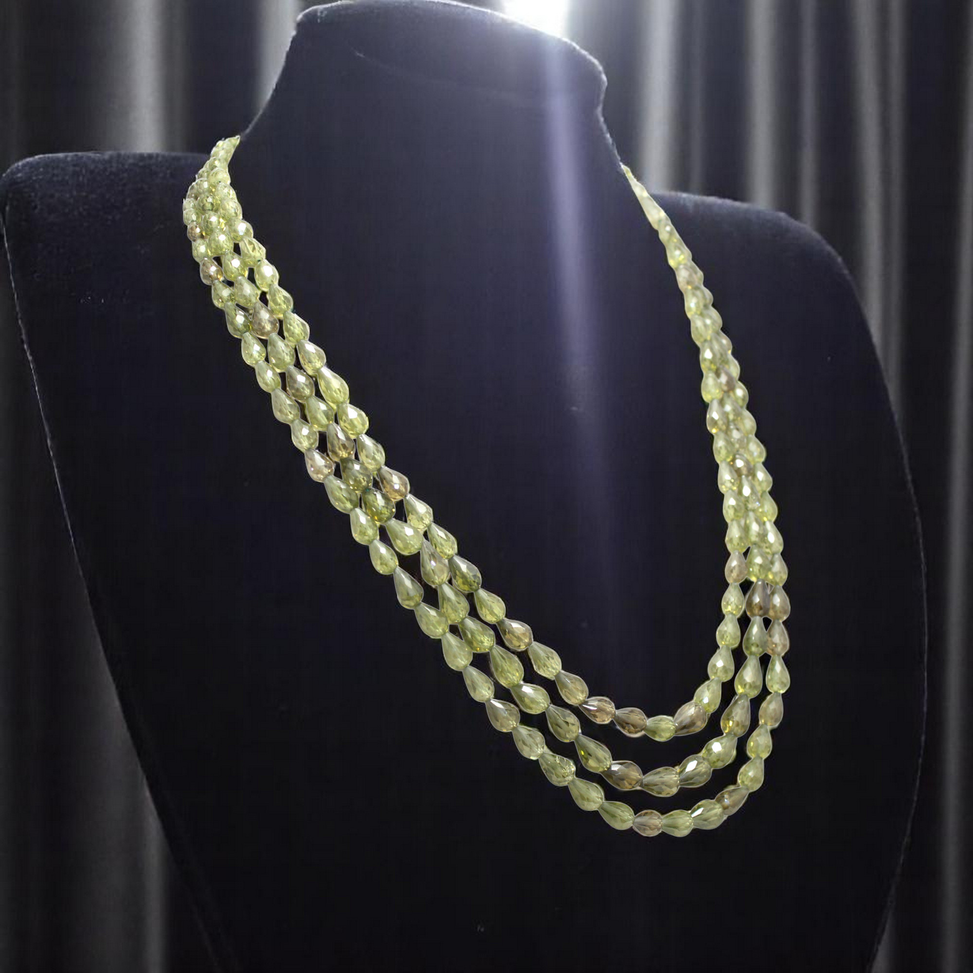Rajasthan Gems Necklace 3 Line Strand String Beaded Mala Green Briolette Cubic Zirconia Stone Hand Strung F718