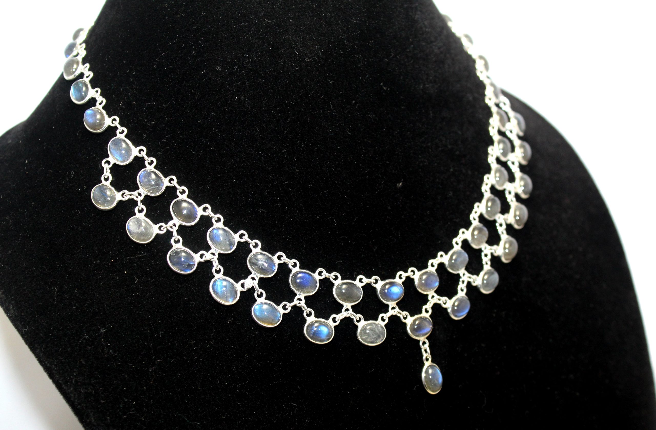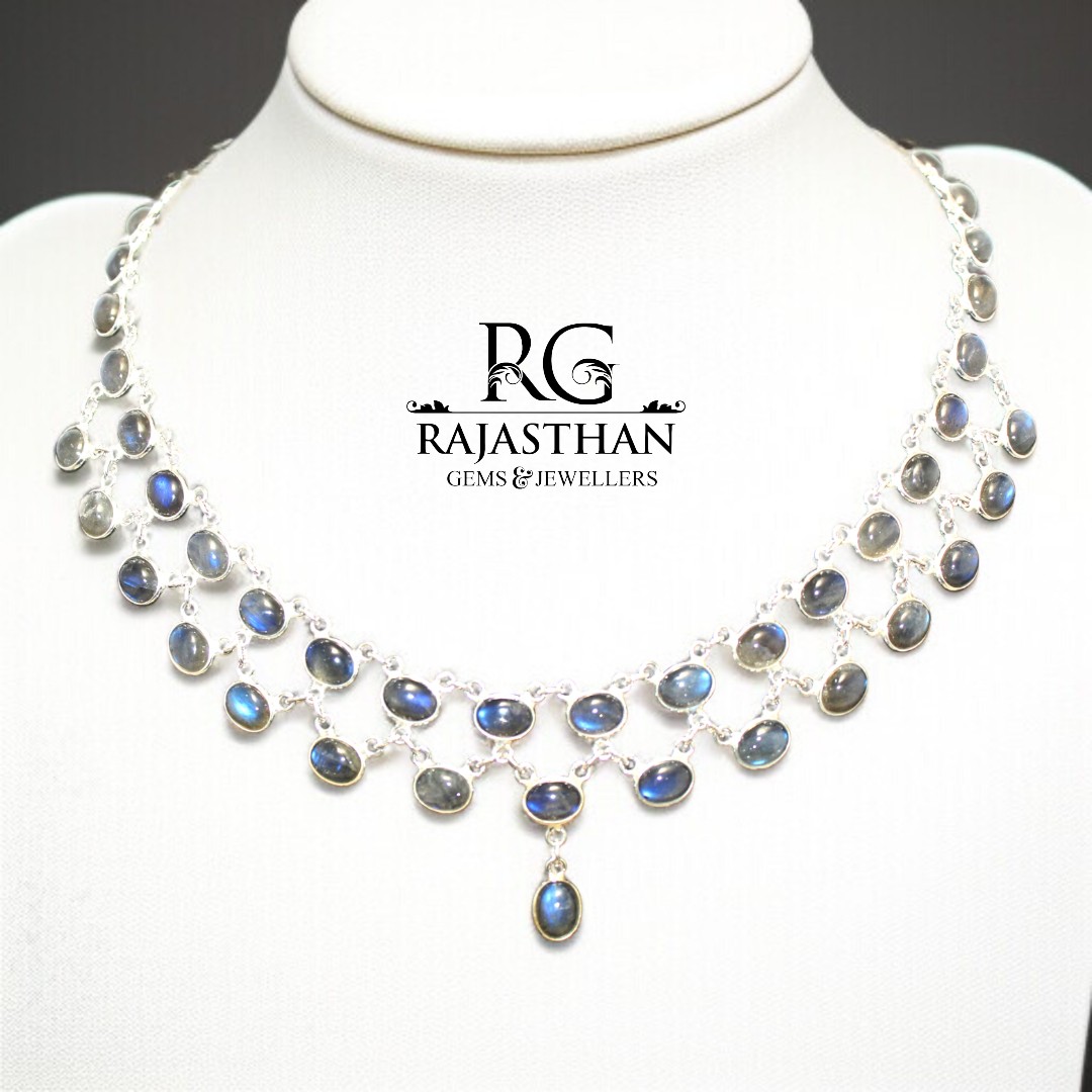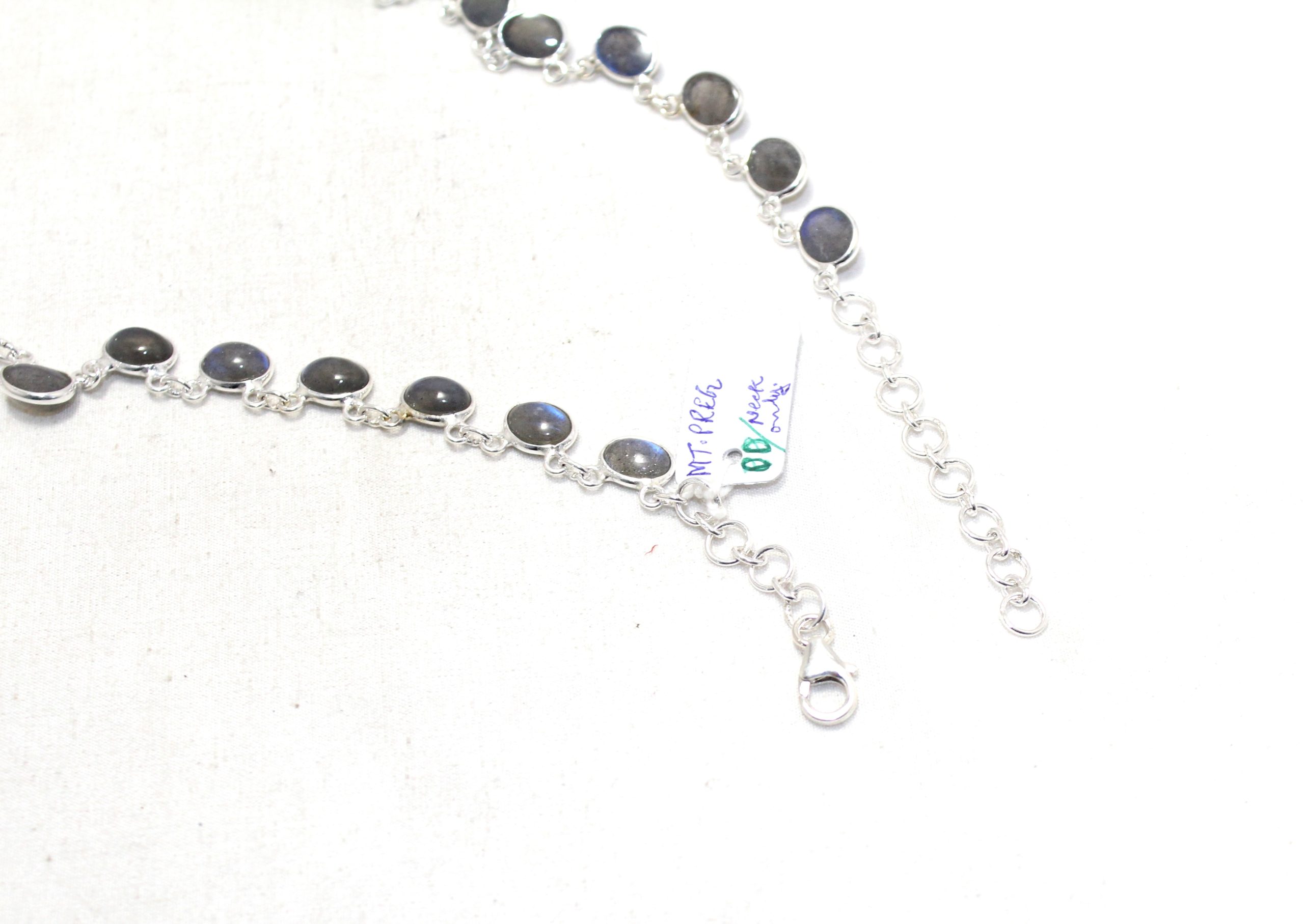 Rajasthan Gems Necklace 925 Sterling Silver Natural Labradorite Gem Stone Women Gift Handmade H379