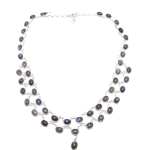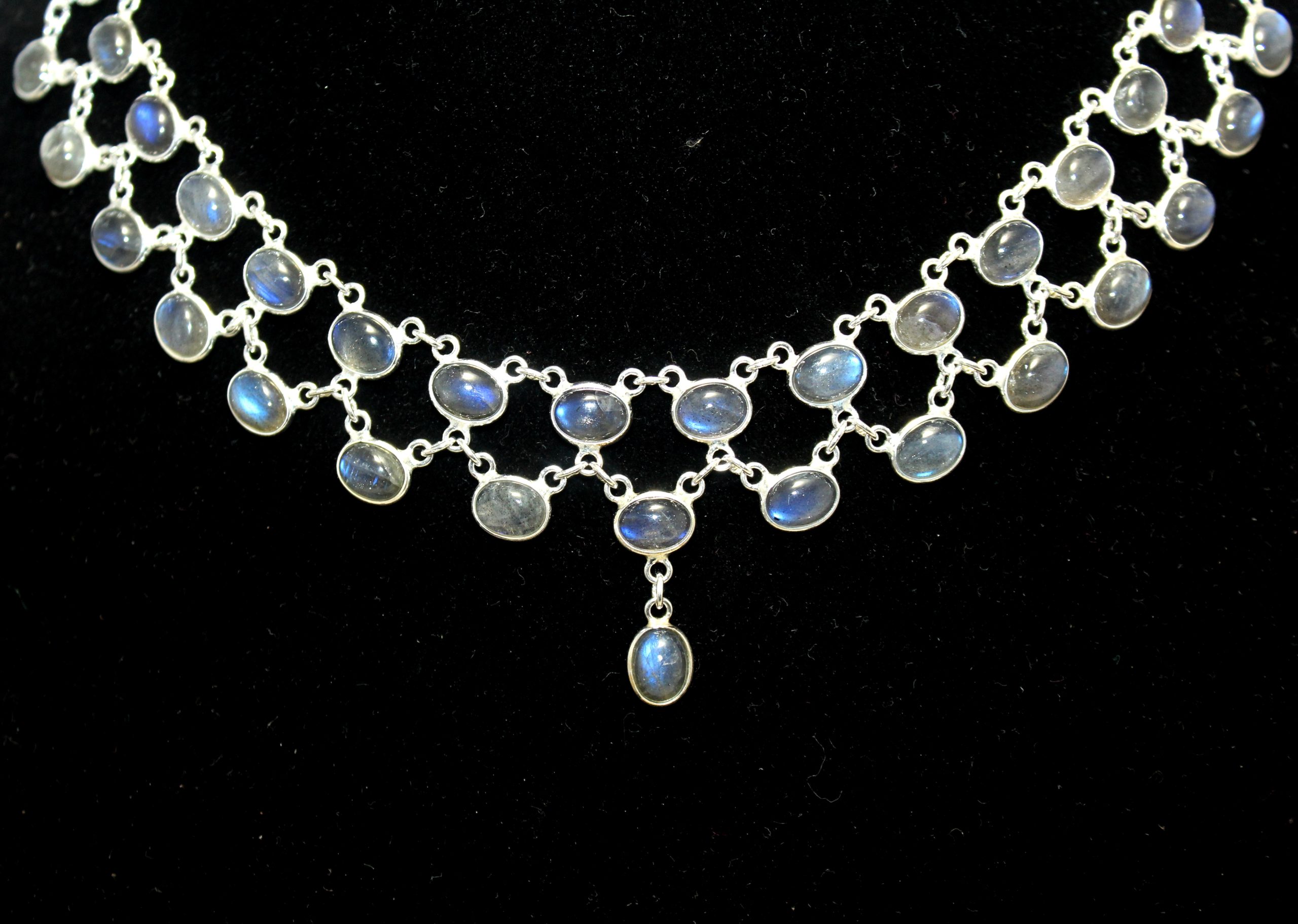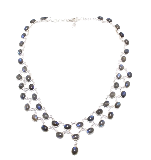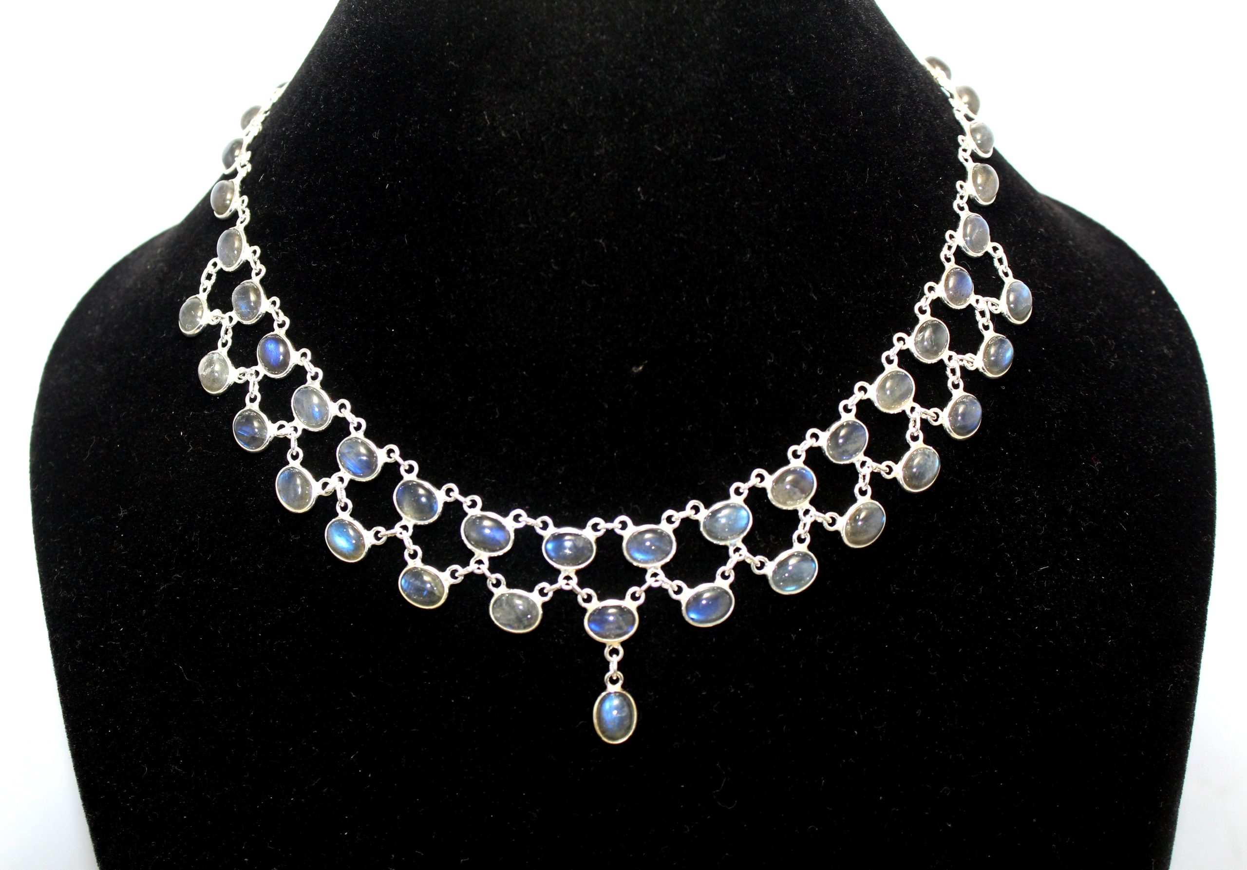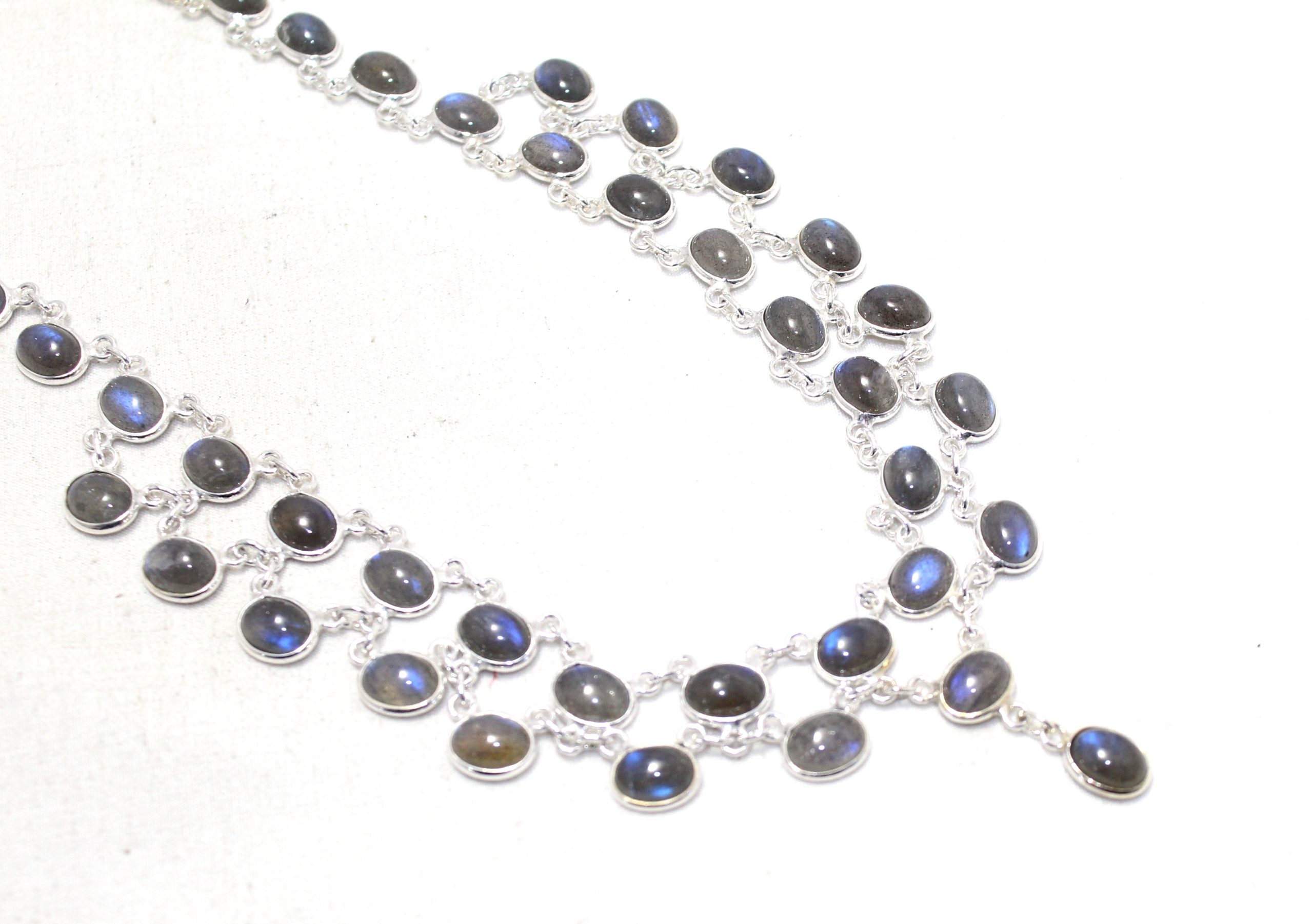 Rajasthan Gems Necklace 925 Sterling Silver Natural Labradorite Gem Stone Women Gift Handmade H379