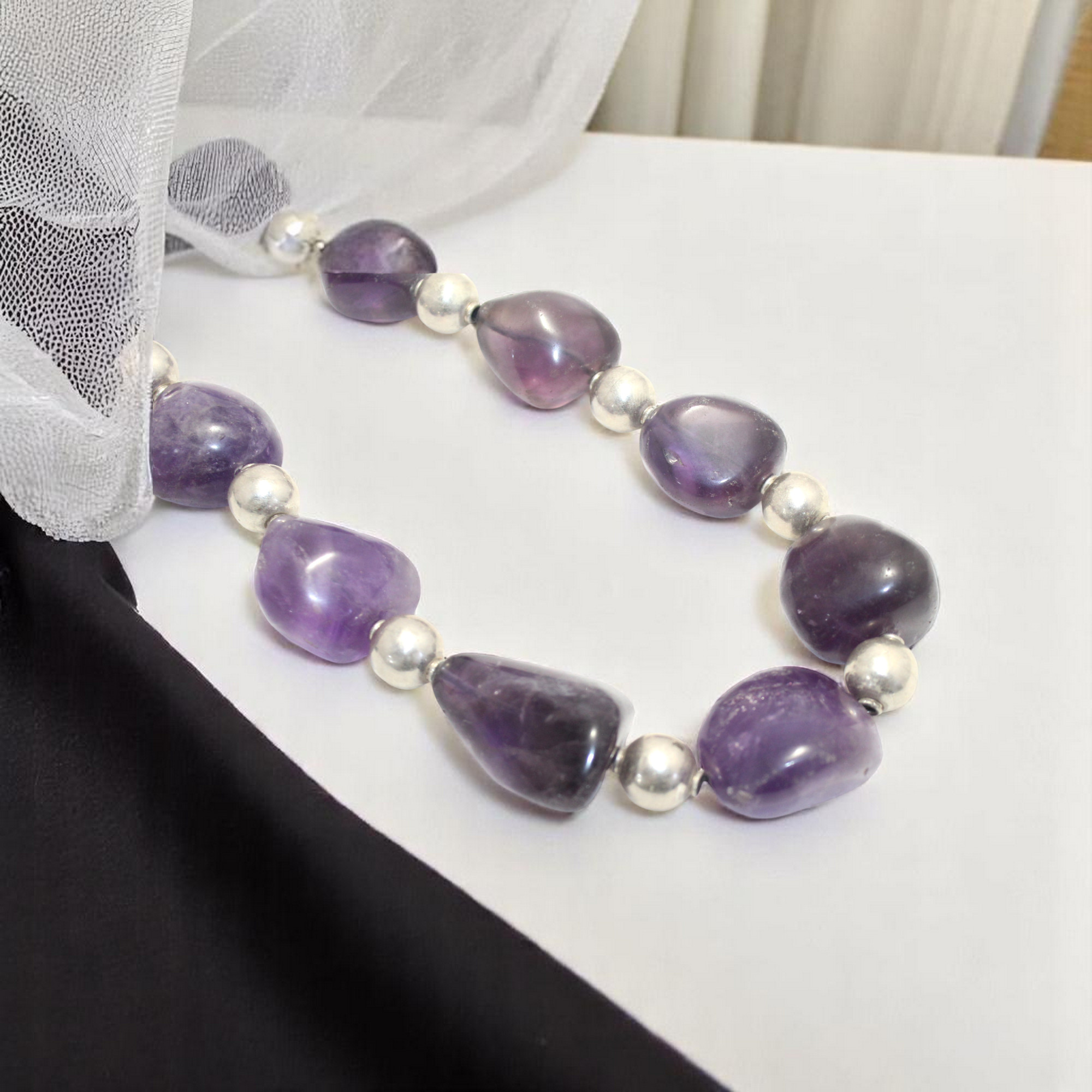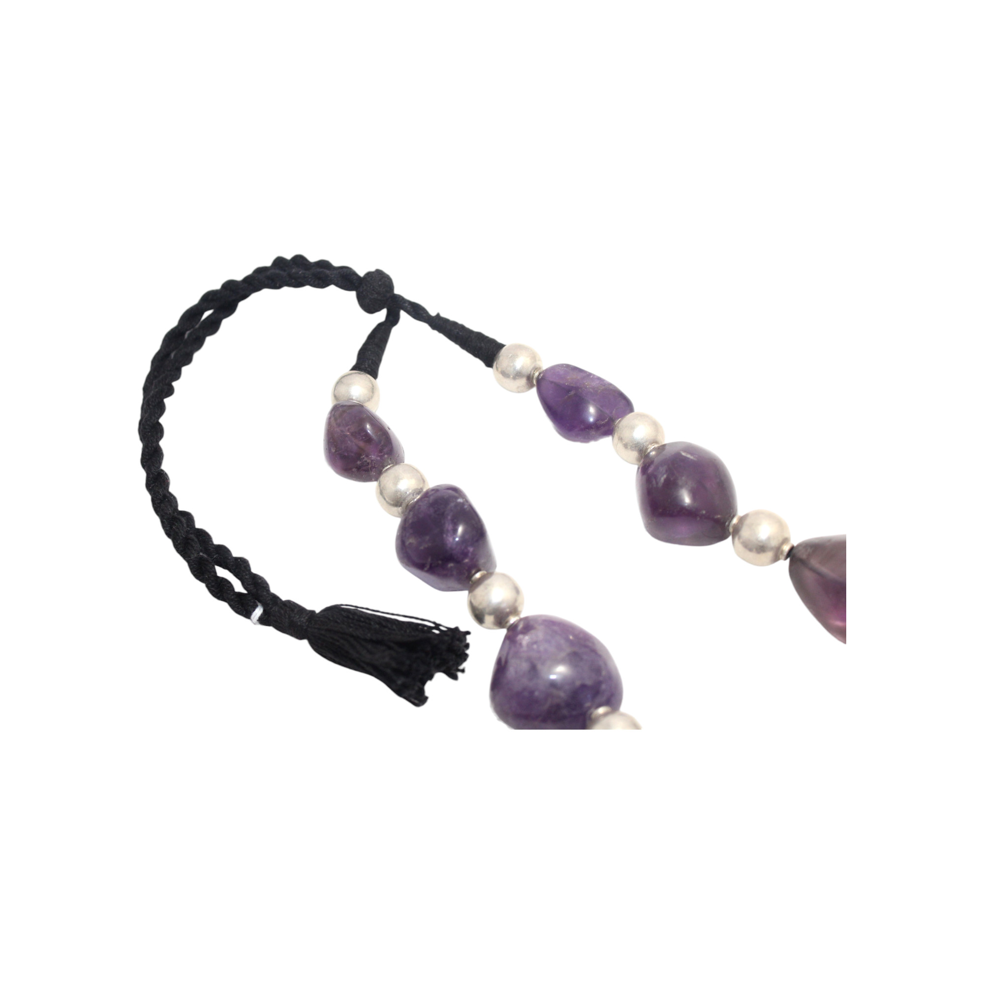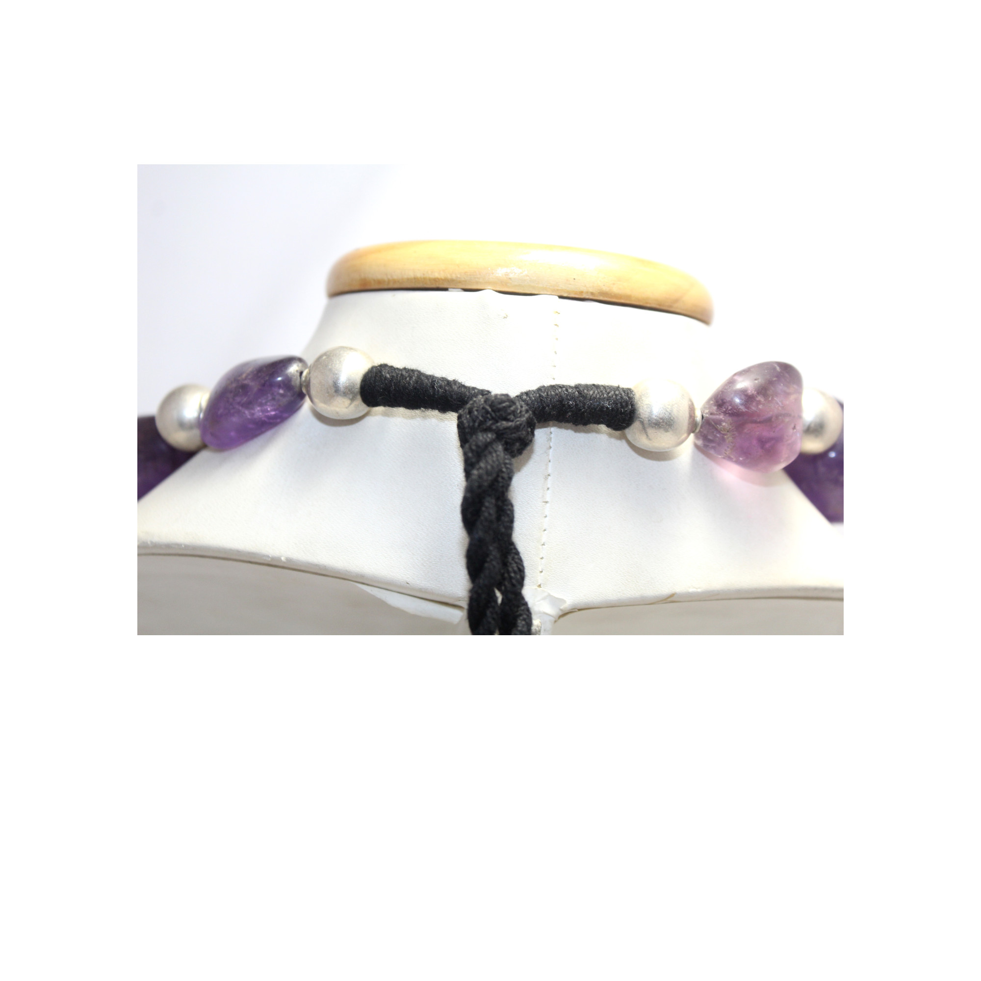 Rajasthan Gems Necklace 925 Sterling Silver Solid Beads Strand String Single Line Natural Amethyst Gem Stone Tumble Bead Women Gift Adjustable Black Thread F572