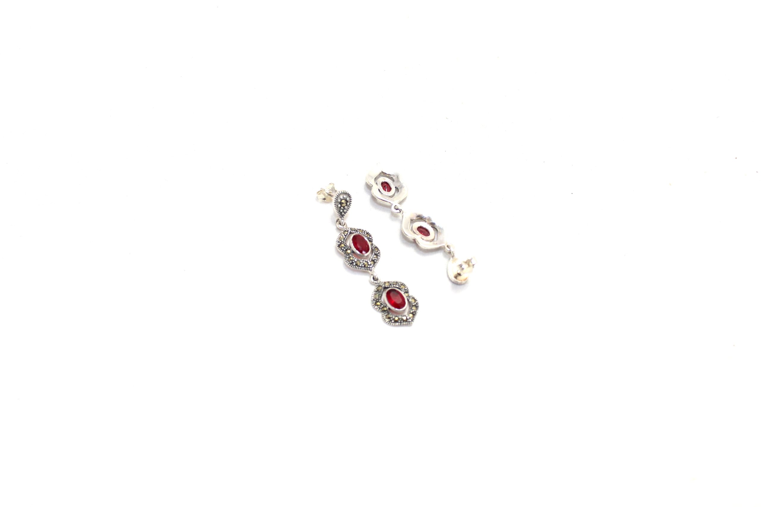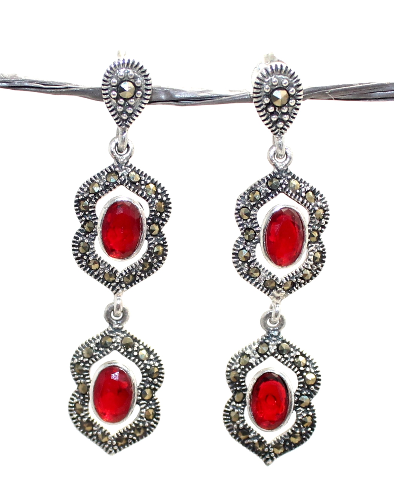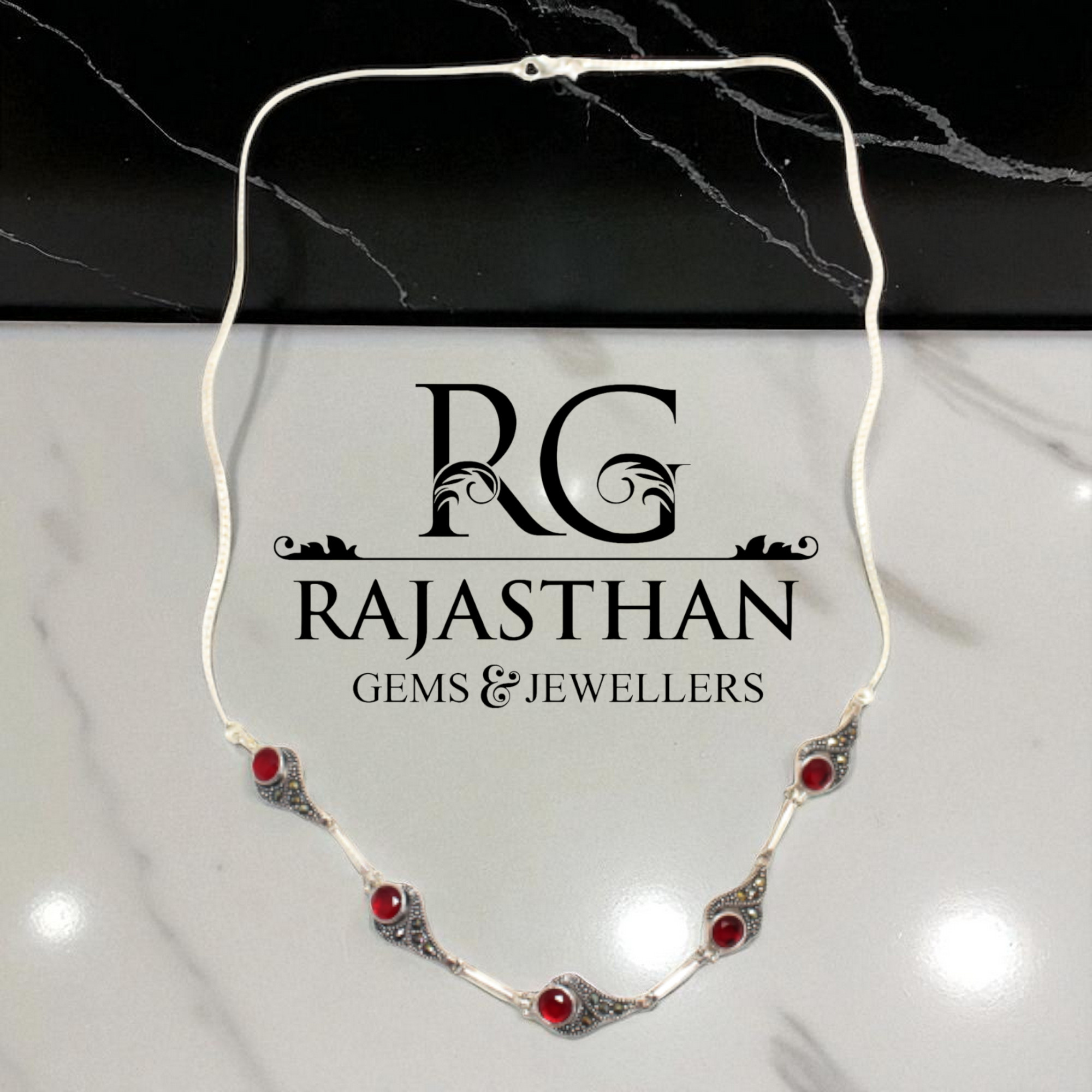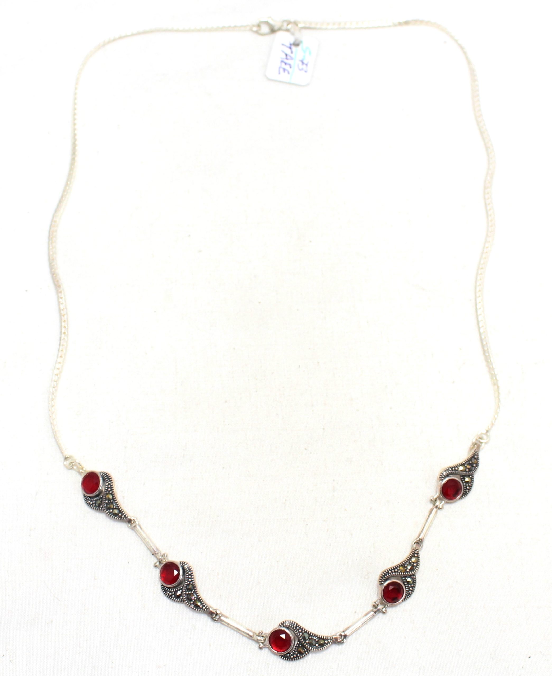 Rajasthan Gems Necklace Earrings Jewelry Set 925 Sterling Silver Designer Marcasite & Red Onyx Gem Stone Handmade Women Gift G515