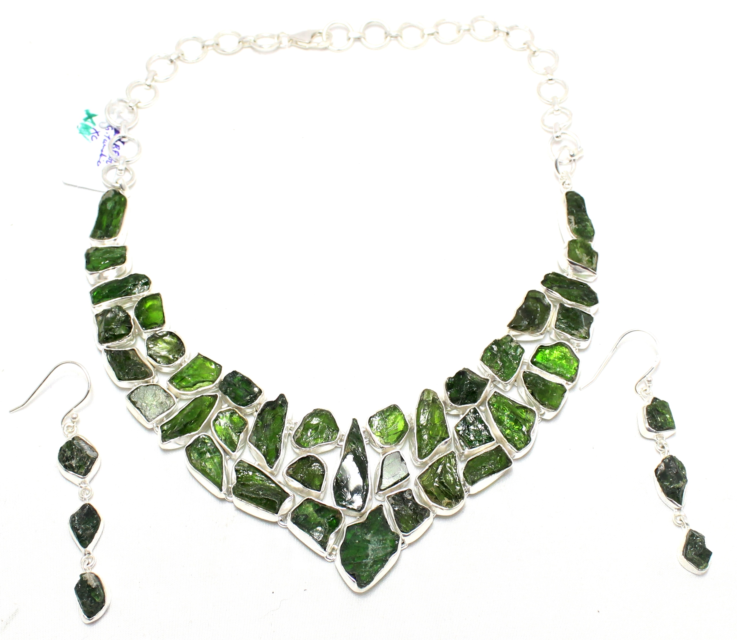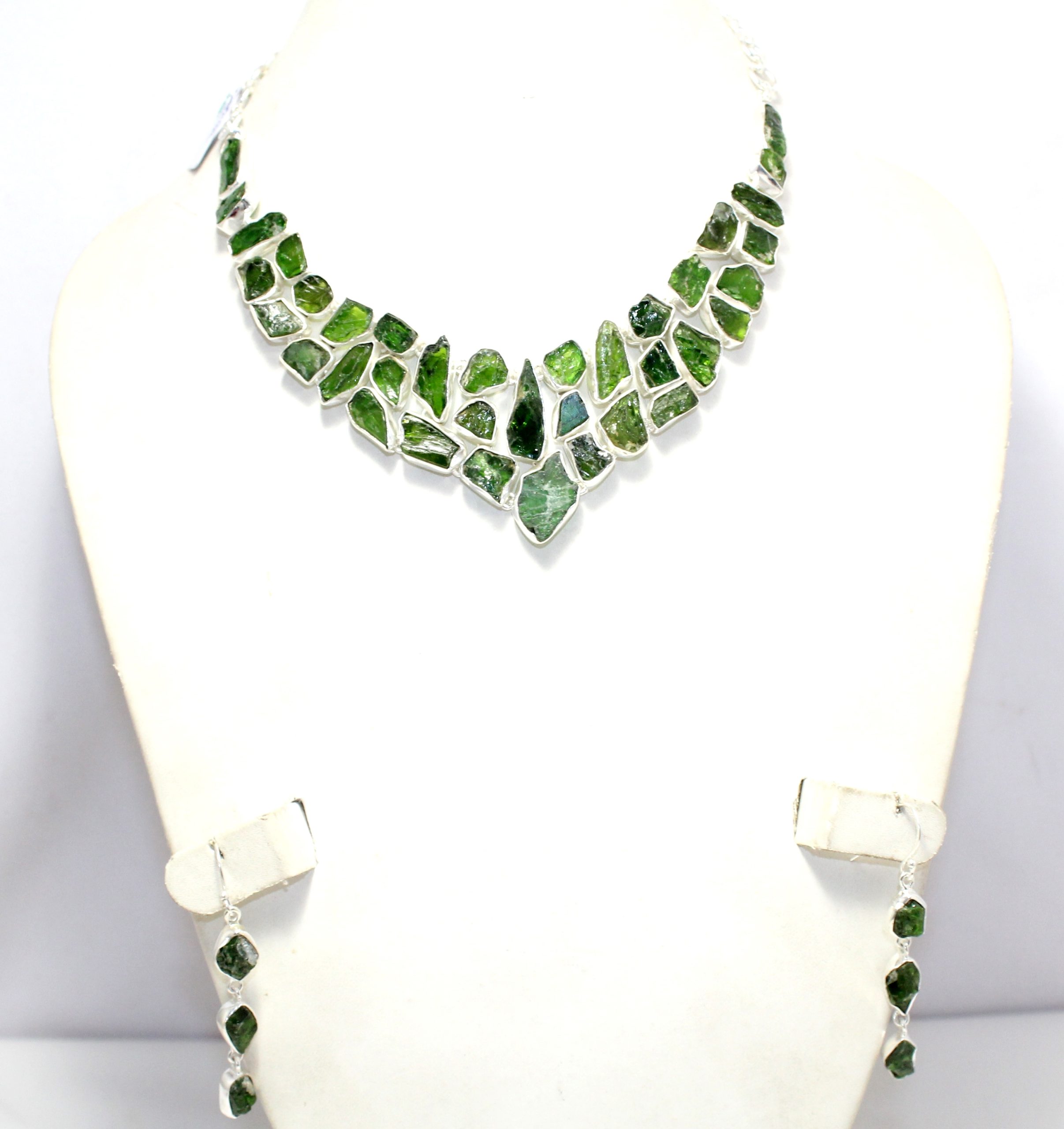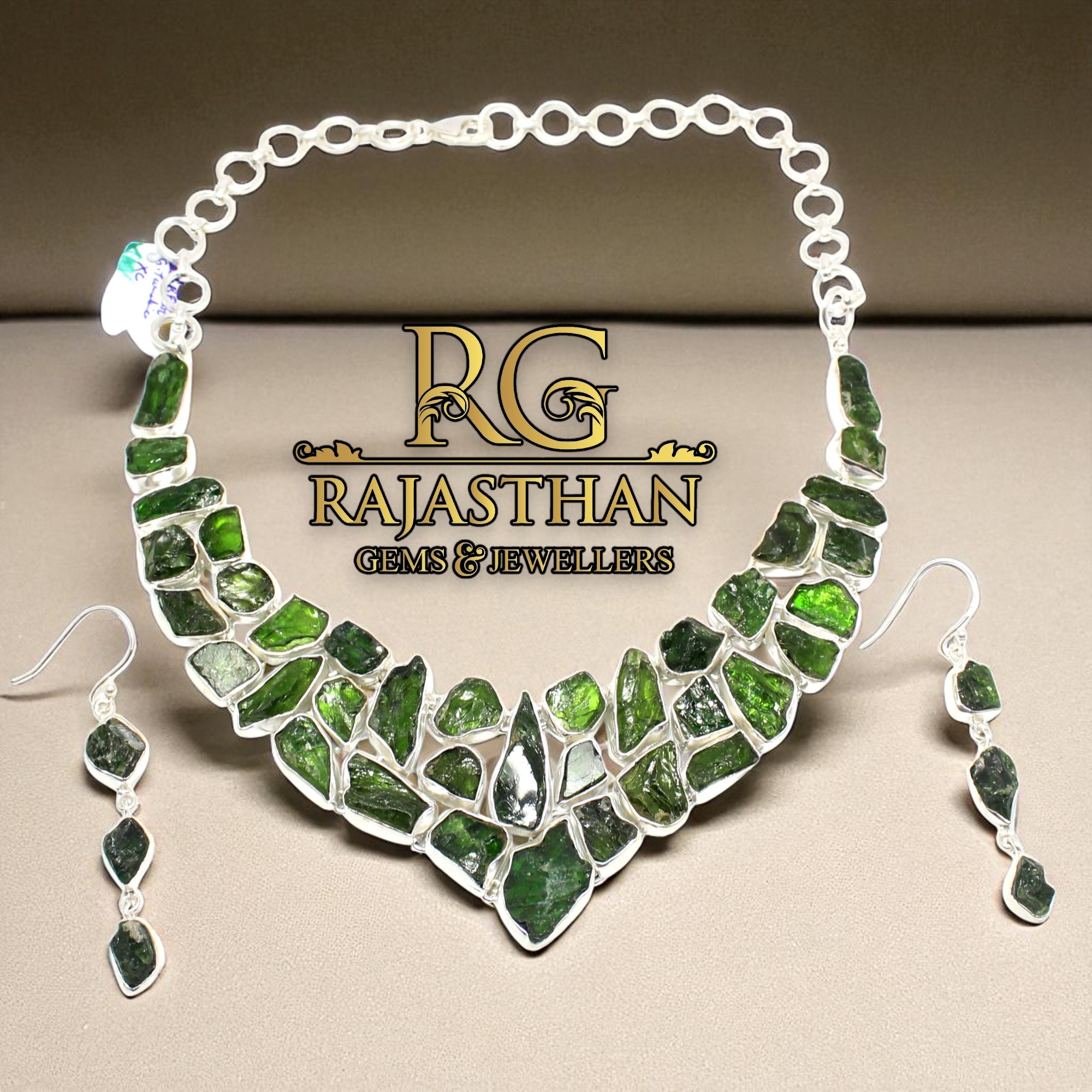 Rajasthan Gems Necklace Earrings Jewelry Set 925 Sterling Silver Natural Tourmaline Gem Stone Handmade Gift Women G741