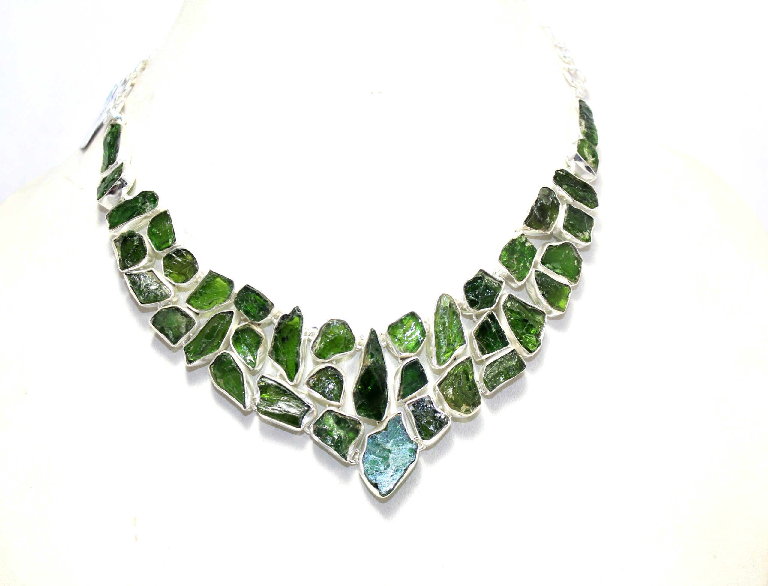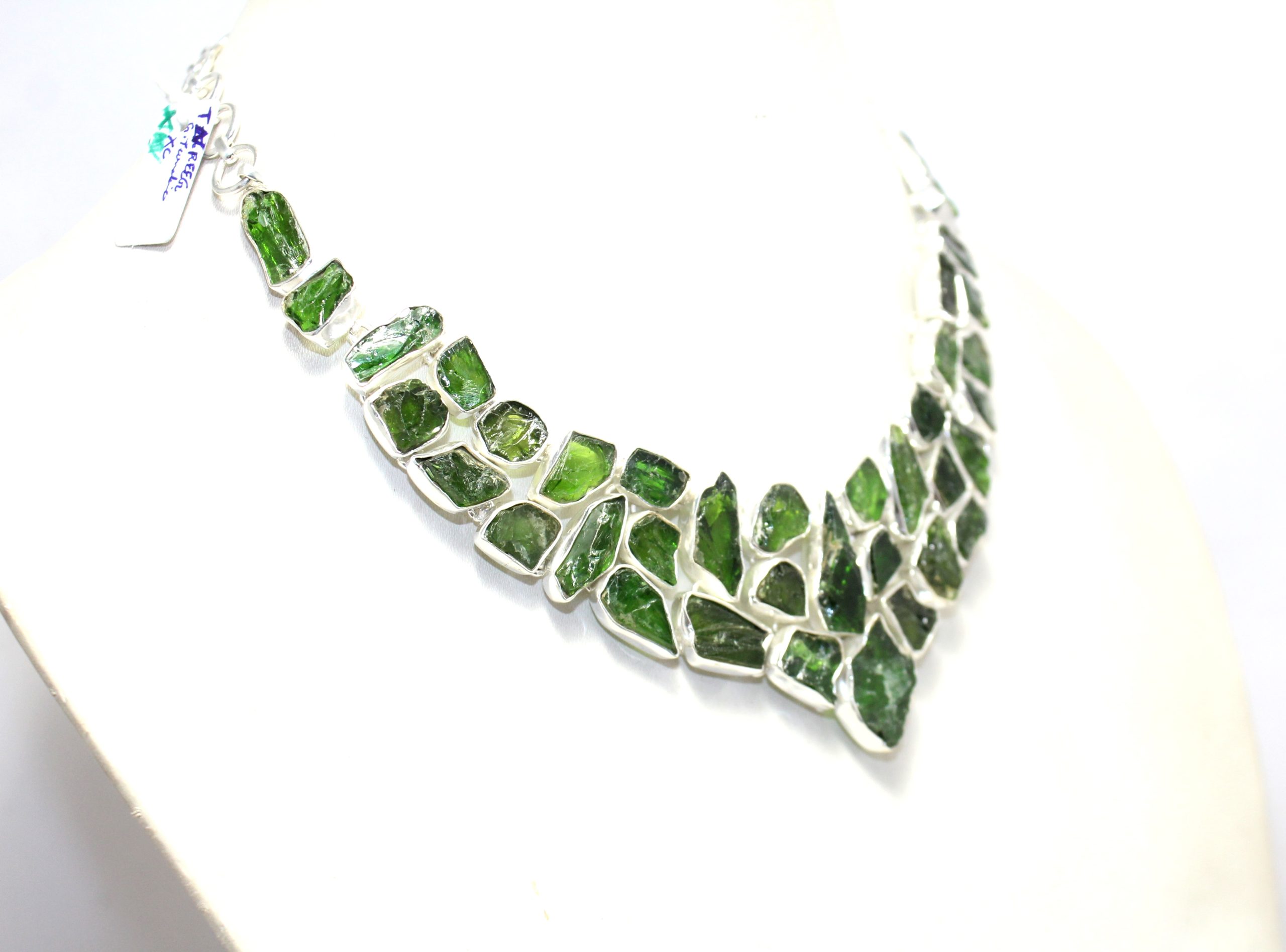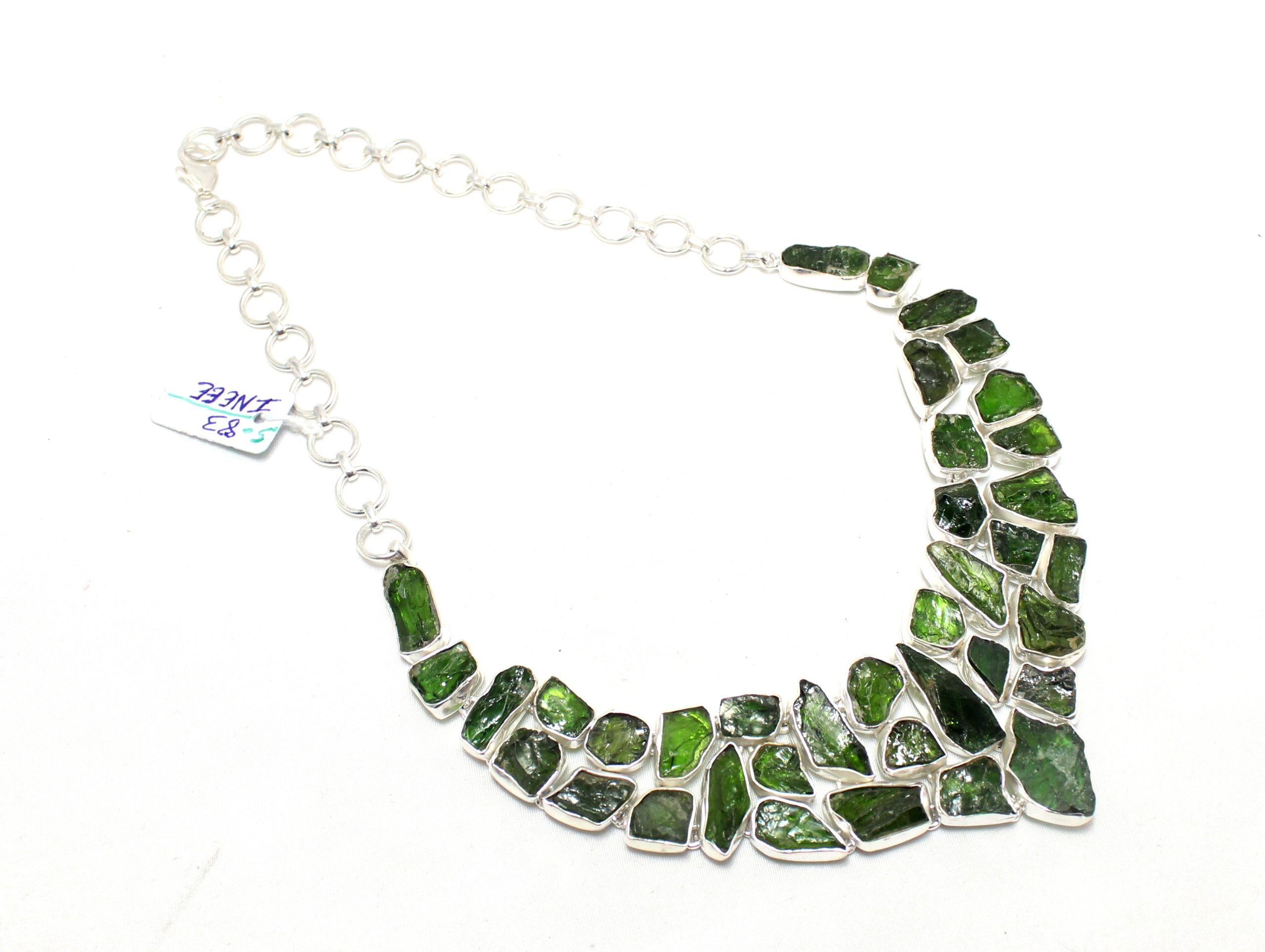 Rajasthan Gems Necklace Earrings Jewelry Set 925 Sterling Silver Natural Tourmaline Gem Stone Handmade Gift Women G741
