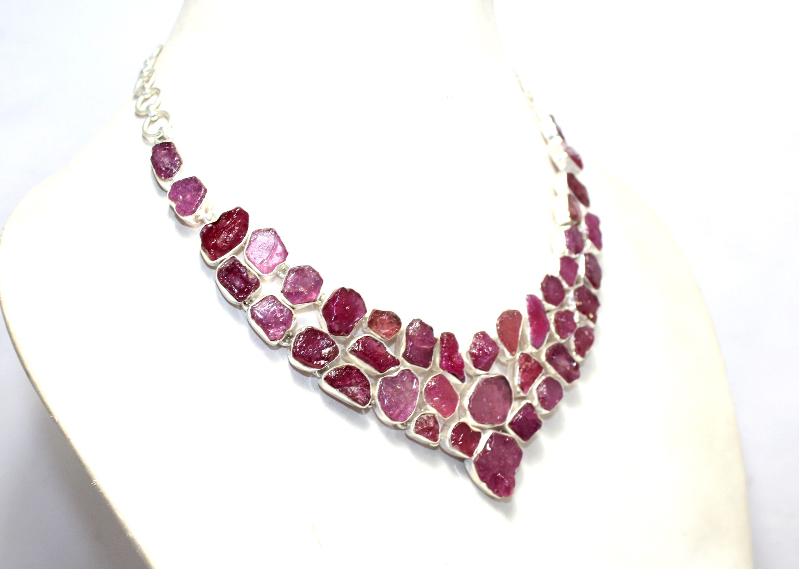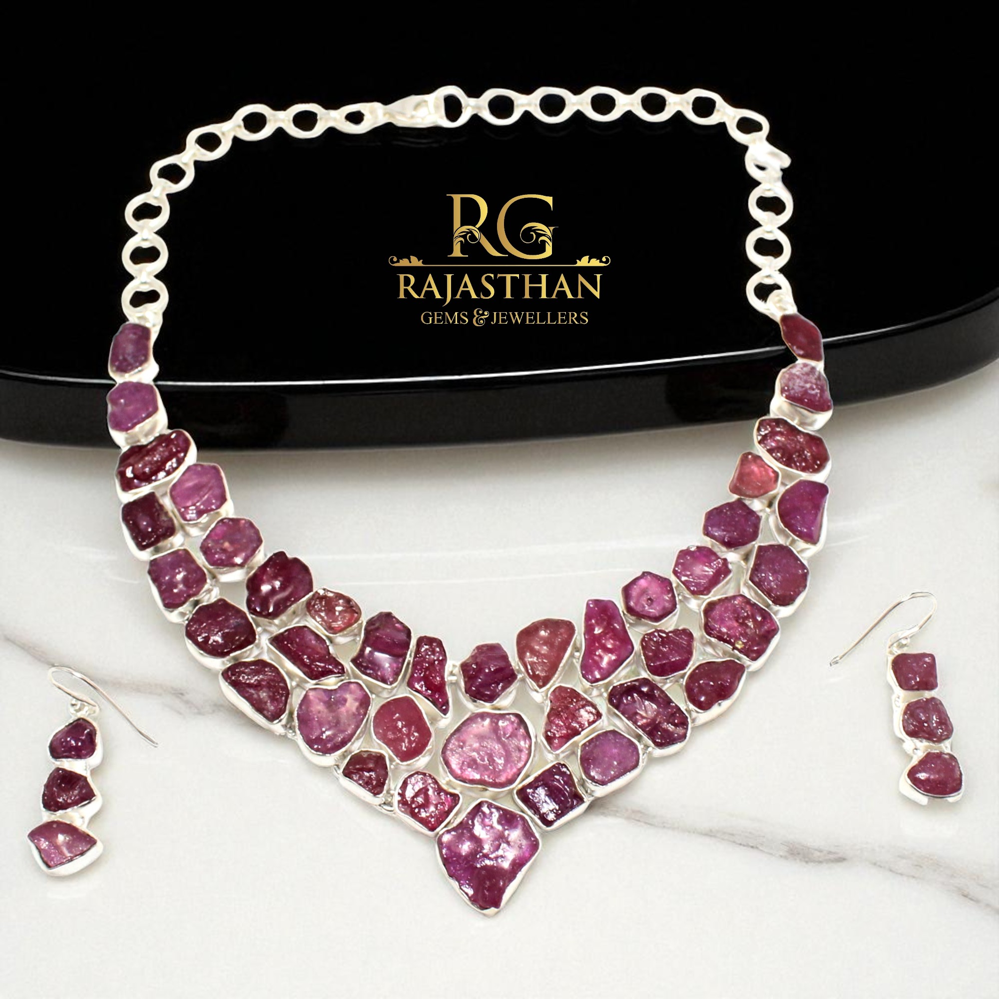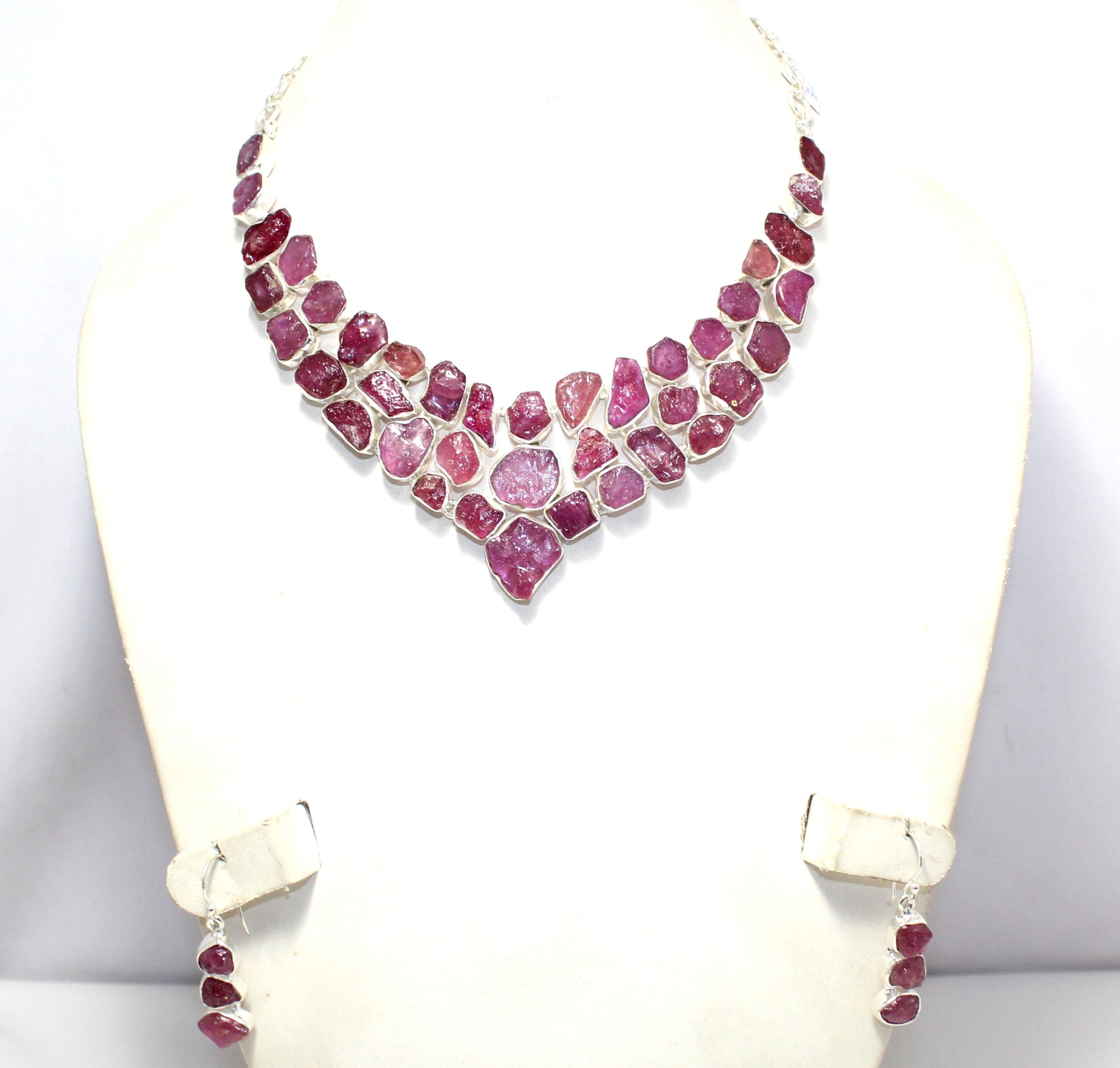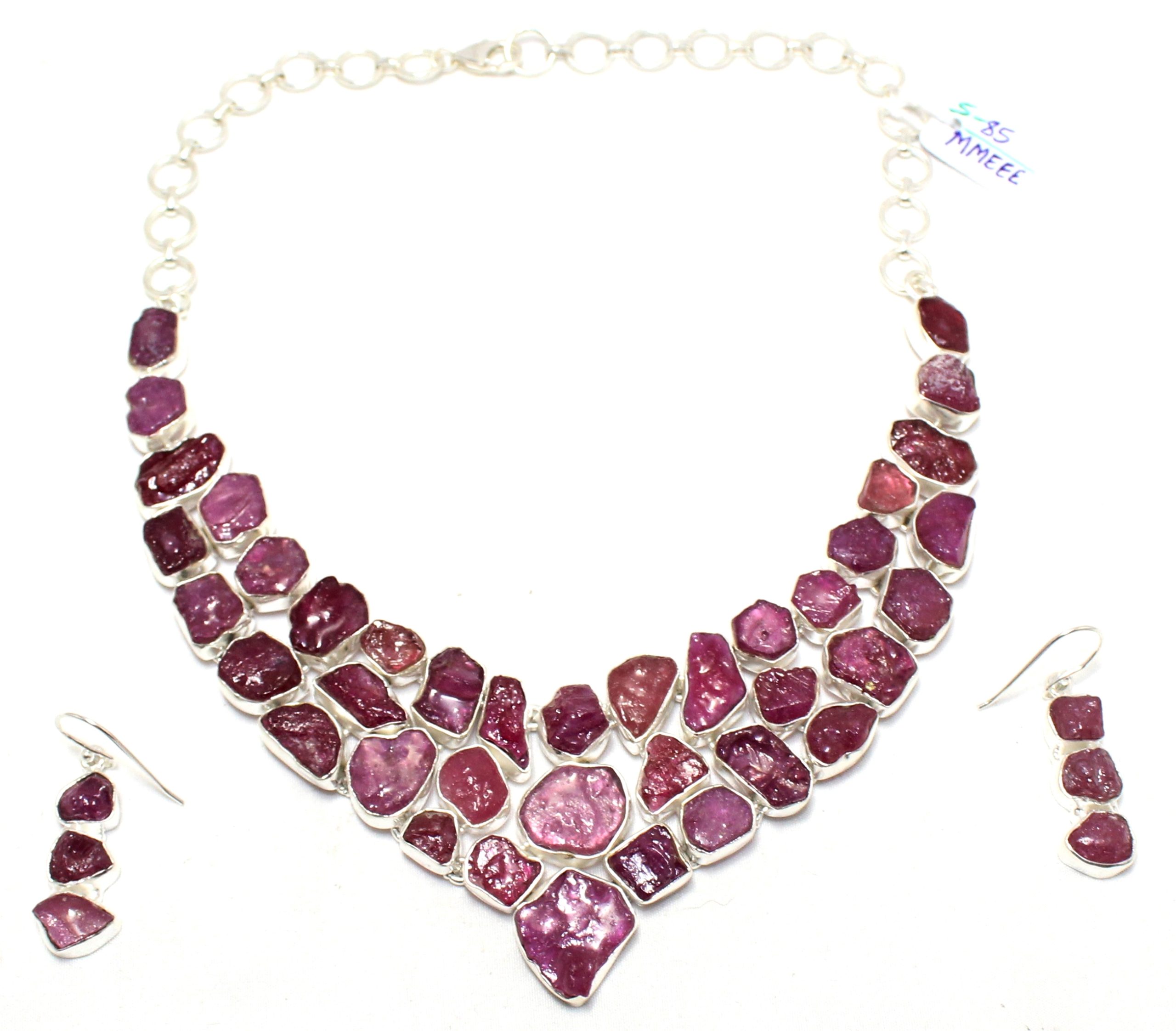 Rajasthan Gems Necklace Earrings Jewelry Set 925 Sterling Silver Natural Tourmaline Gem Stone Handmade Gift Women G744