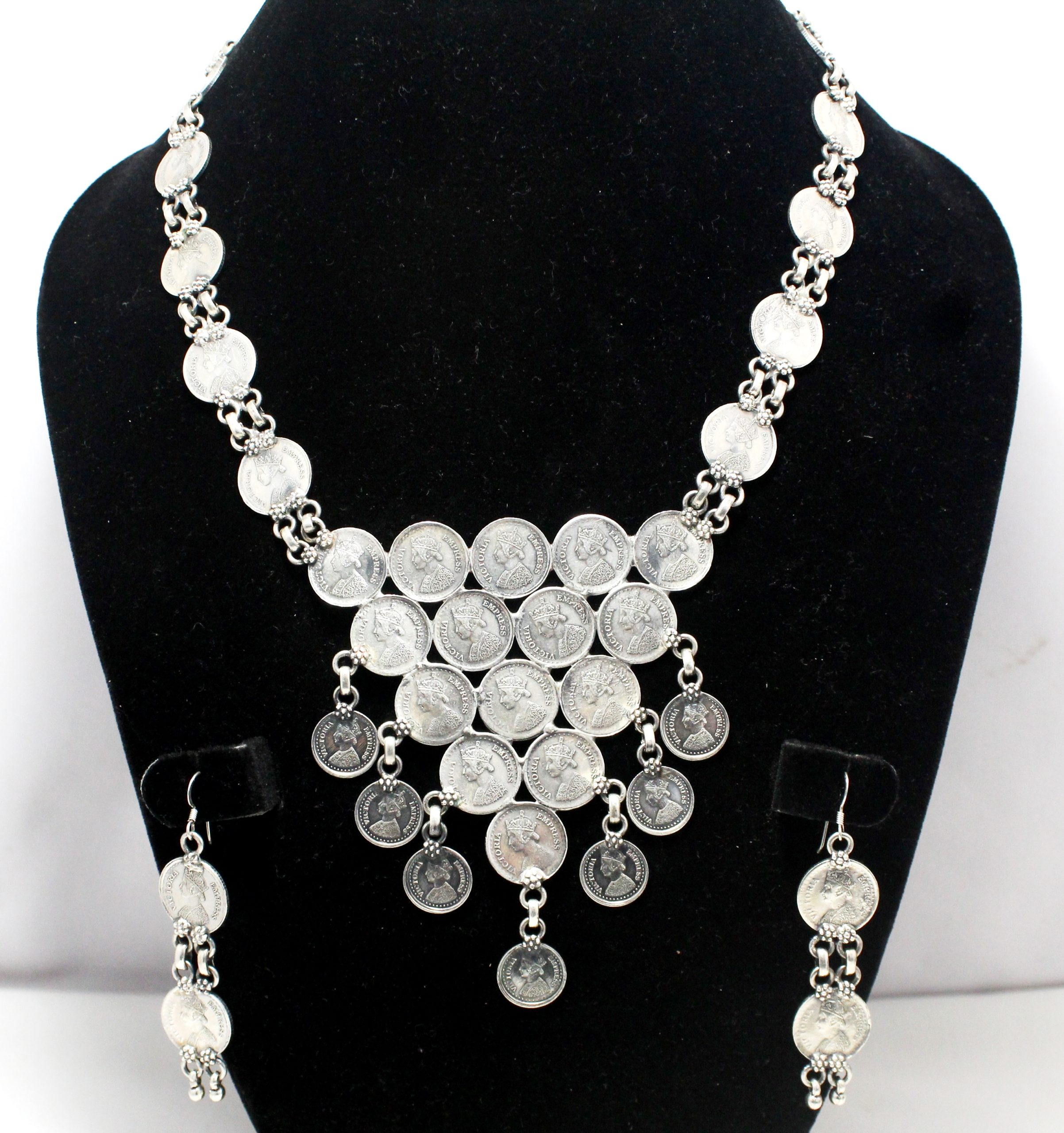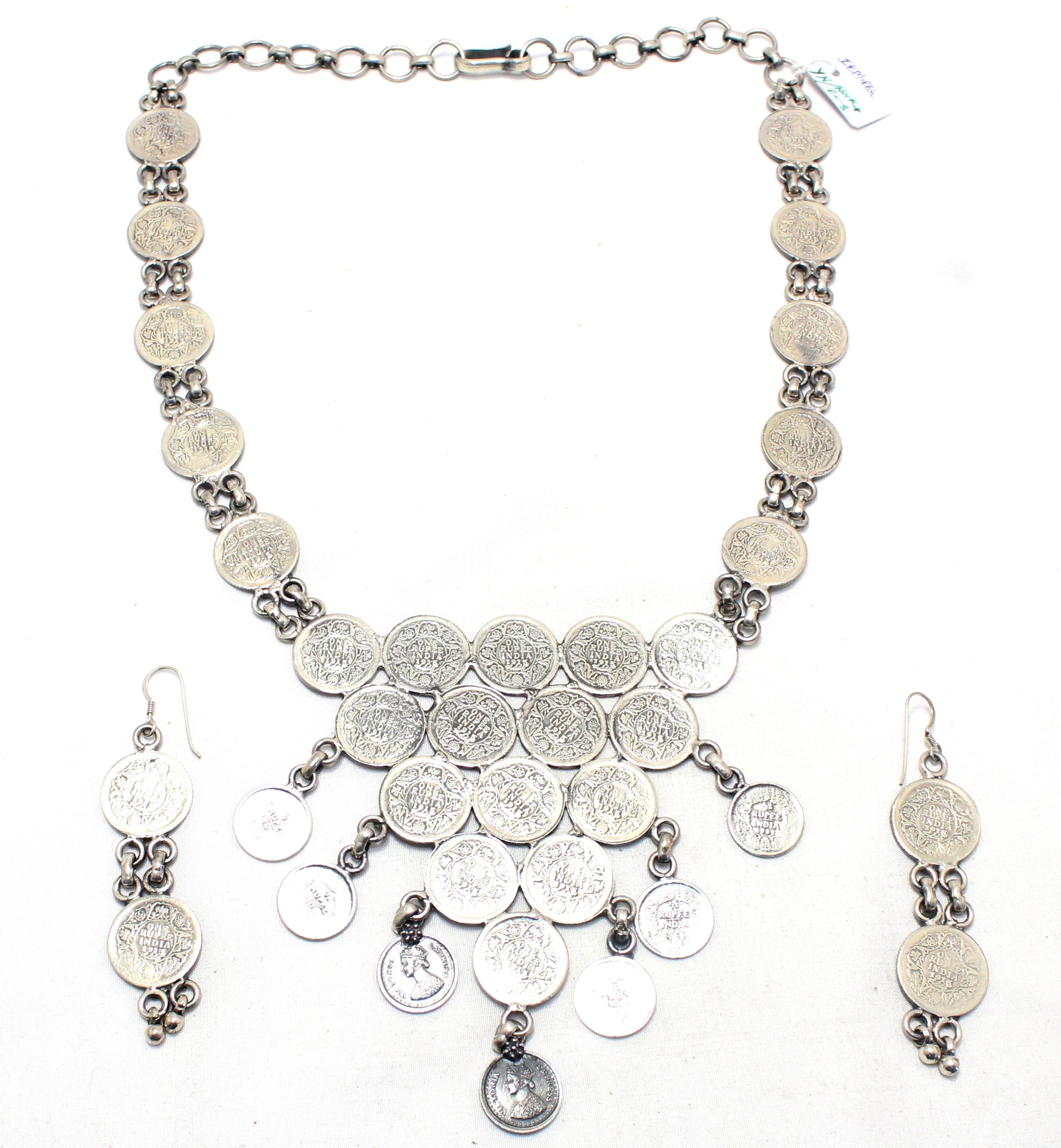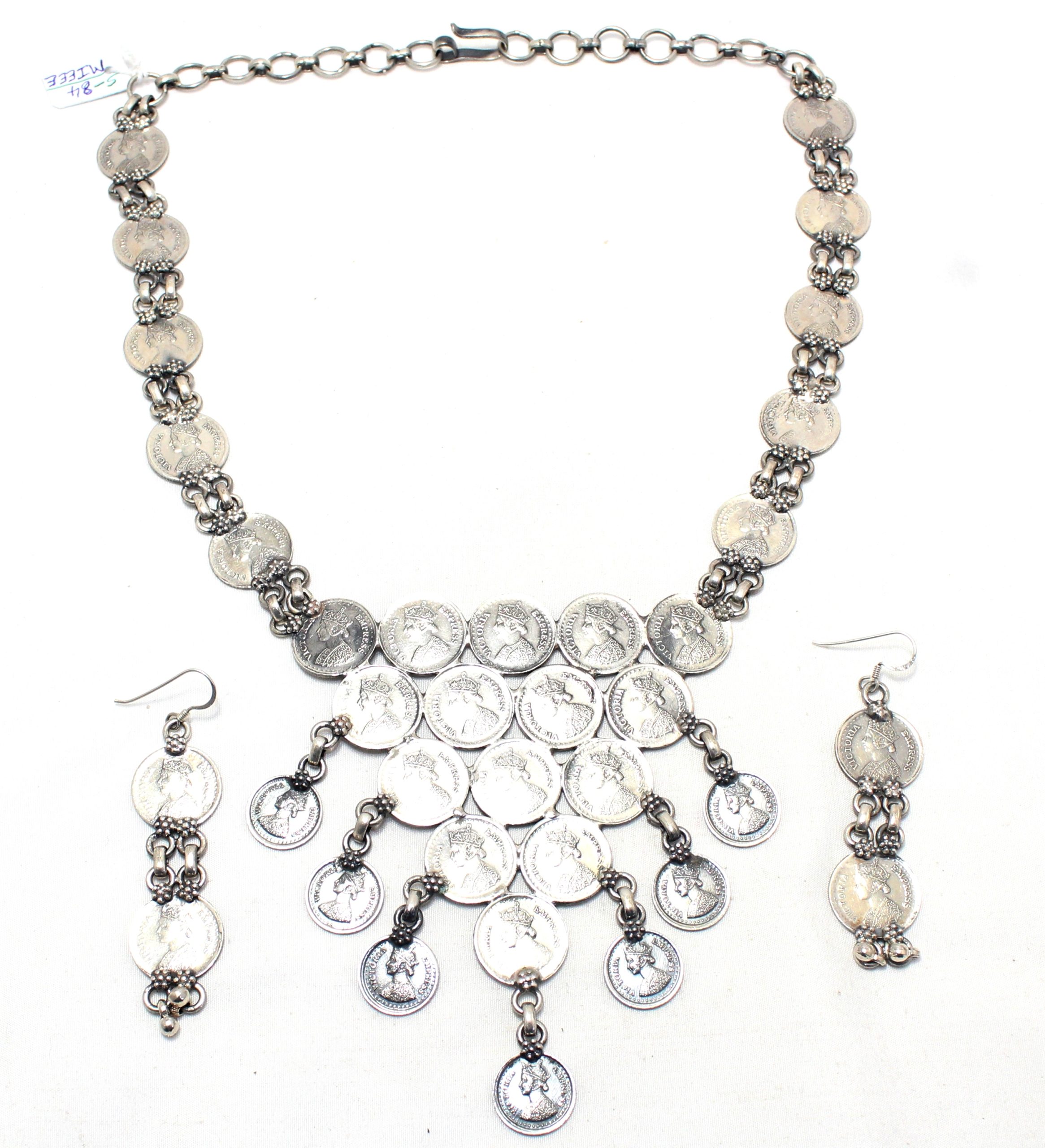 Rajasthan Gems Necklace Earrings Jewelry Set 925 Sterling Silver Traditional Tribal Handmade Gift Women H734