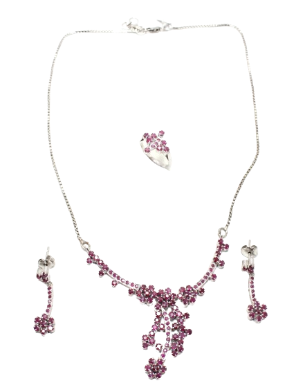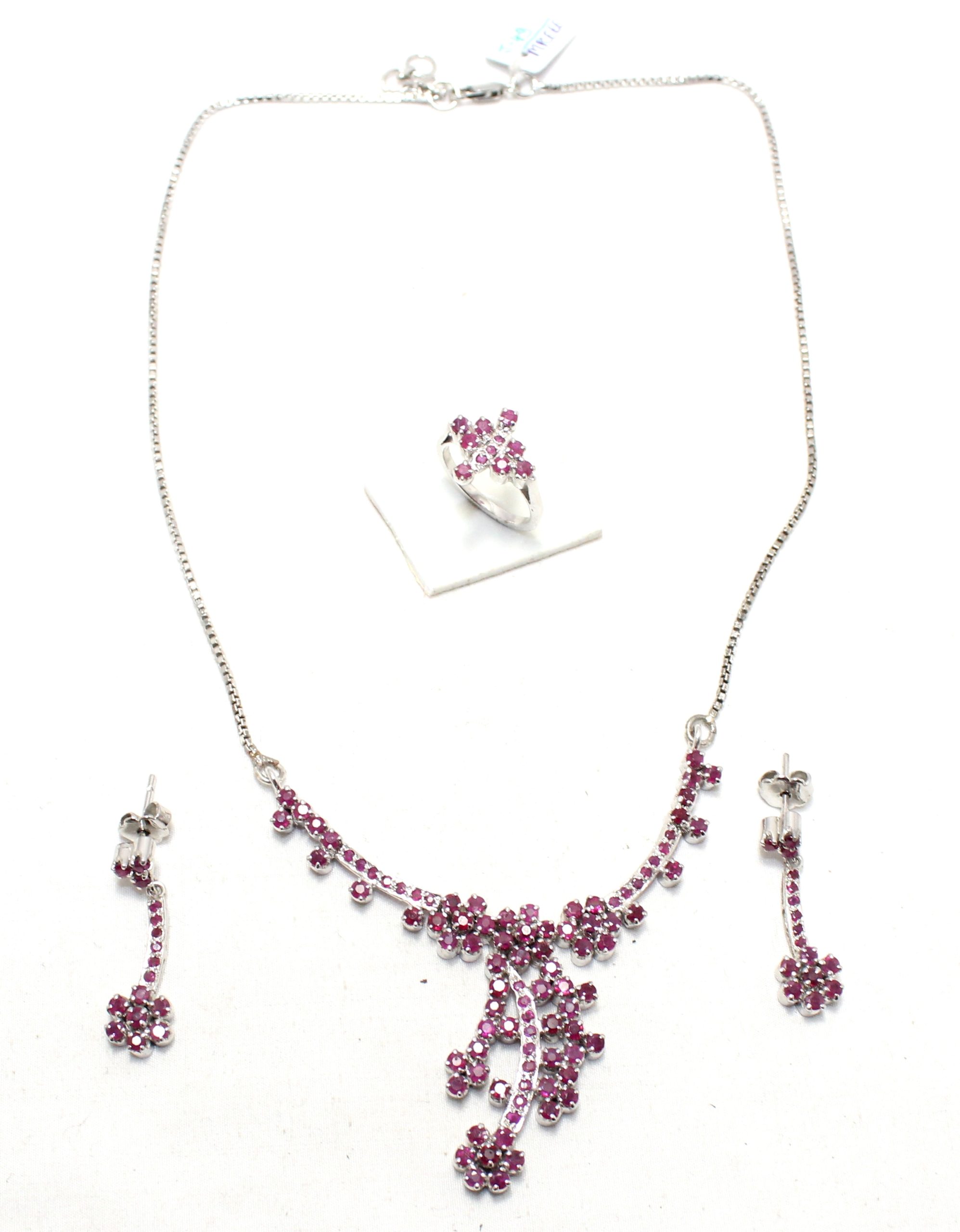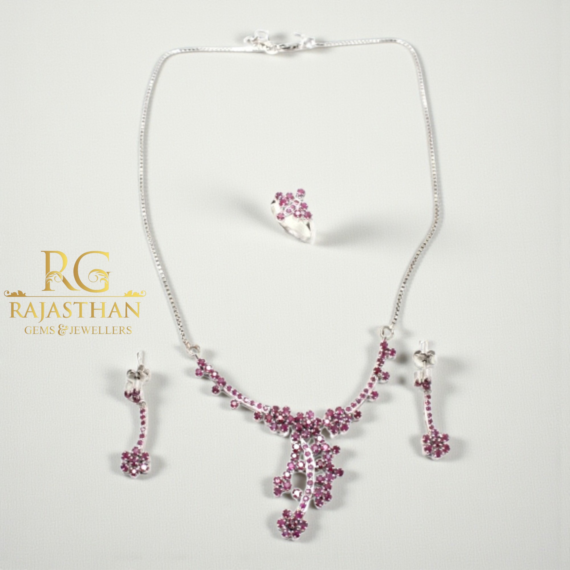 Home » Shop » Rajasthan Gems Necklace Earrings Ring Jewelry Set 925 Sterling Silver Natural Ruby Gem Stone Handmade Gift Women H142