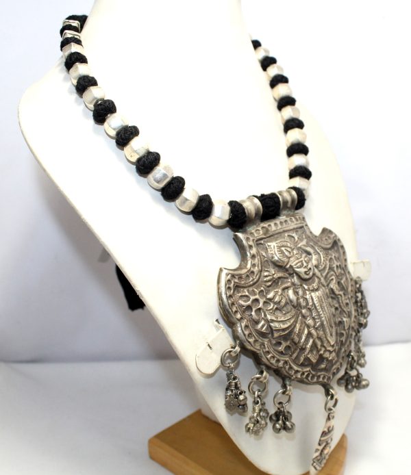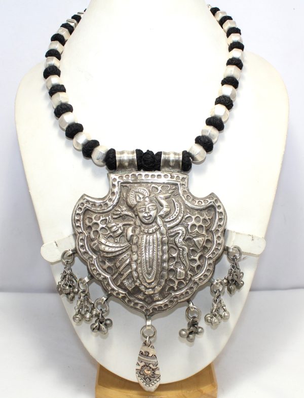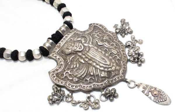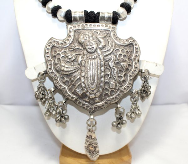 Home » Shop » Rajasthan Gems Necklace Shreenathji Shrinathji Dwarikadhish Krishna Old silver Tribal Temple Jewellery Handmade Women Gift India H075