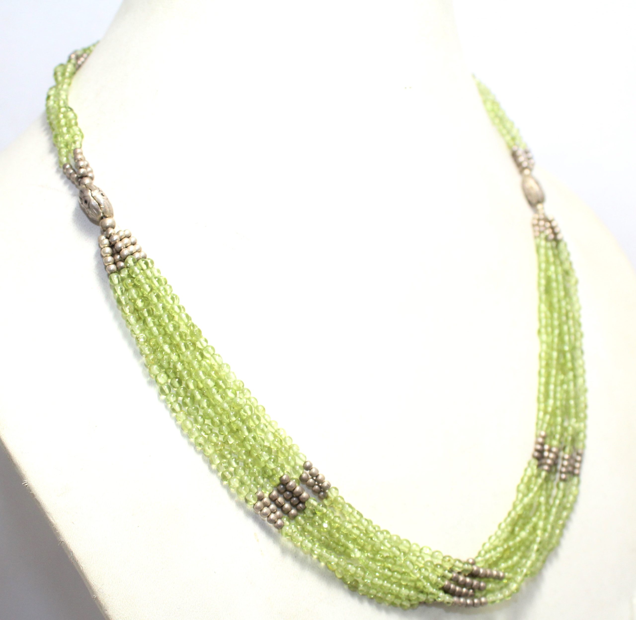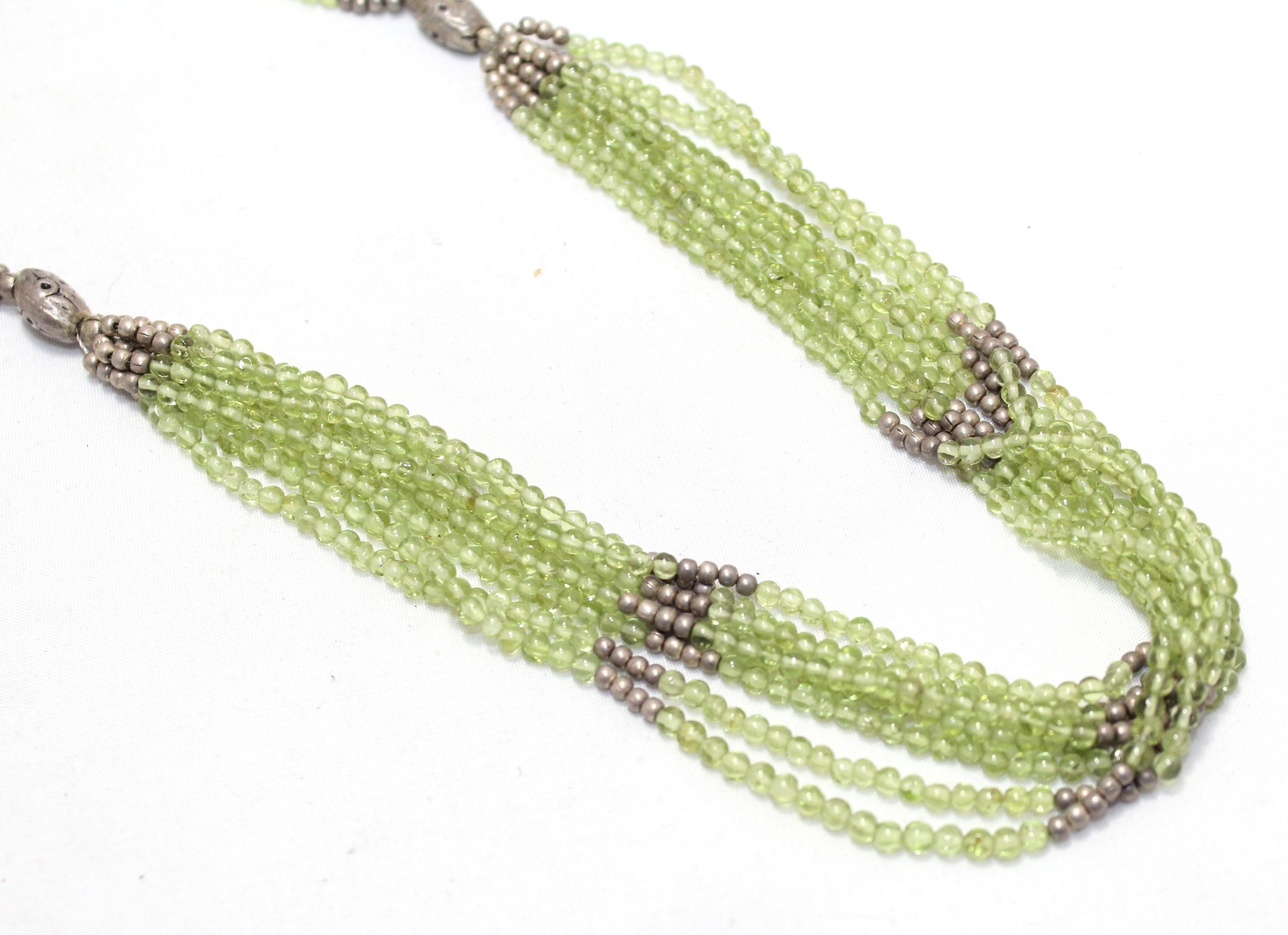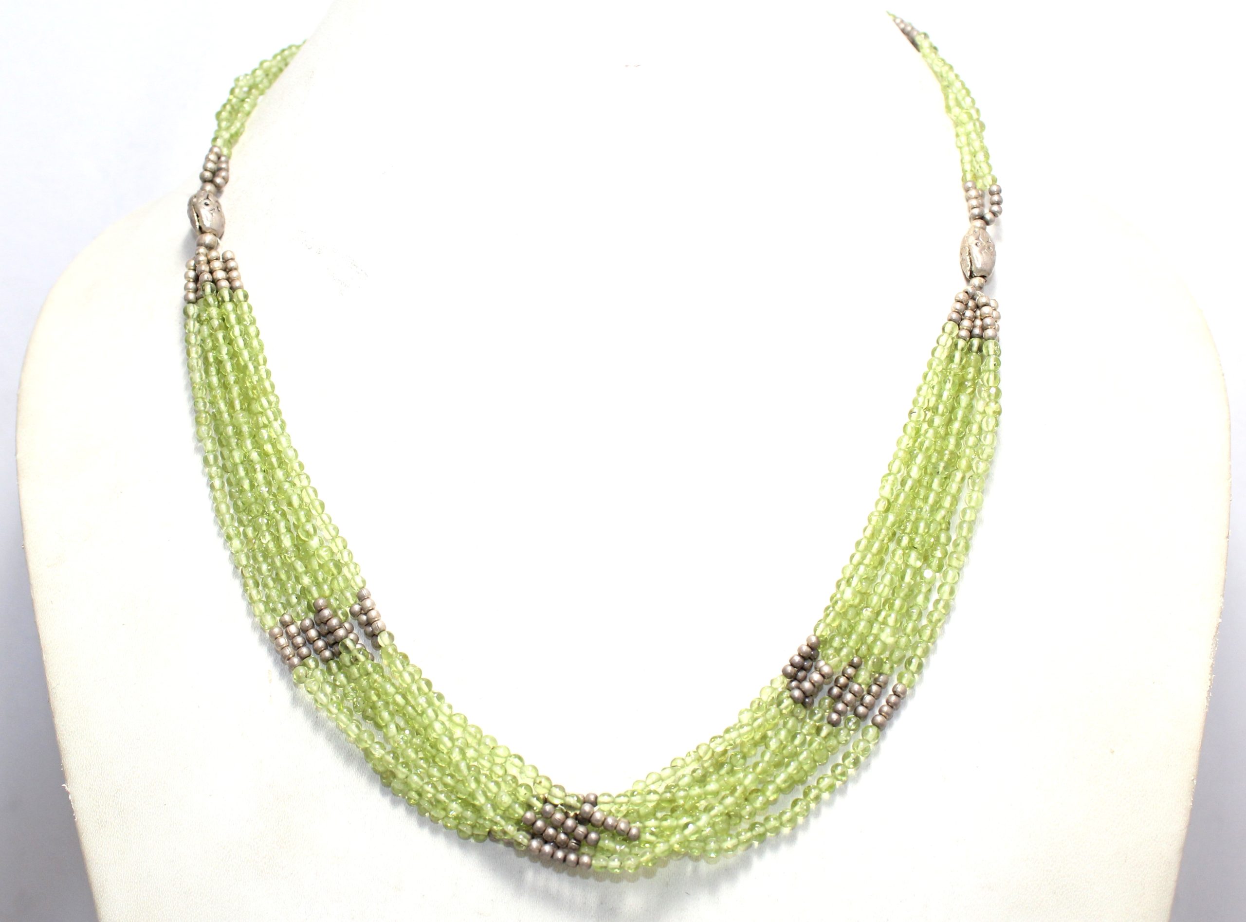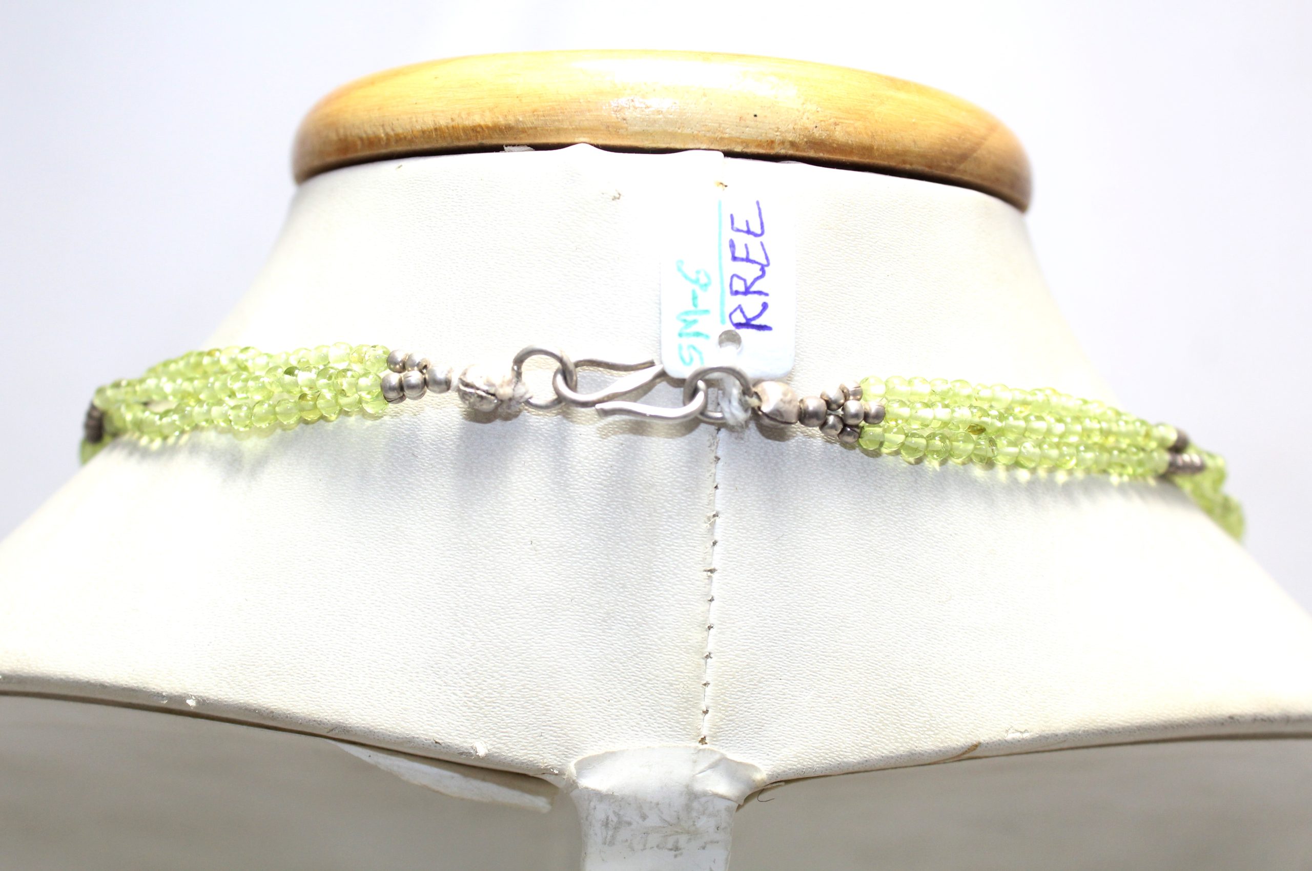 Rajasthan Gems Necklace Strand Stackable 925 Sterling Silver Natural Peridot Gem Stone Gemstone Women Handmade Gift G882