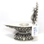 Silver Deepak (Diya), beautifully handcrafted by skilled artisans. Made from hallmarked sterling silver, this diya represents purity, prosperity, and positivity, making it an essential piece for daily pooja, aarti, and prayer rituals. With its elegant design and durable silver craftsmanship, it is perfect for temples, home altars, or festive occasions such as Diwali, Navratri, weddings, and housewarmings. Beyond its spiritual significance, this diya also serves as a timeless decorative piece and a thoughtful gift.