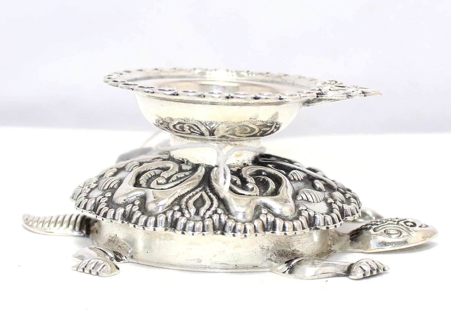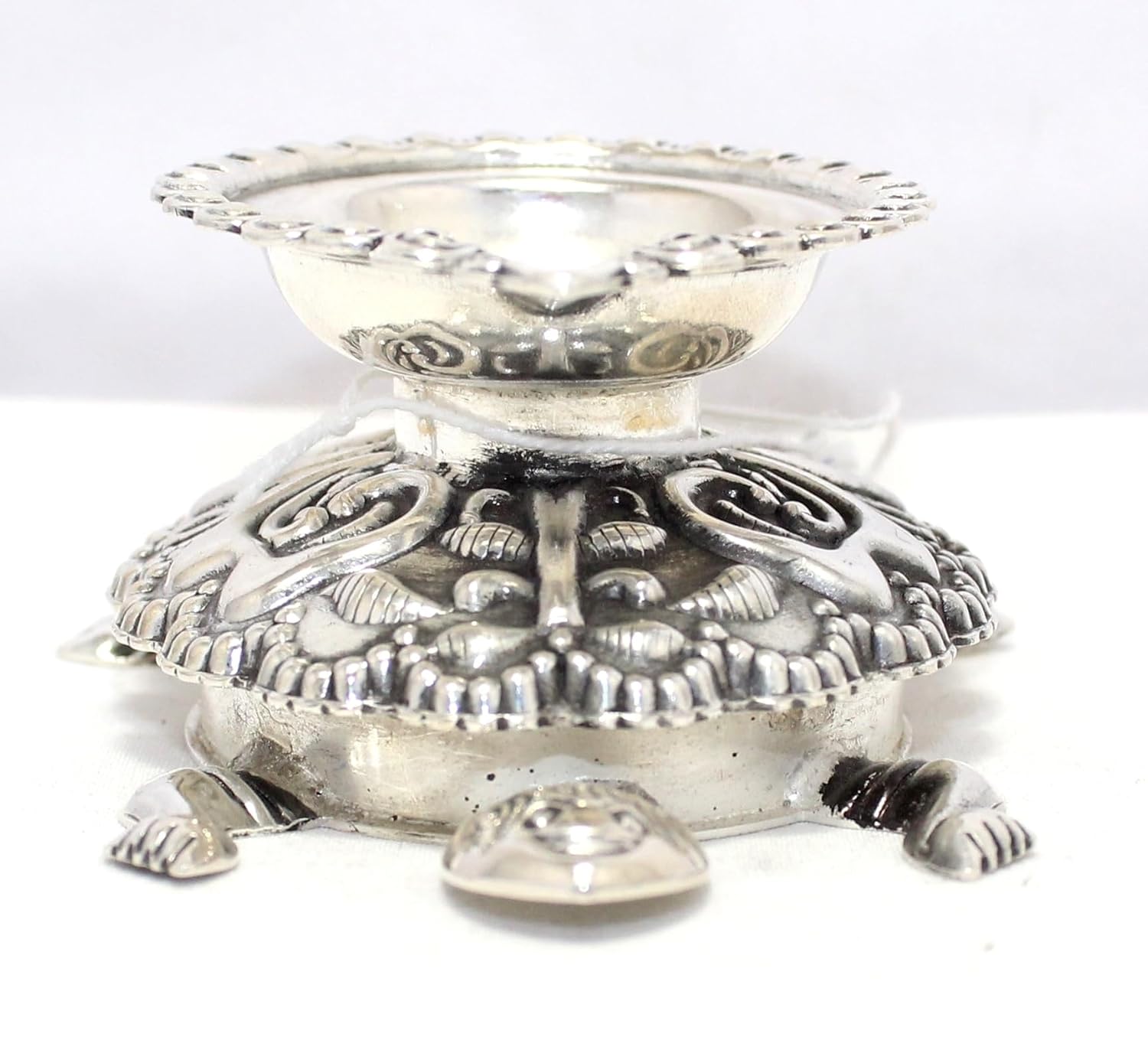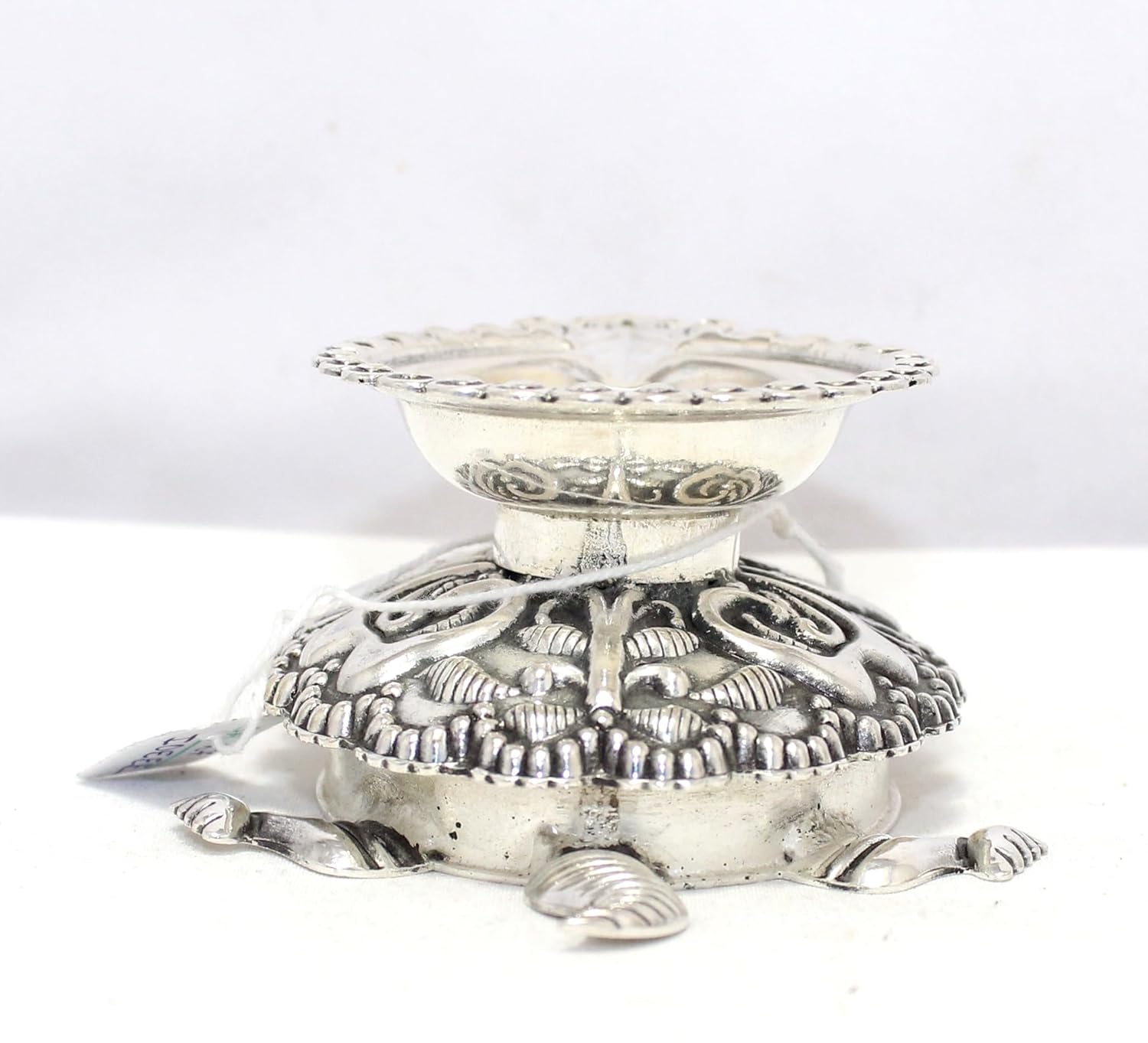 Rajasthan Gems Oil Lamp Diya Deepak 925 Sterling Silver Temple Pooja Aarti Prayer Tortoise W504