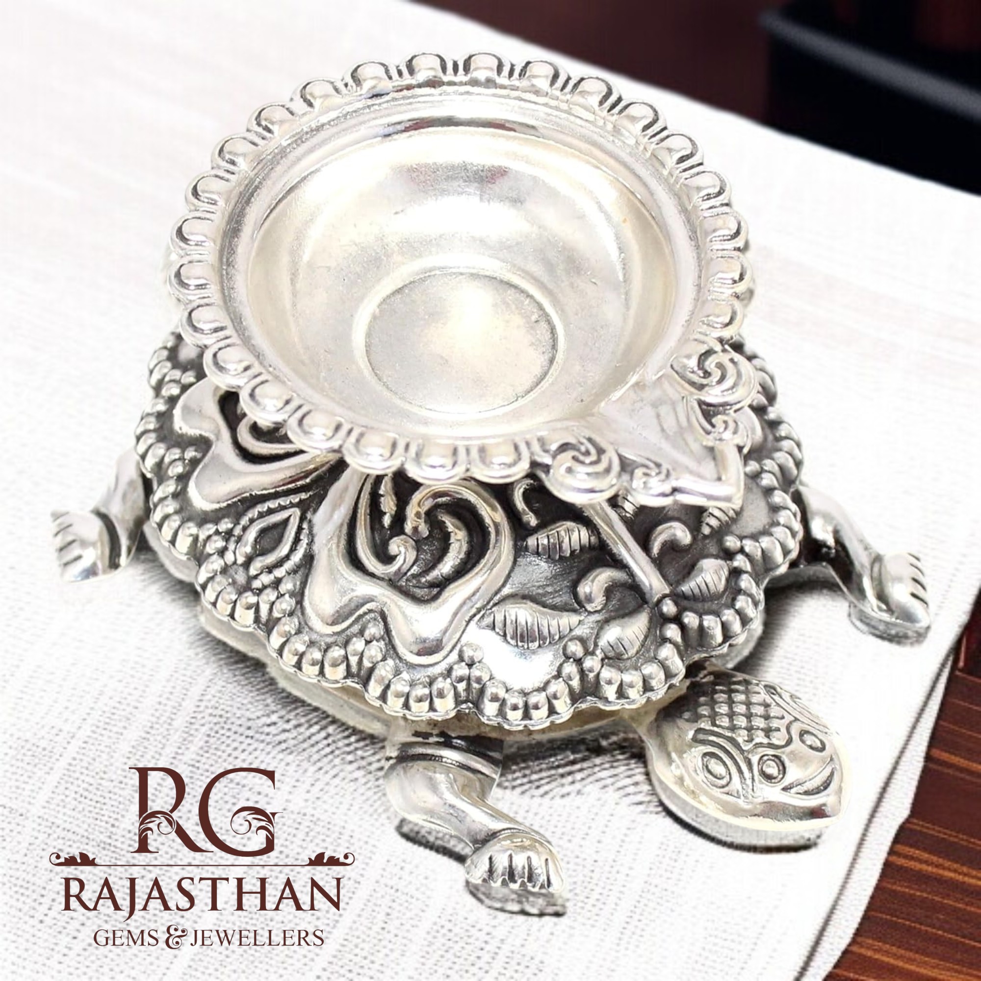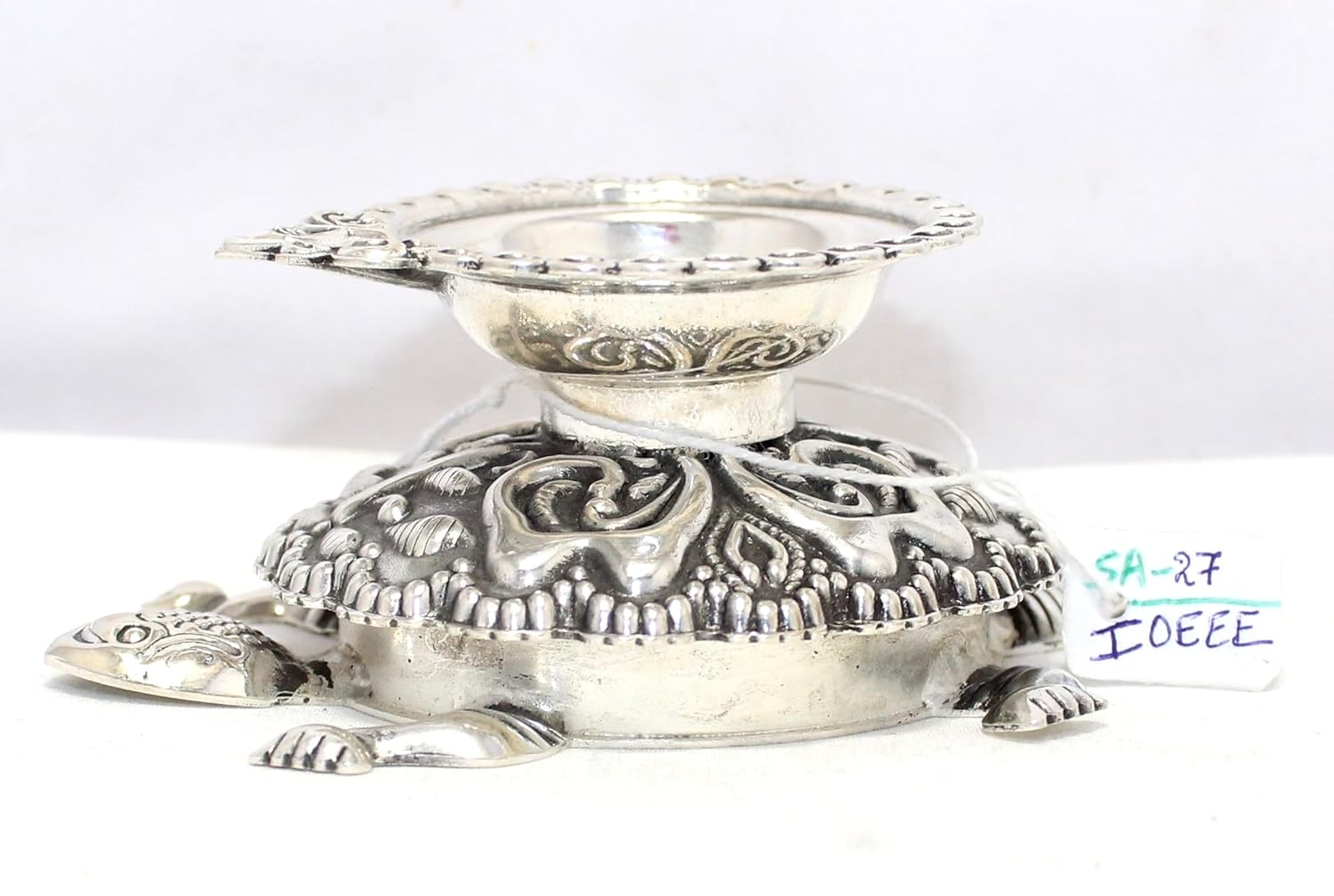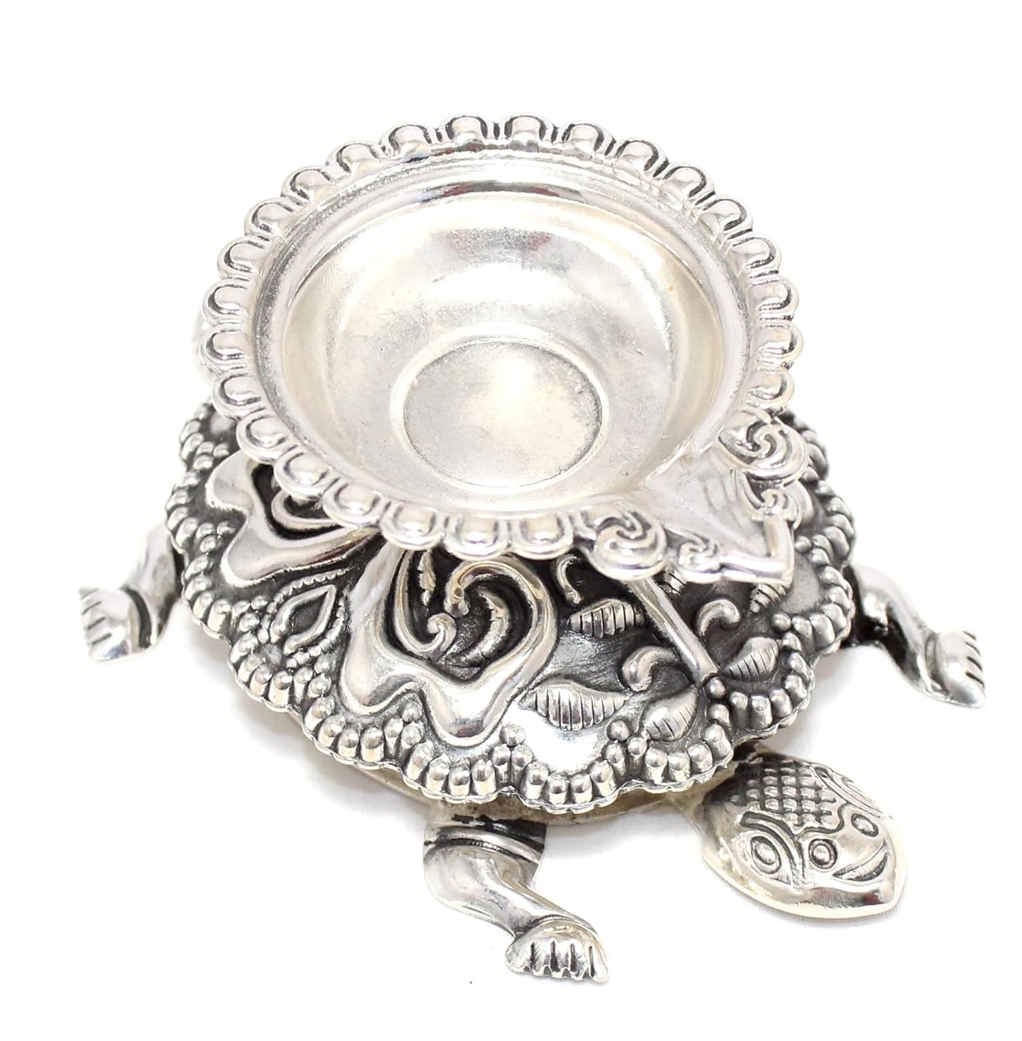 Rajasthan Gems Oil Lamp Diya Deepak 925 Sterling Silver Temple Pooja Aarti Prayer Tortoise W504
