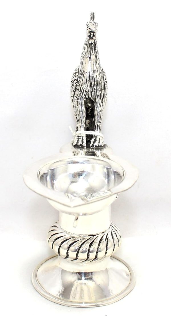 Silver Deepak (Diya), beautifully handcrafted by skilled artisans. Made from hallmarked sterling silver, this diya represents purity, prosperity, and positivity, making it an essential piece for daily pooja, aarti, and prayer rituals. With its elegant design and durable silver craftsmanship, it is perfect for temples, home altars, or festive occasions such as Diwali, Navratri, weddings, and housewarmings. Beyond its spiritual significance, this diya also serves as a timeless decorative piece and a thoughtful gift.