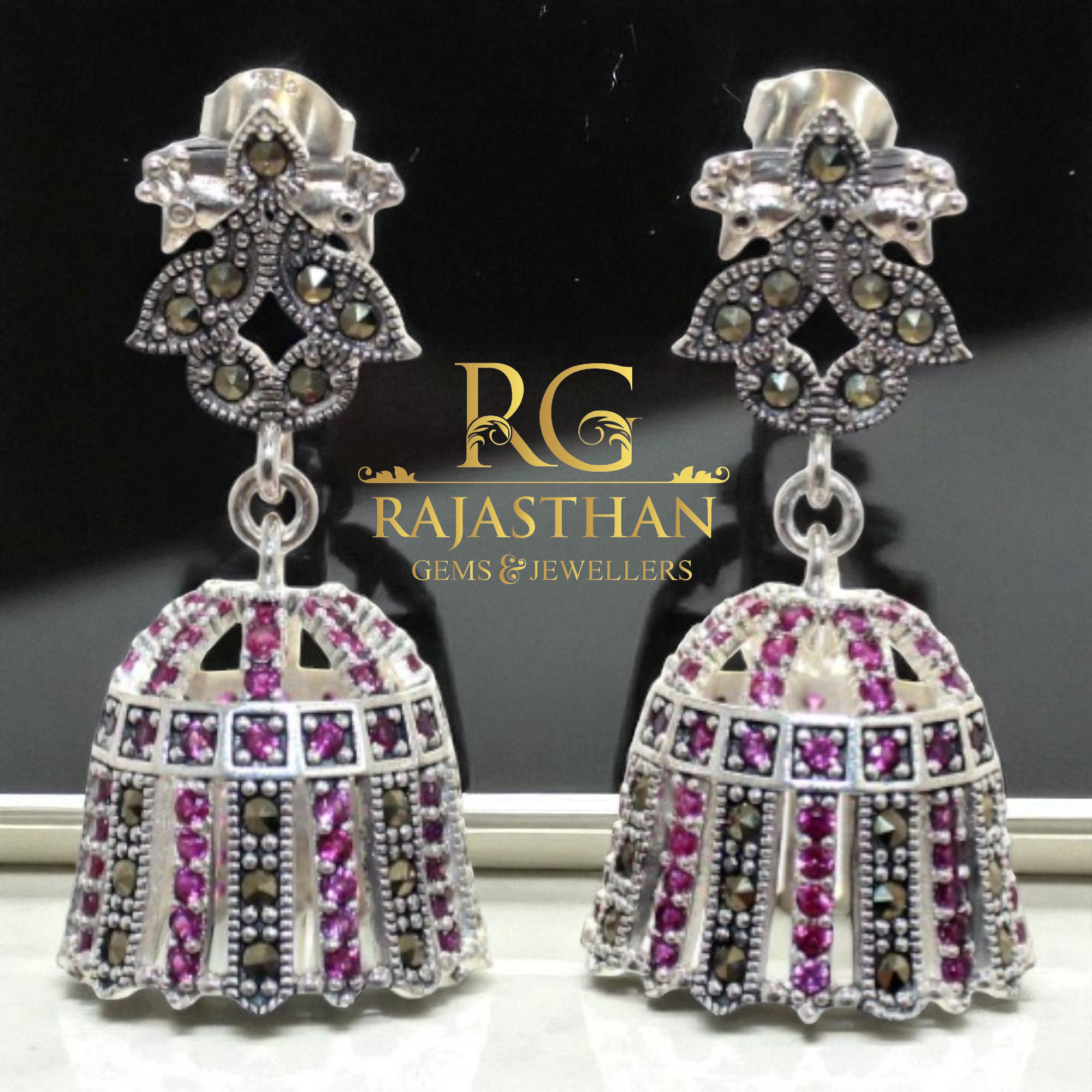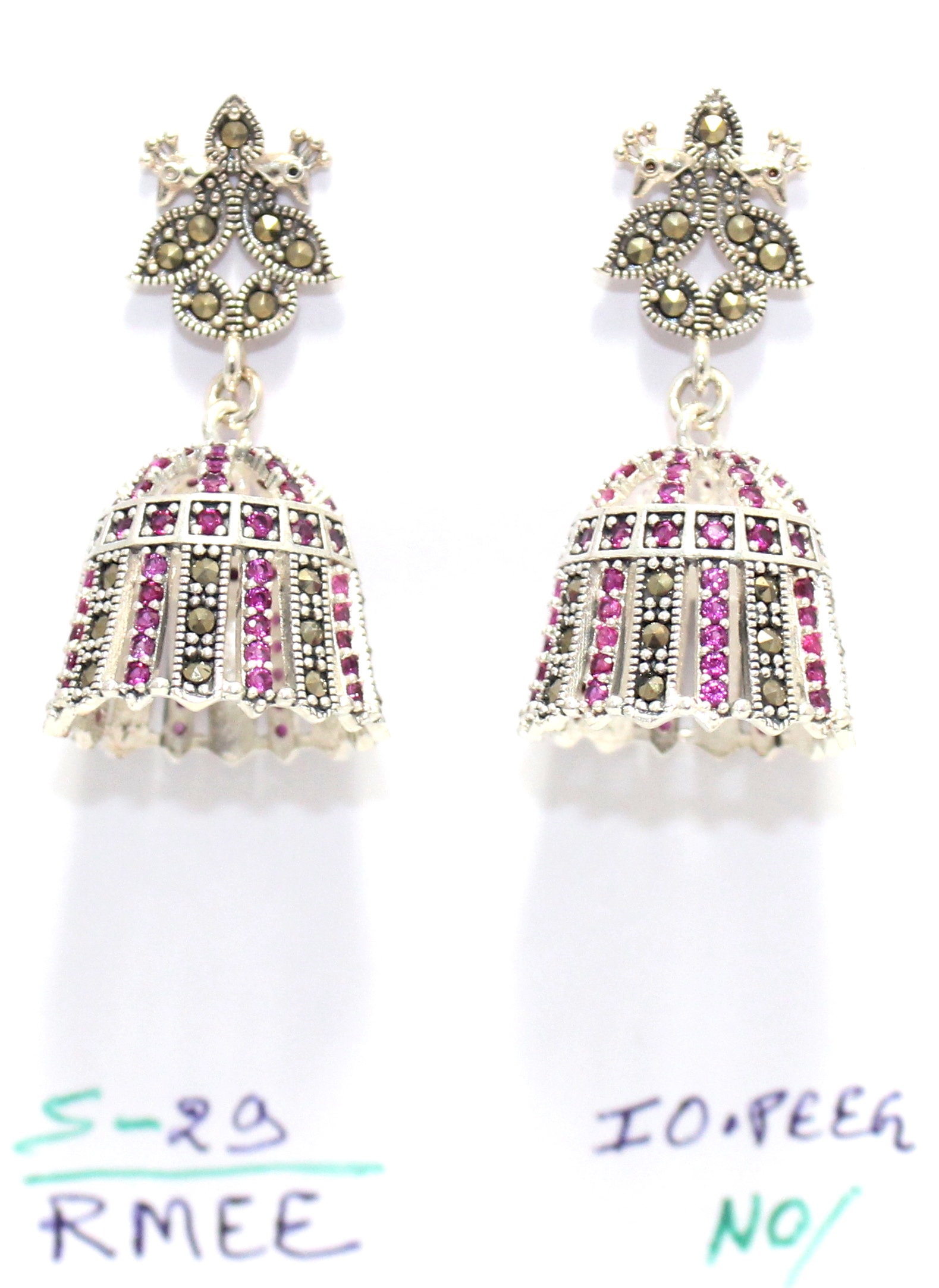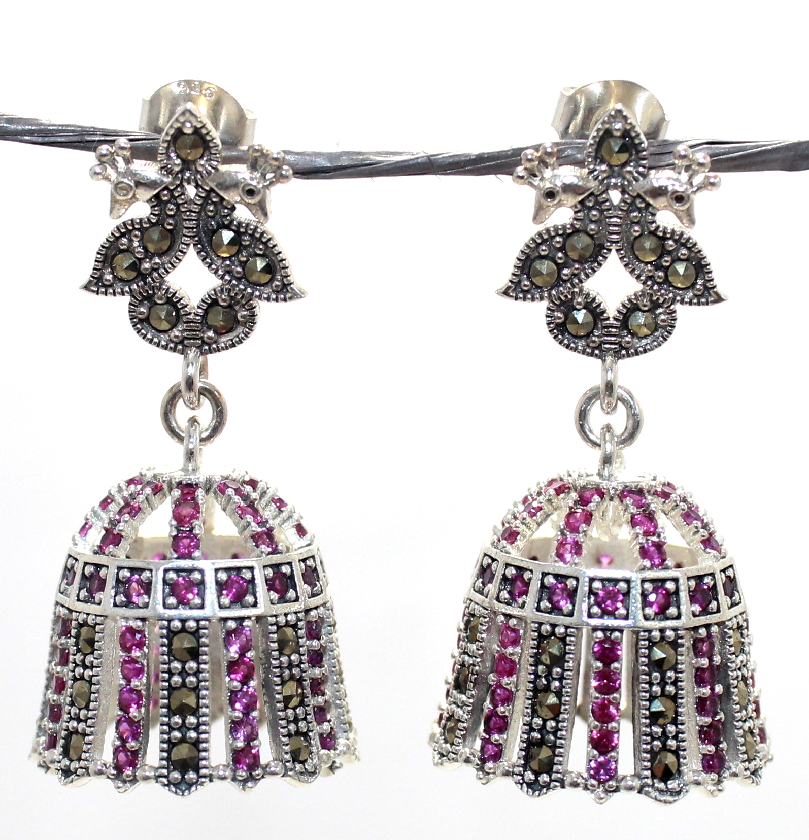 Rajasthan Gems Peacock Jhumki Jhumka Earrings 925 Sterling Silver Marcasite & Cubic Zirconia CZ Stone Handmade Women Gift G293