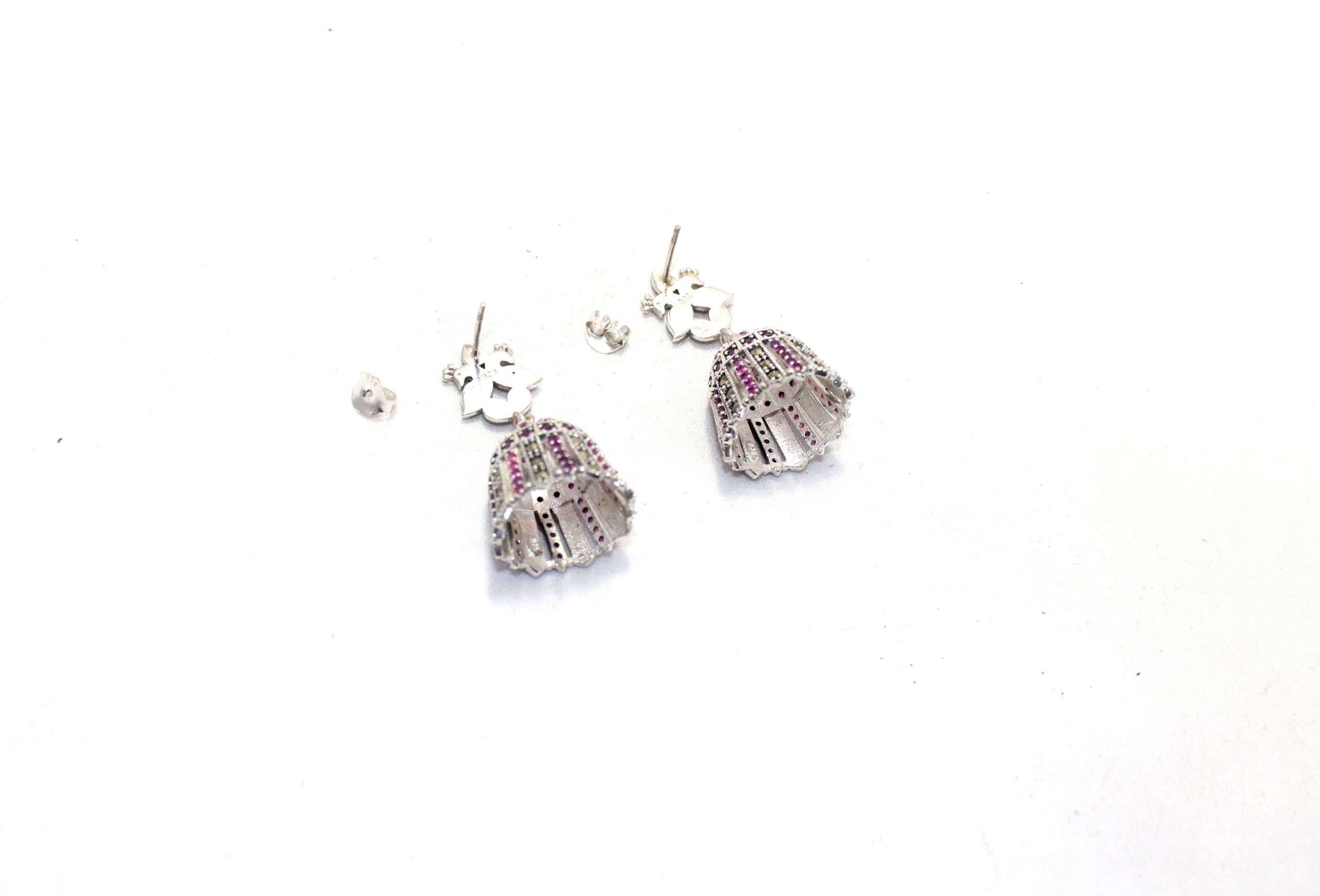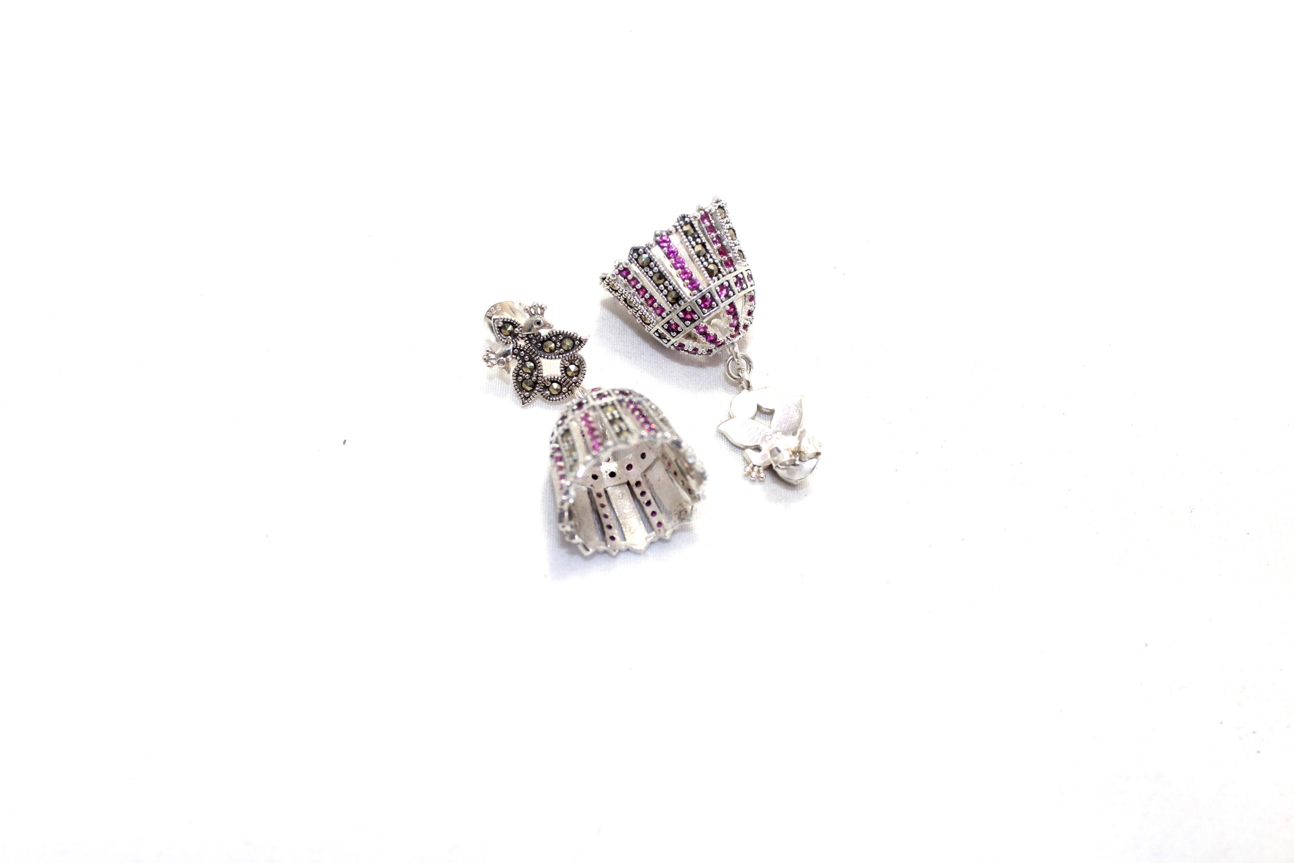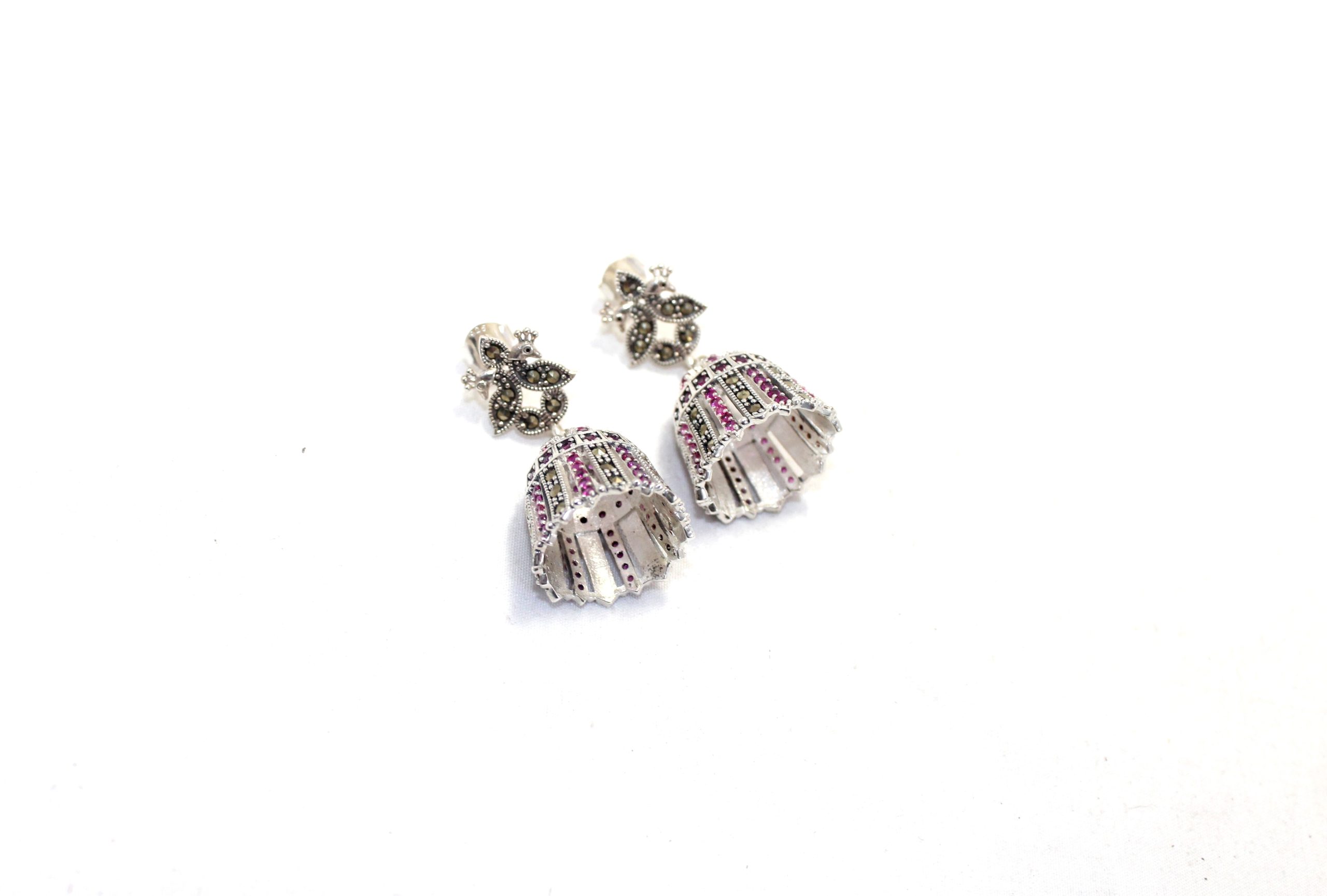 Rajasthan Gems Peacock Jhumki Jhumka Earrings 925 Sterling Silver Marcasite & Cubic Zirconia CZ Stone Handmade Women Gift G293