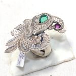 Rajasthan Gems Peacock Ring 925 Sterling Silver Glass Hand Engraved Adjustable Handmade Traditional Women Men Unisex Gift H509